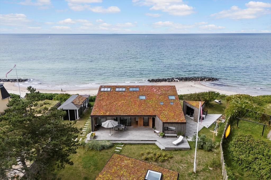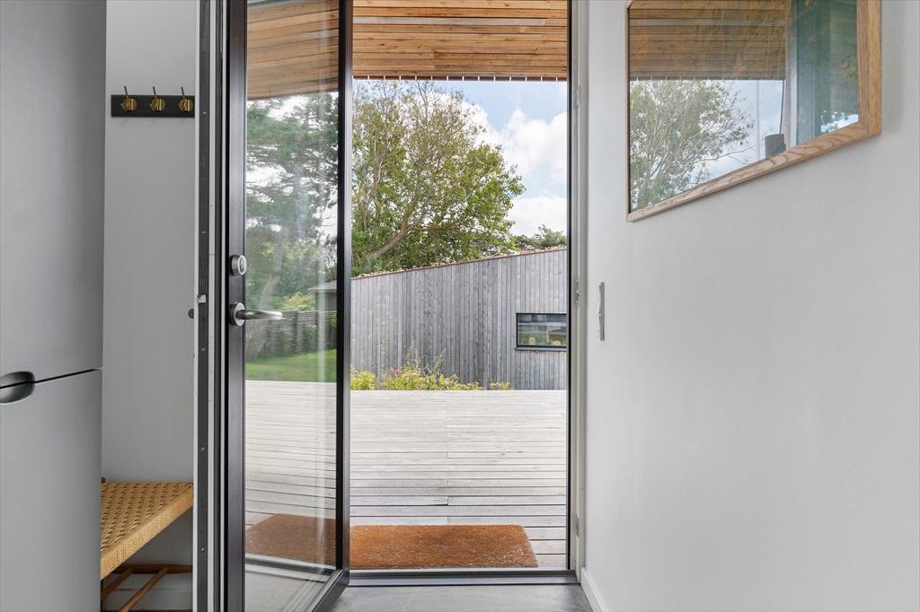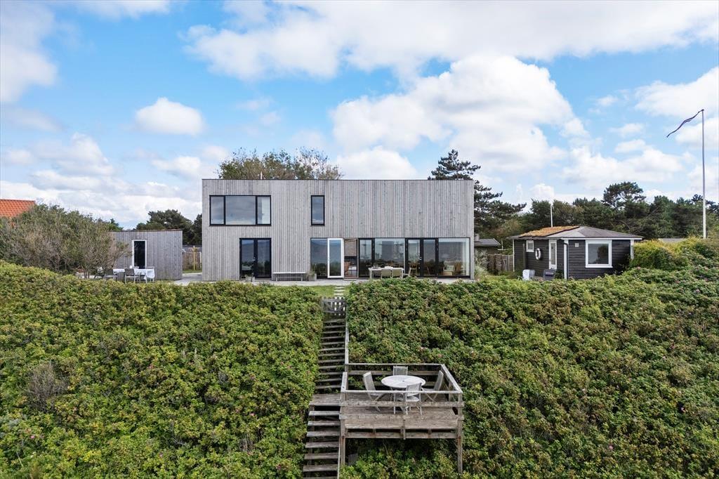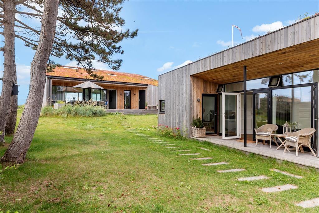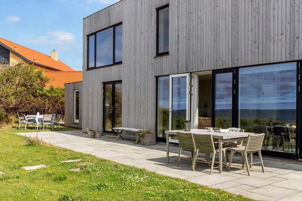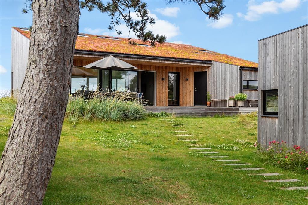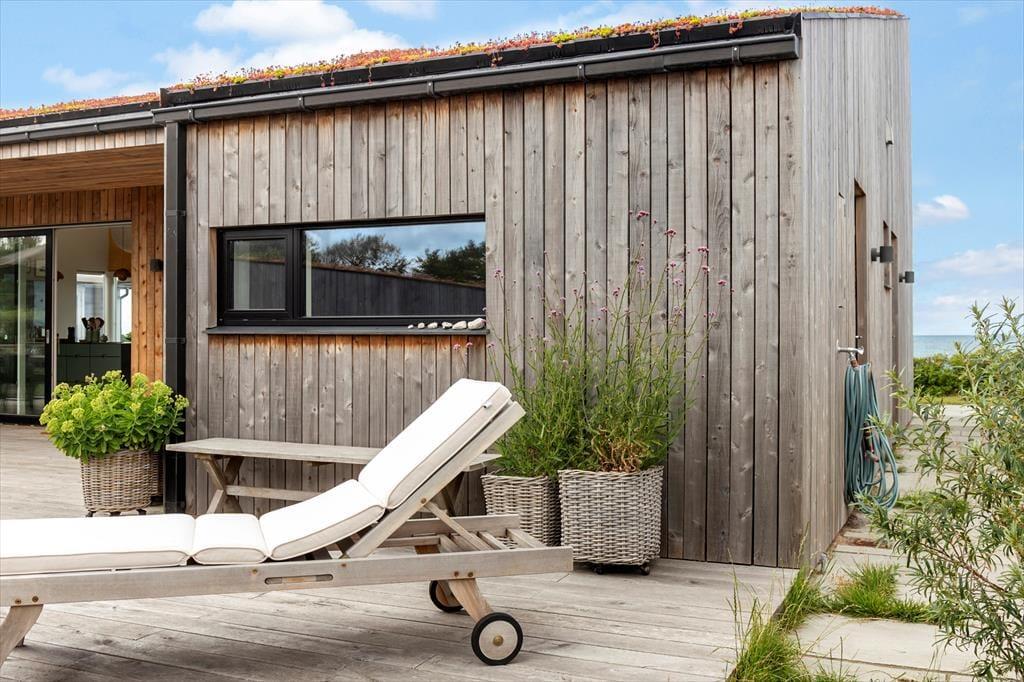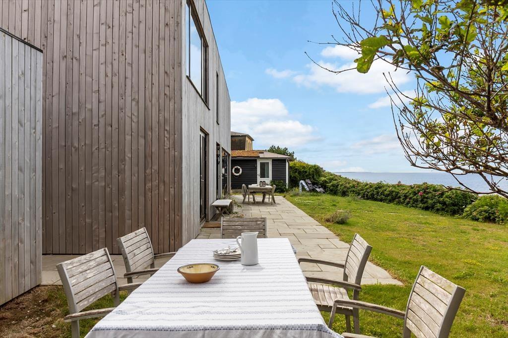 Sommerhusets have og terrasser er anlagt, så I altid kan finde det rette sted at nyde solen, udsigten – eller læen. Foran huset vender en skøn terrasse ud mod havet, hvor I kan grille og spise med bølgernes sagte brusen som baggrundsmusik. På husets bagside ligger en mere tilbagetrukket terrasse, hvor I kan sidde i fred og ro og lade skuldrene sænke sig helt.
