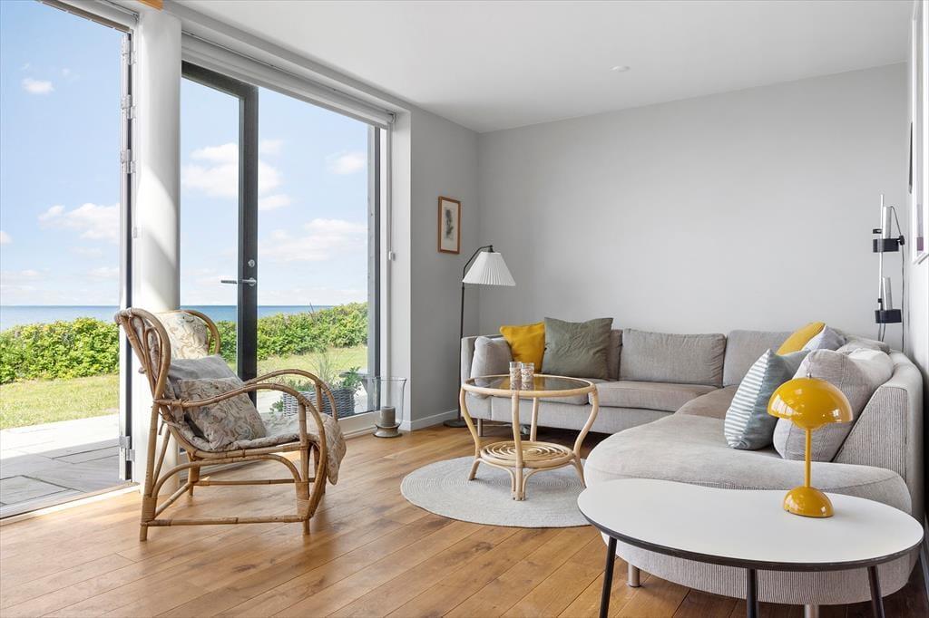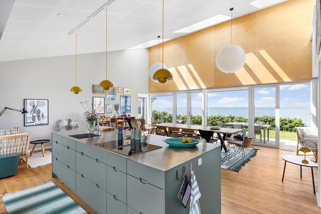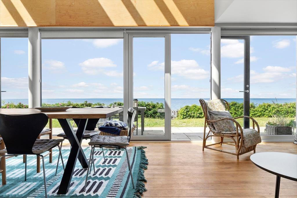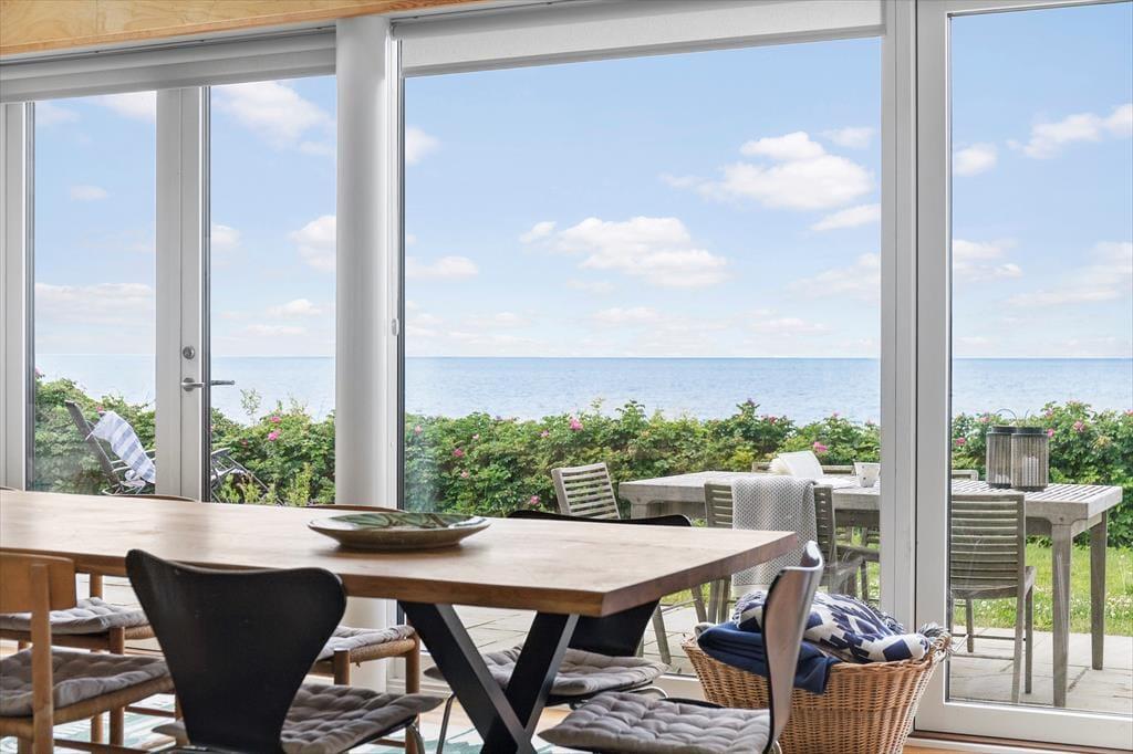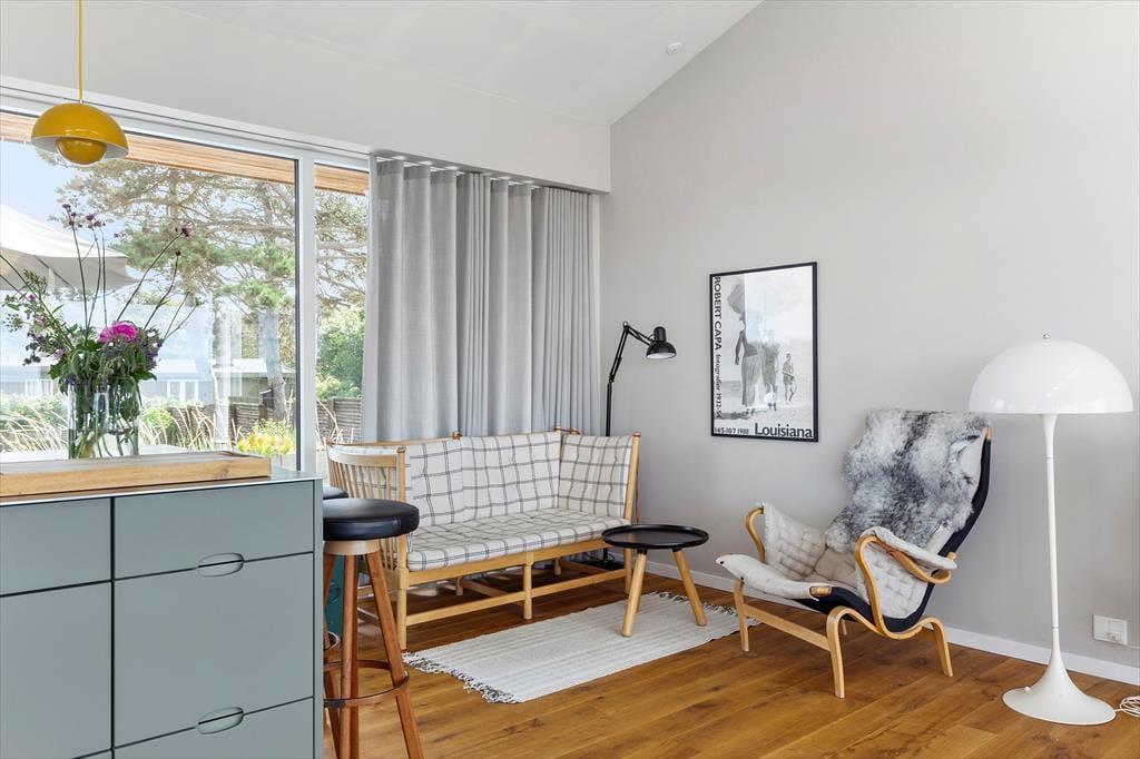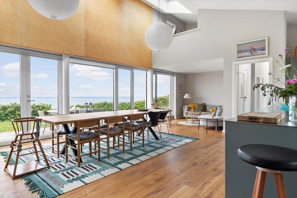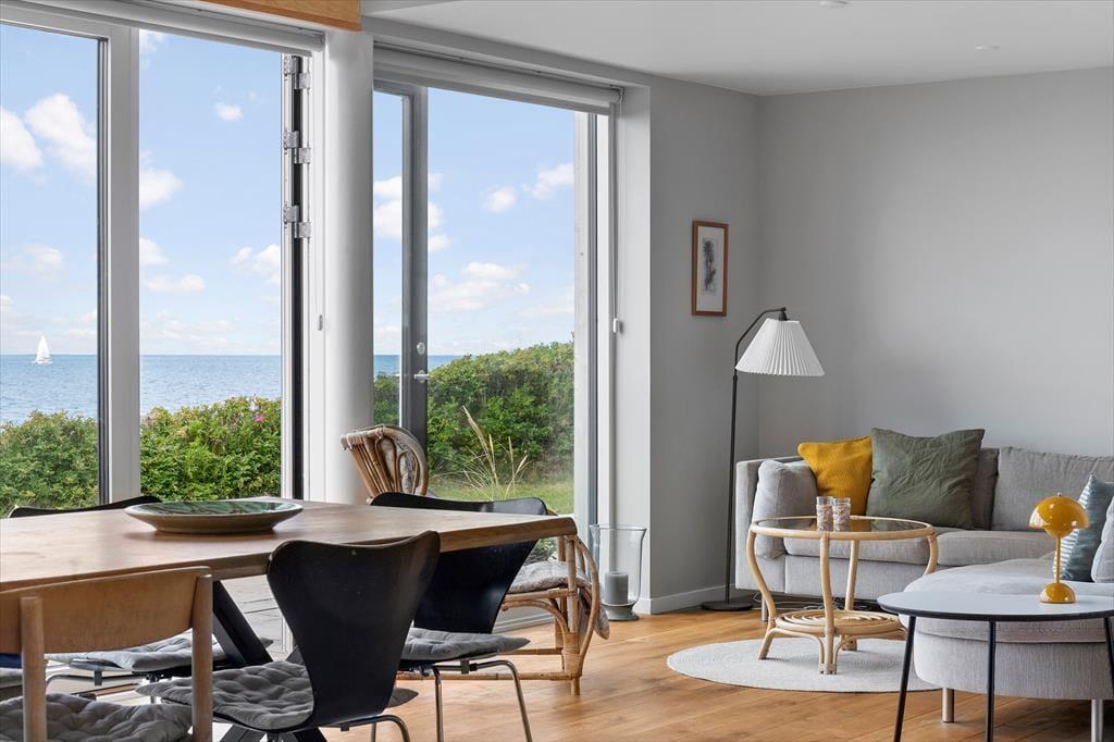 I hovedhuset mødes I af et lyst og rummeligt køkken-alrum, hvor det store opholdsrum indbyder til madlavning, brætspil og samtaler med udsigt til horisonten. De to soveværelser i denne del af huset har begge en fantastisk udsigt over Kattegat – det er svært at forestille sig en skønnere måde at vågne på.