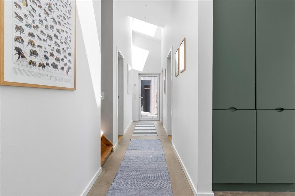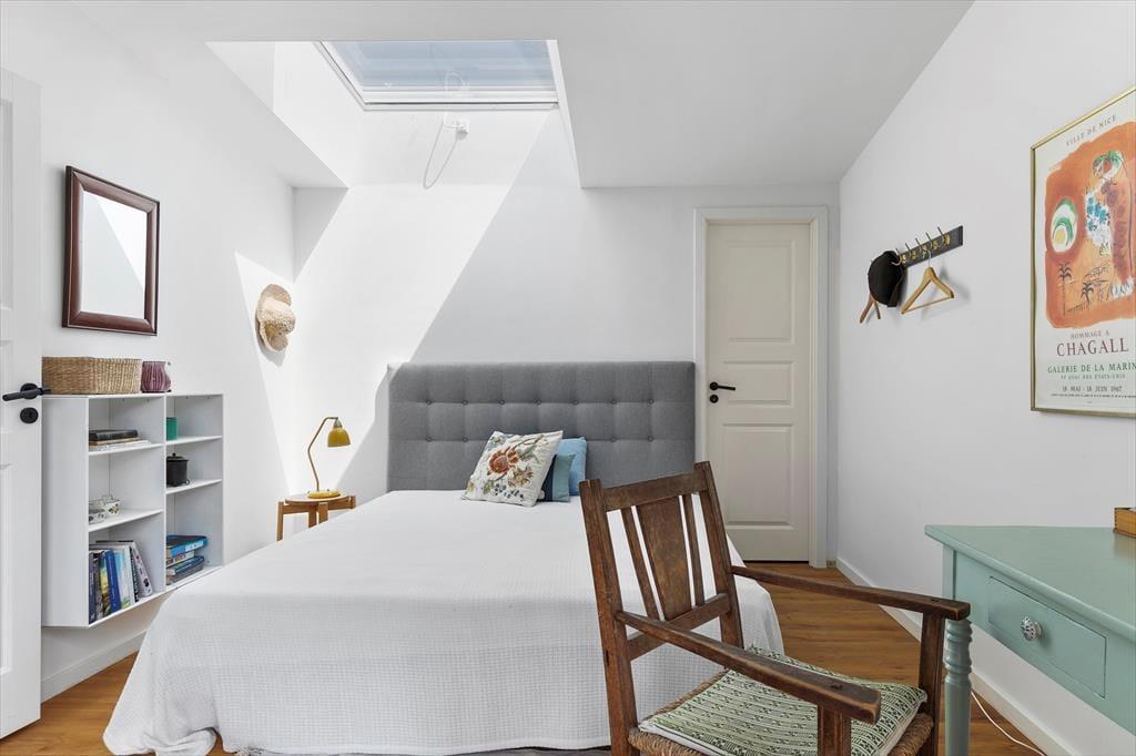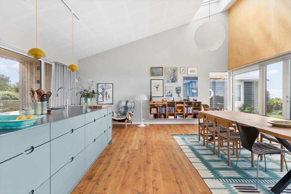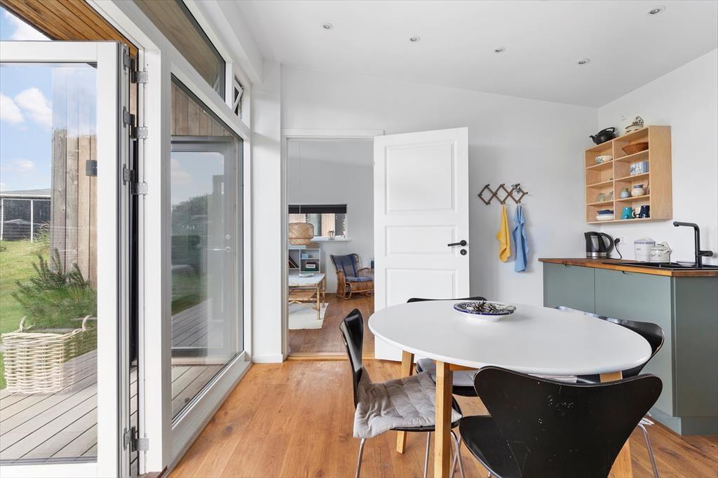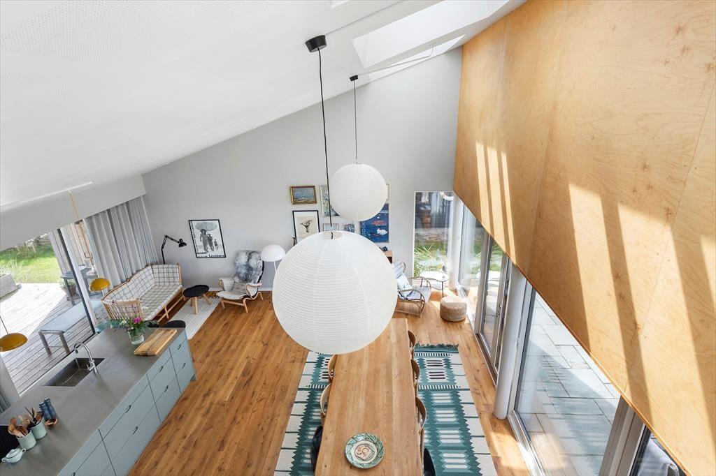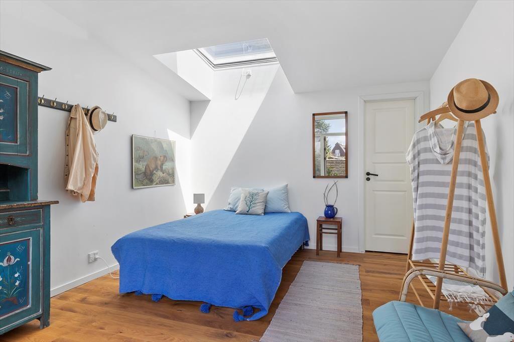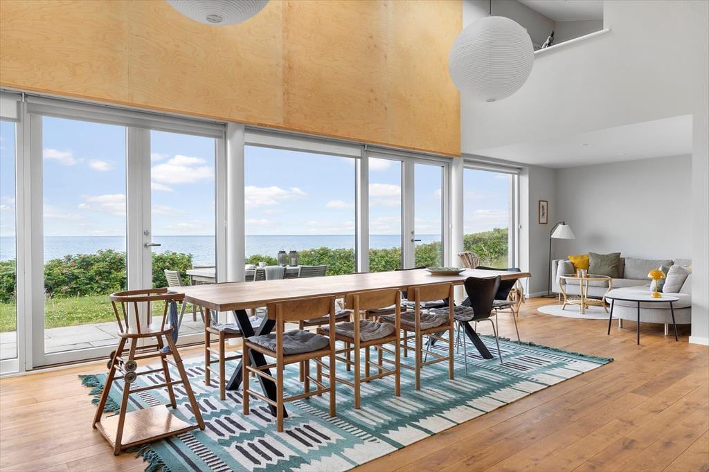 I hovedhuset mødes I af et lyst og rummeligt køkken-alrum, hvor det store opholdsrum indbyder til madlavning, brætspil og samtaler med udsigt til horisonten. De to soveværelser i denne del af huset har begge en fantastisk udsigt over Kattegat – det er svært at forestille sig en skønnere måde at vågne på.