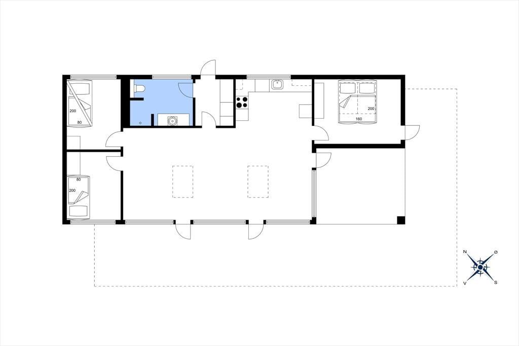 Dette charmerende og rummelige sommerhus byder dig velkommen med højt til loftet og en lys atmosfære, der straks giver en følelse af ferie og frihed. Opholdsstuen, køkkenet og spisepladsen smelter sammen i ét åbent og indbydende rum, hvor familien kan samles om madlavning, hyggelige brætspil eller en stille stund med en god bog og en kop kaffe i sofaen. De store vinduer lader lyset strømme ind og giver en smuk udsigt til den omkringliggende natur. Sommerhuset har tre gode soveværelser, som sikrer en god nats søvn efter en dag fyldt med oplevelser.