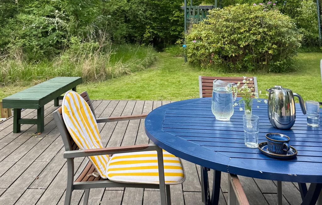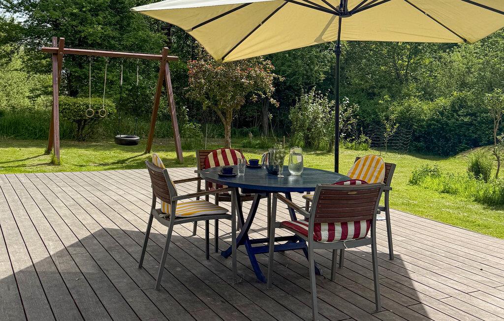 I sommersæsonen kan I tilbringe gode timer på husets terrasse. Nyd solen og tilbered en lækker middag på grillen, mens børnene har det sjovt og leger på græsplænen.
