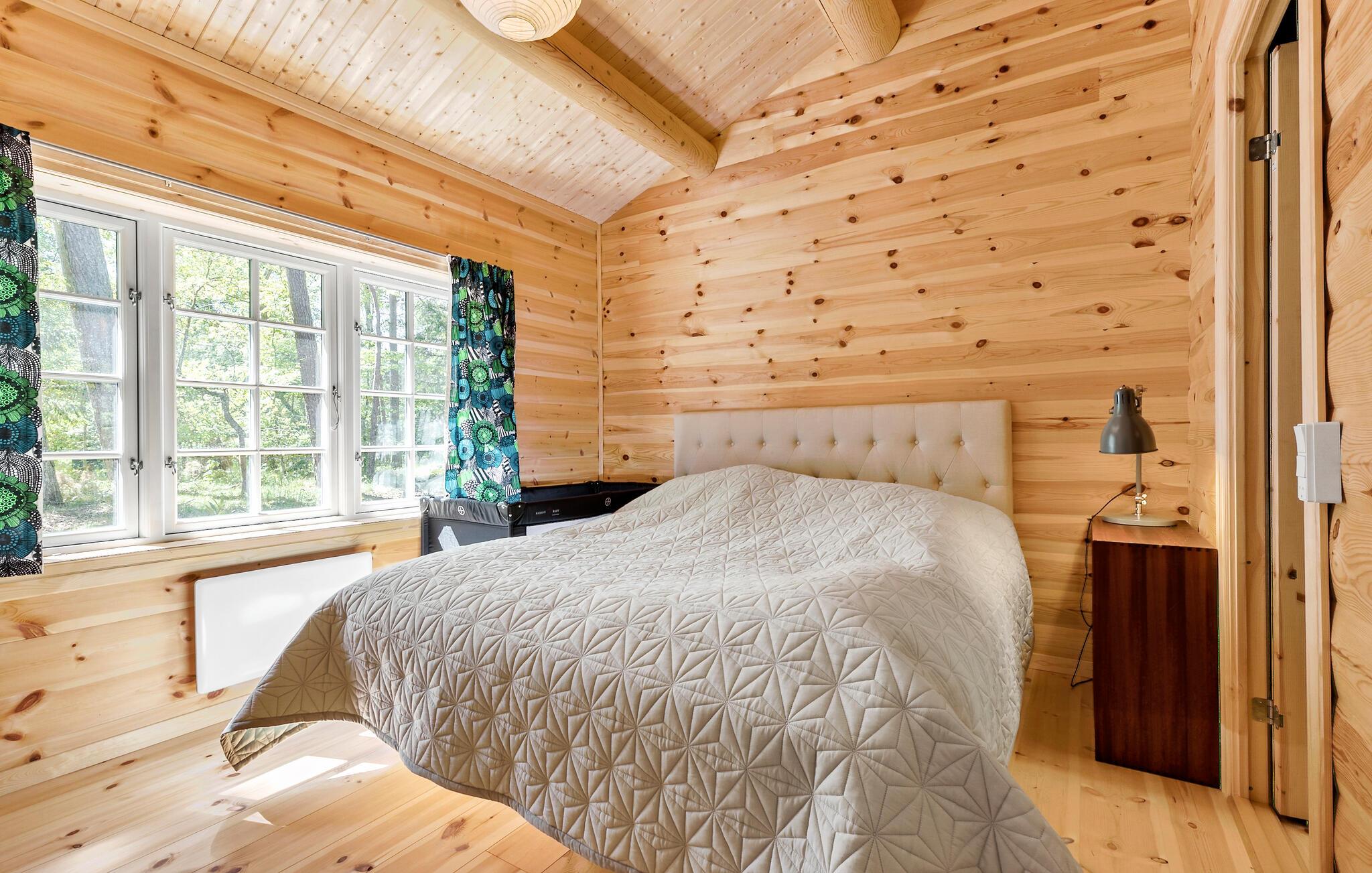 Tag den lille familie under armen og rejs til Nordsjælland, hvor der lige ved Arresø og lidt øst for Asserbo gemmer sig denne perle af en feriebolig. Med sit naturtag går huset nærmest i ét med de skovklædte omgivelser, og indvendigt emmer det af charme og kvalitet med velholdte træpaneler over hele linjen, loft til kip og sprossede vinduer, der giver det indre et lyst og luftigt udtryk. Hvis vejret bider lidt fra sig, kan I tænde op i brændeovnen og tage jer ekstra god tid med madlavningen i køkkenet, der er stort, flot og veludstyret. Senere kan I hive brætspillene frem eller nyde et godt glas vin i det behagelige sofahjørne ved brændeovnen og glæde jer over ikke at skulle tidligt op dagen efter.