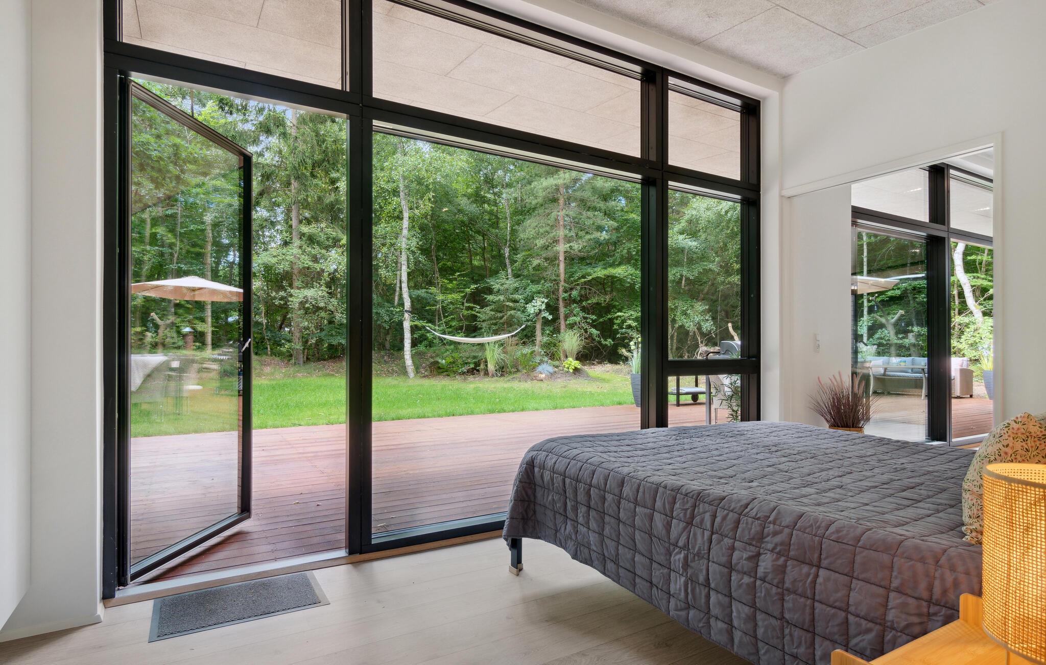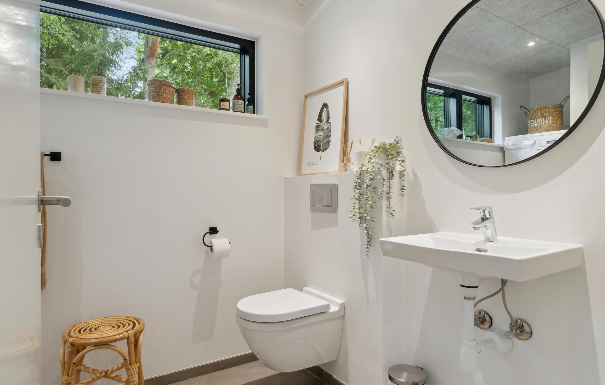 Velkommen til Nordsjællands skove, kystlinje og smukke natur, som I får nem adgang til fra dette skønne hus. Huset ligger på en grøn grund, der er omkranset af træer, og den rolige atmosfære mærkes både ude og inde. Boligen emmer af lys, luft og stilrene indretningsløsninger, så her er det nemt at slappe af og glemme alt om den hektiske hverdag. Fyld dagene med oplevelser i naturen, udflugter og strandture og vend tilbage til sommerhusets lækre faciliteter til madlavning og hyggelige fællesrum.