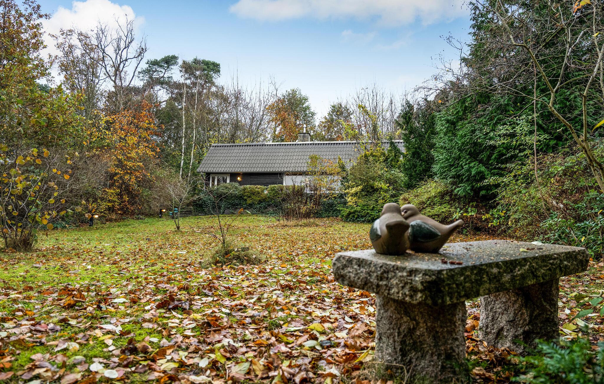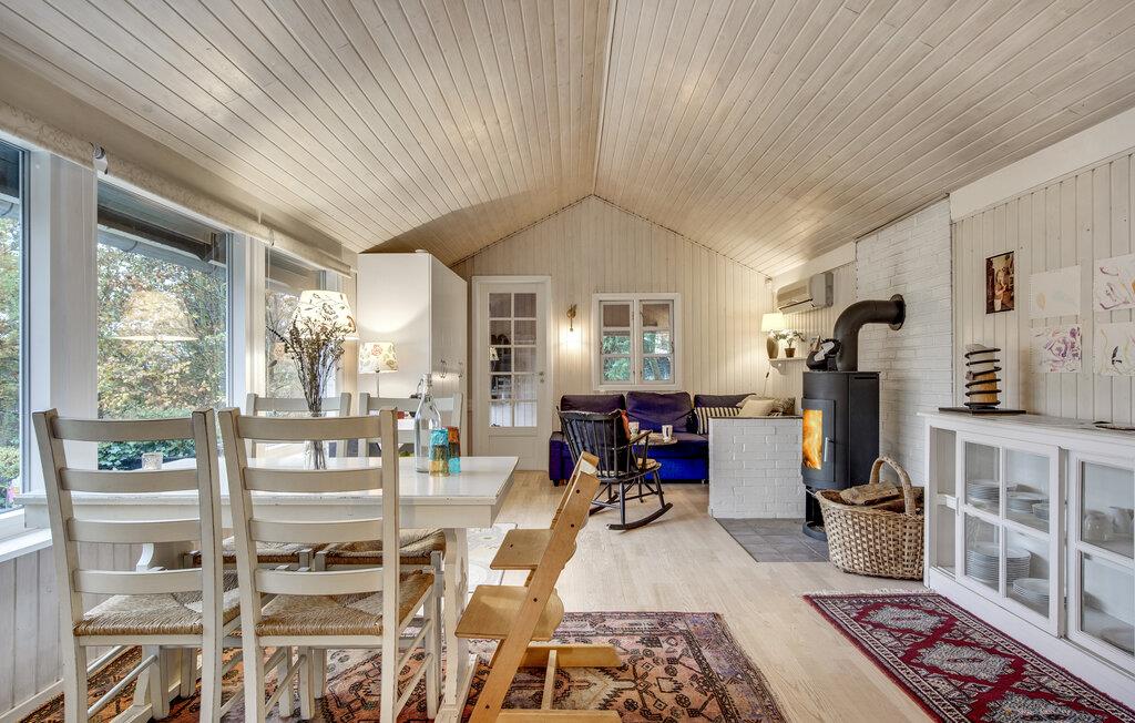 Skal jeres næste ferie være fyldt med maleriske omgivelser, afslapning foran brændeovnen og hyggelige læsestunder, så rammer I plet med dette sommerhus. Her er der ro, grøn natur og fredfyldt atmosfære inden for væggene. Huset er charmerende indrettet og ligger omringet af en ugeneret skøn have med høje træer og buske. Terrassen er forhøjet og får masser af sol, så I kan ofte nyde kaffen udenfor.
