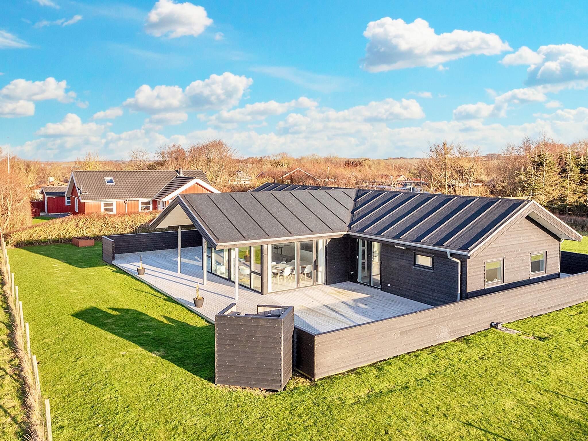 Interiøret har et lyst køkken og opholdsstue i åbent plan, ideel til familiesammenkomster og hyggelige aftener. Herfra har du adgang til aktivitetsrummet, der er udstyret med bordtennis, mens et separat legerum giver plads til børns legetøj eller spil, du medbringer. Feriehuset har to badeværelser, begge med bruser, og det større badeværelse indeholder sauna og spabad for ultimativ afslapning.