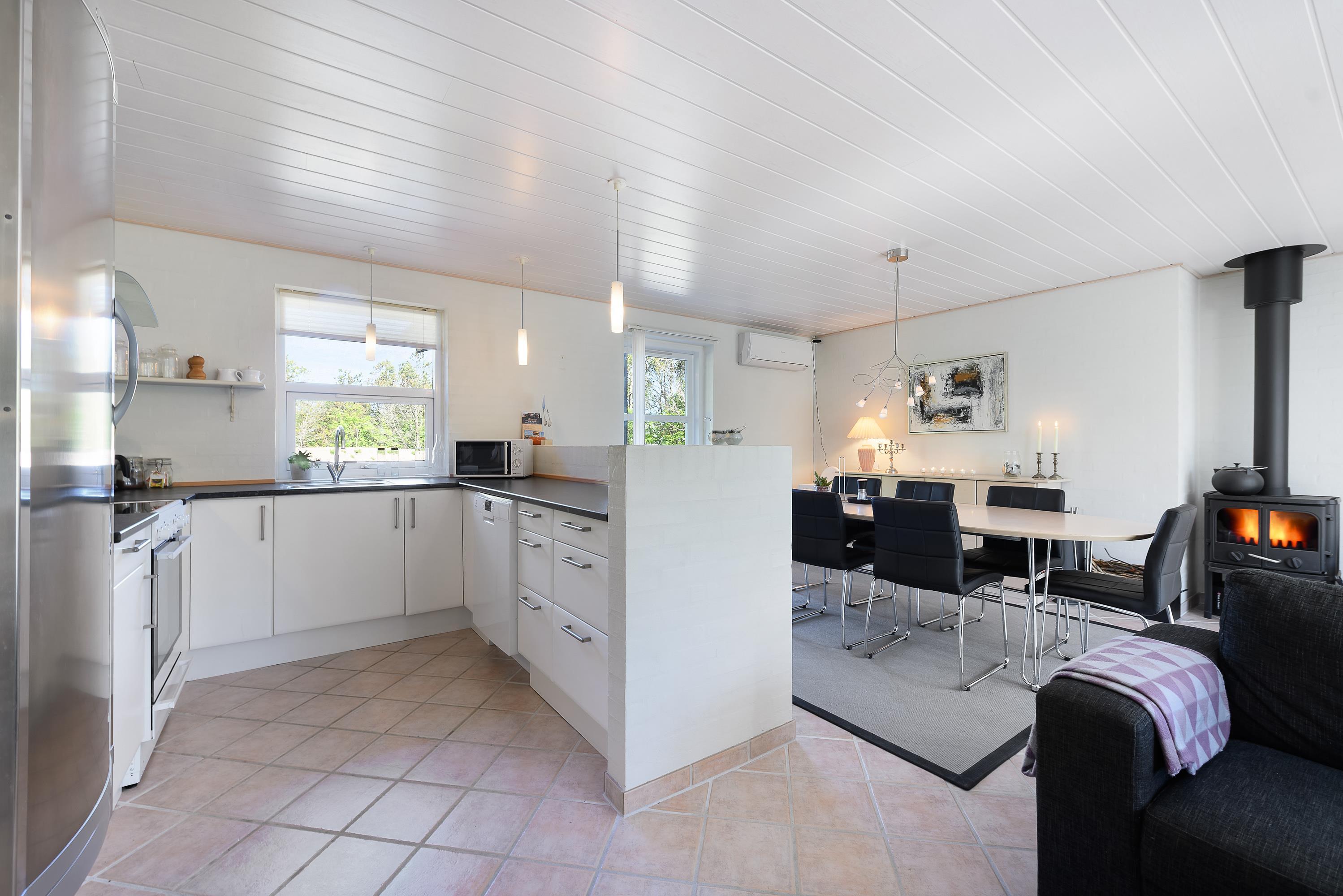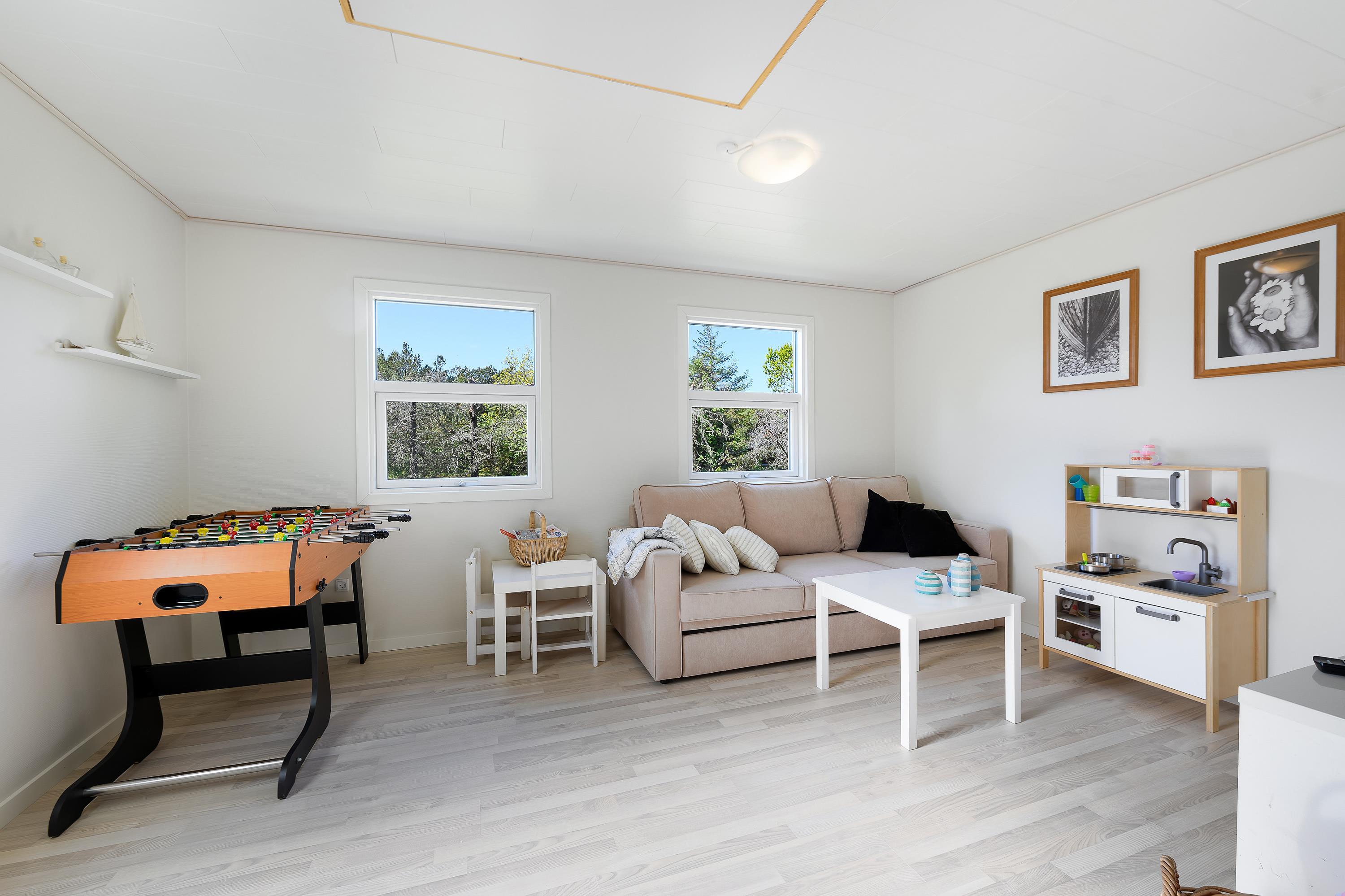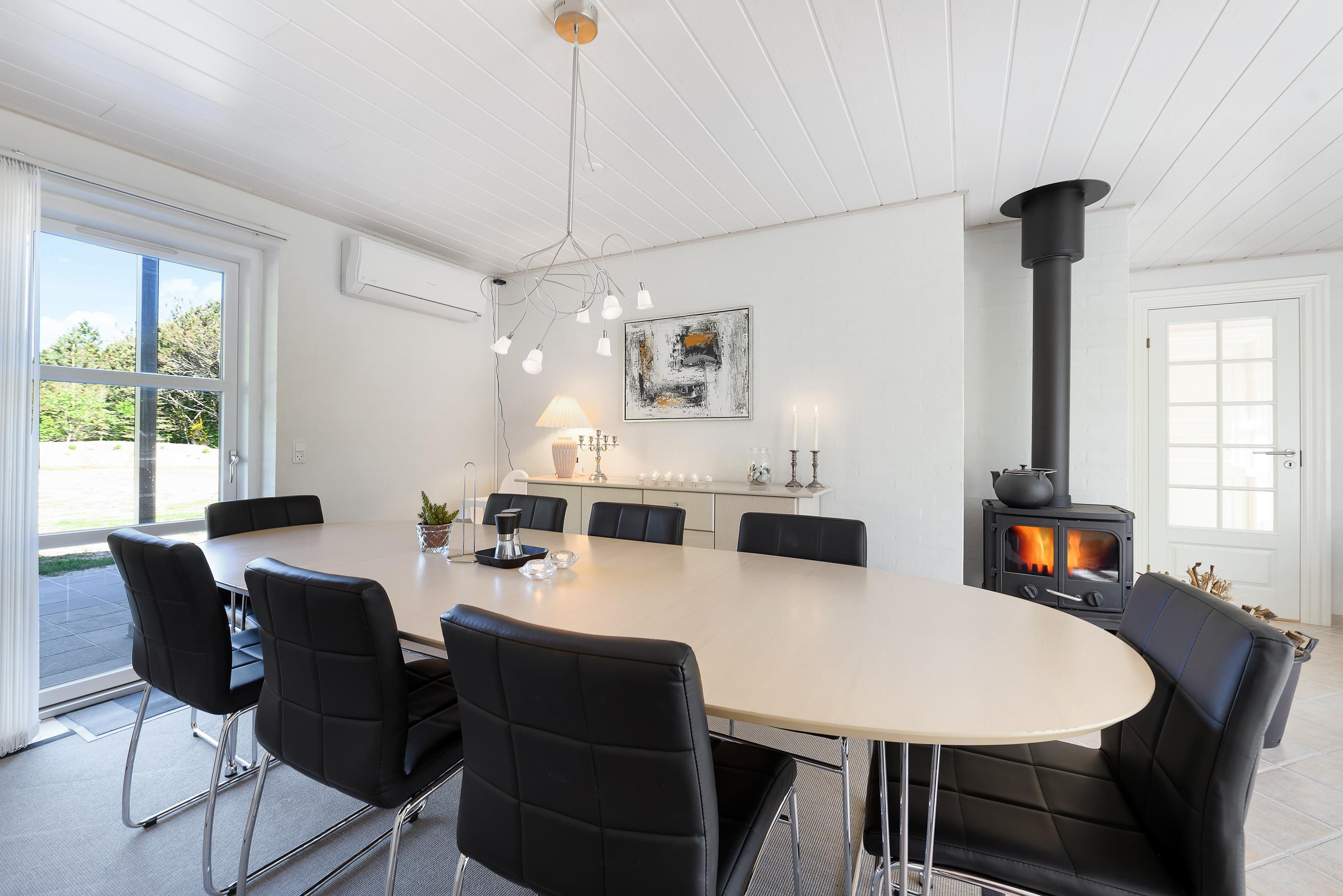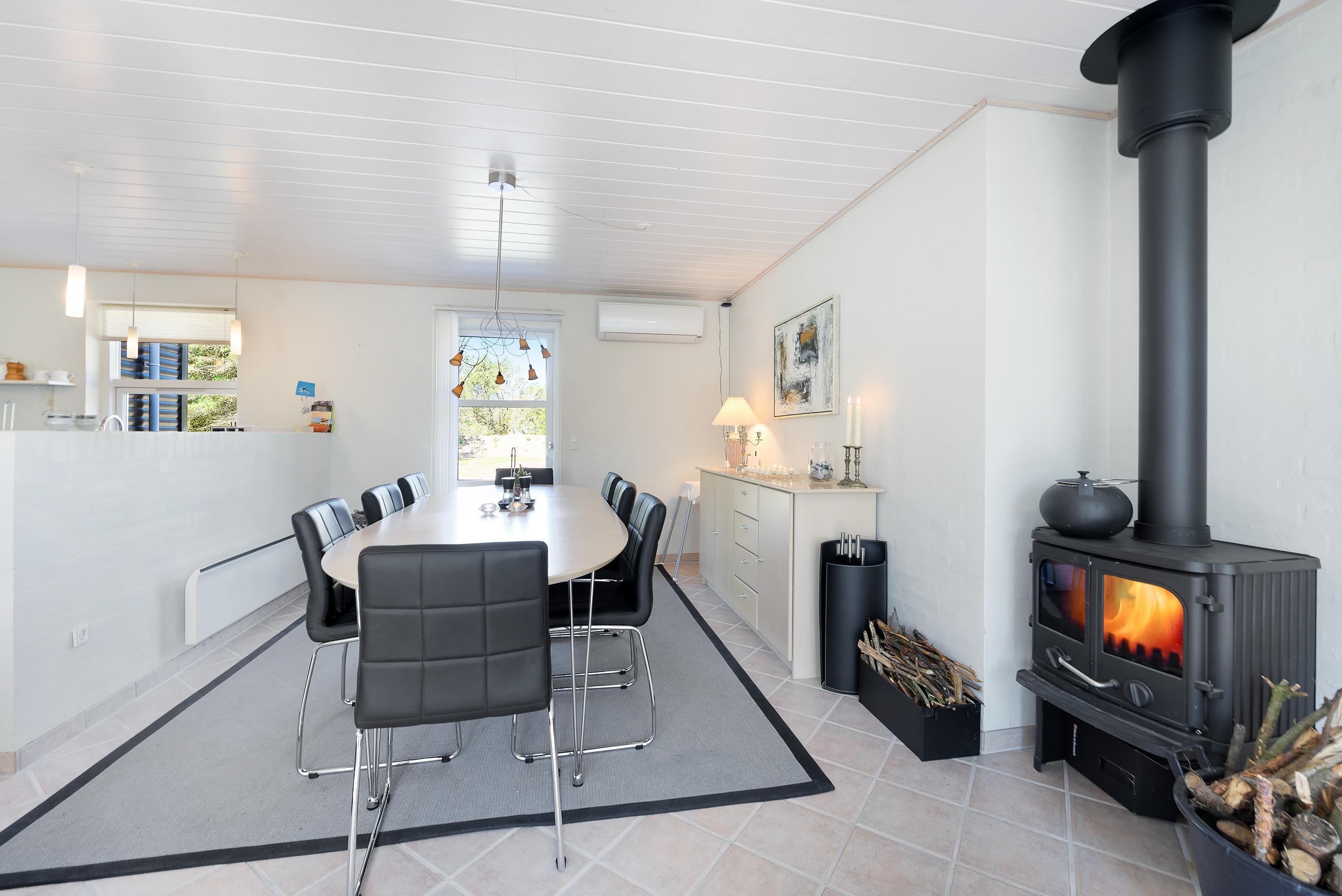 Ved brændeovnen er der plads til en stille stund med en god bog, mens ilden knitrer i baggrunden. Huset er udstyret med varmepumpe, opvaskemaskine, vaskemaskine og tørretumbler, så I får maksimal komfort og mere tid til hygge – både inde og ude.
