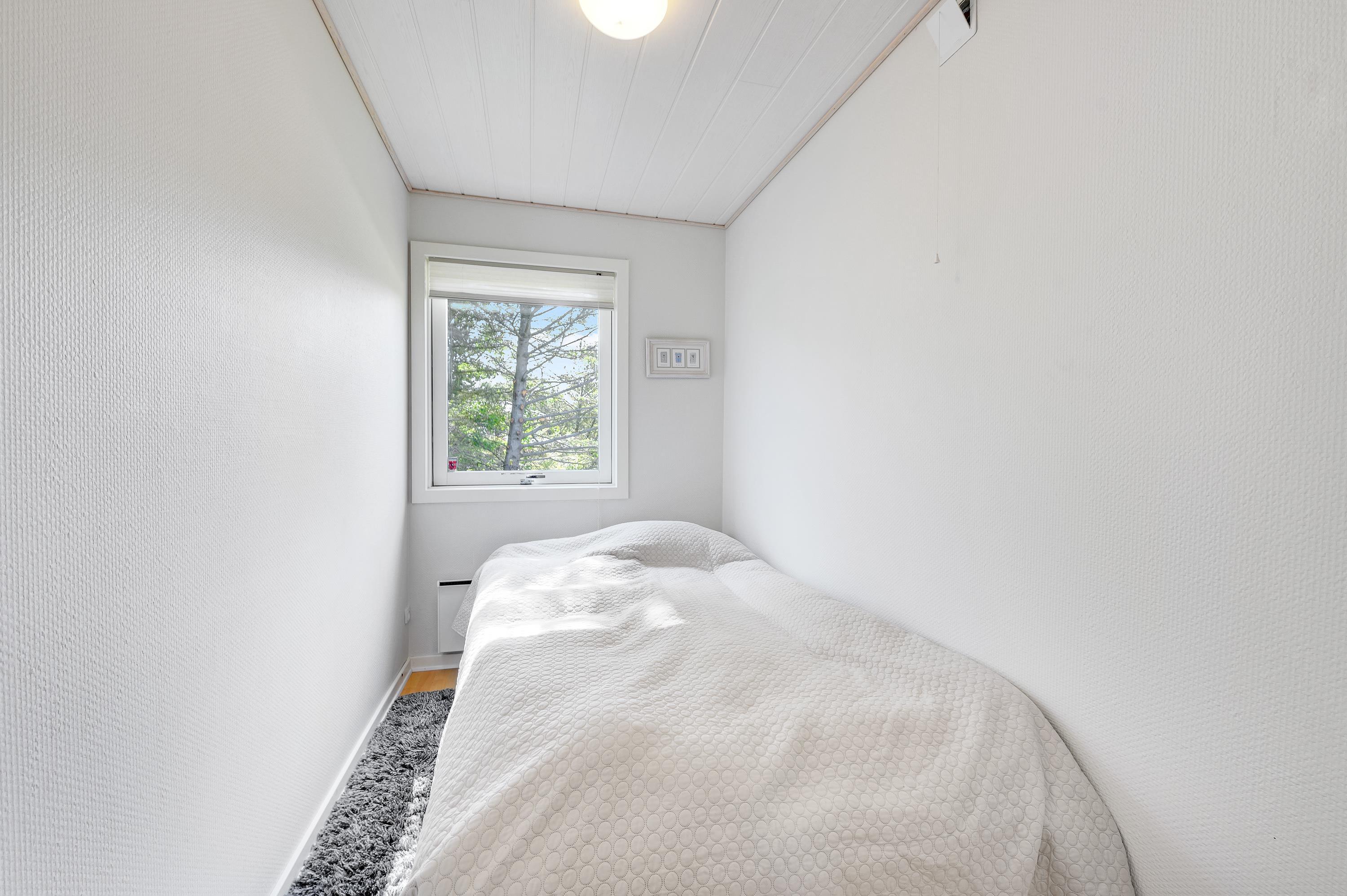 Dette lyse og indbydende sommerhus er smagfuldt indrettet i nordisk og romantisk stil, hvor der er kælet for detaljerne. Feriehuset ligger uforstyrret på en dejlig plænegrund, omgivet af høje træer og buske – perfekt til en rolig ferie tæt på naturen.
