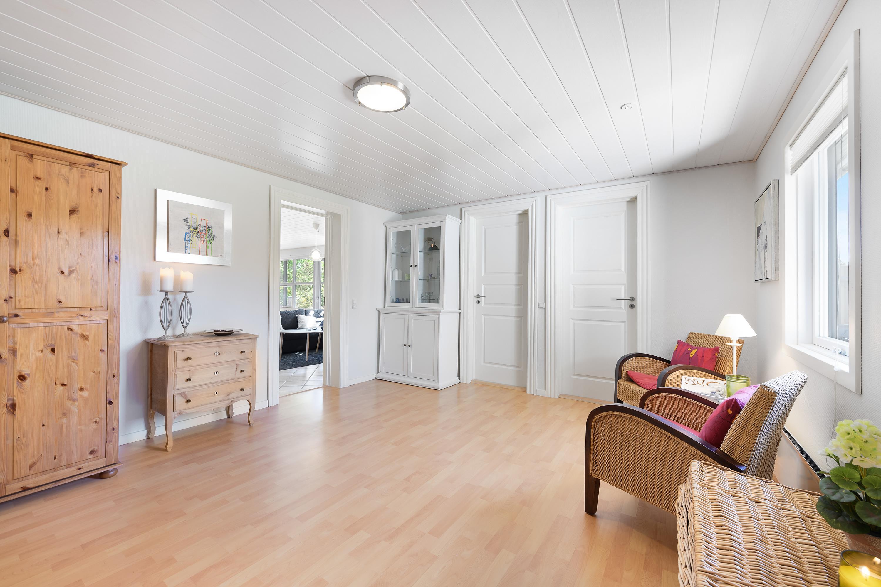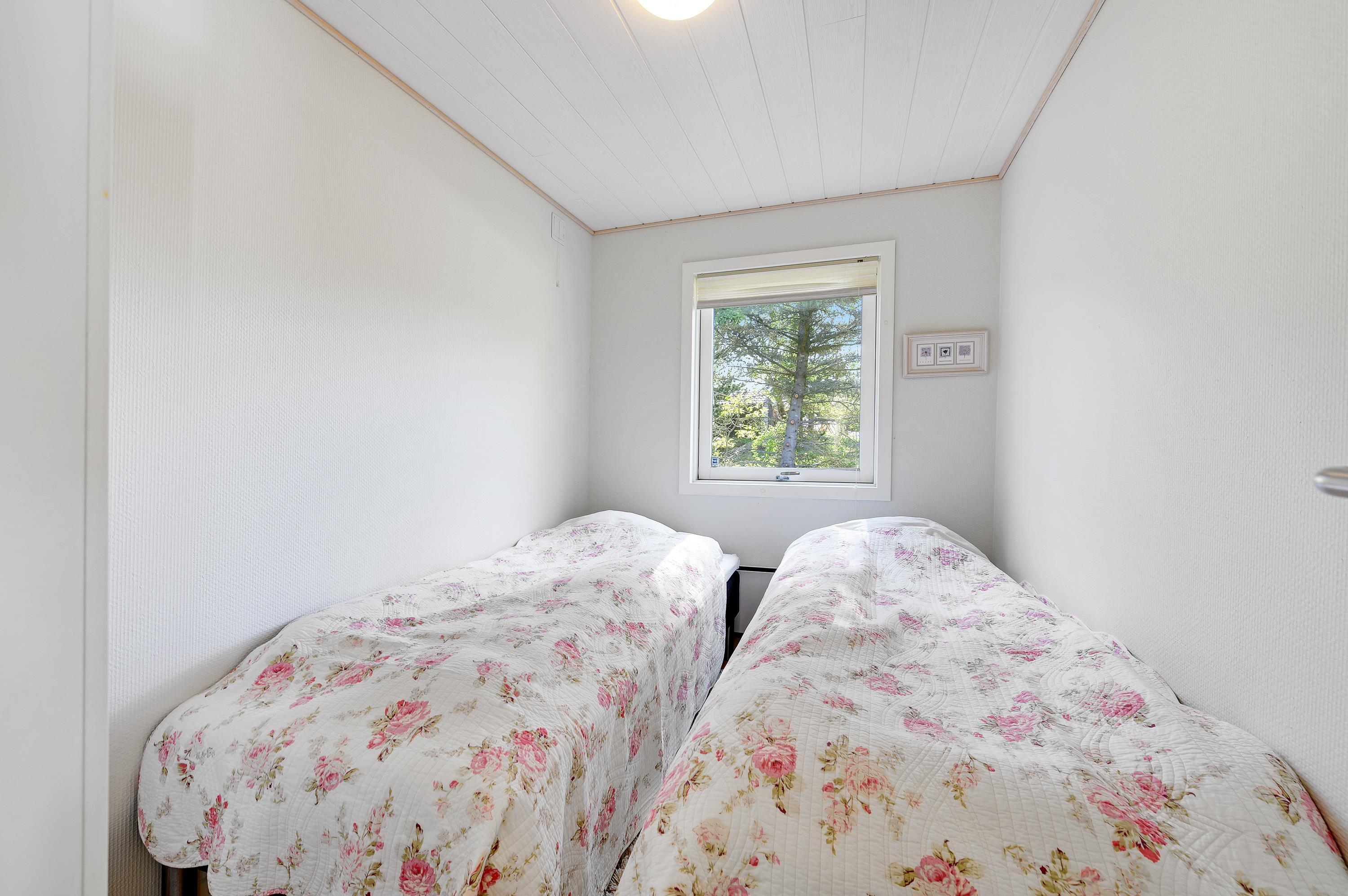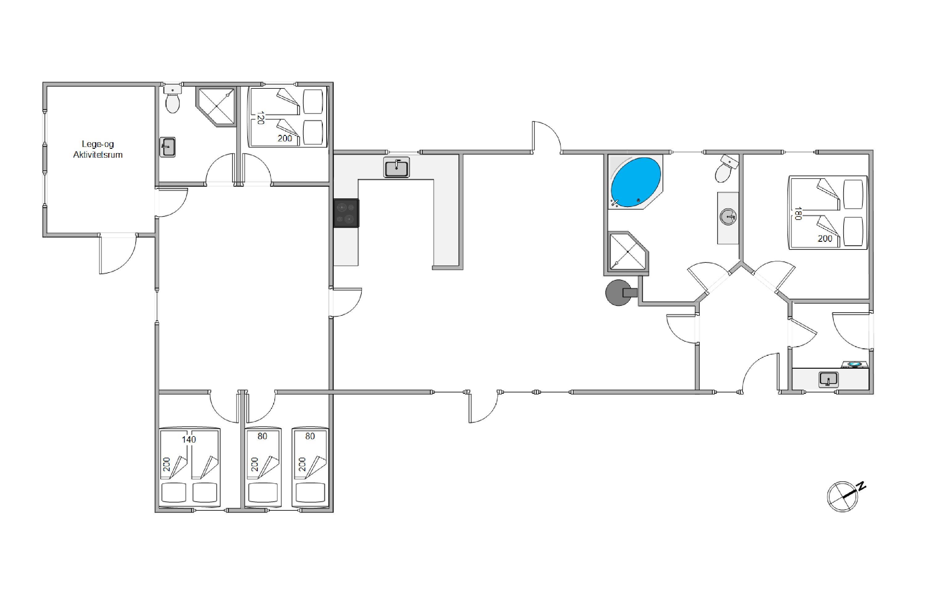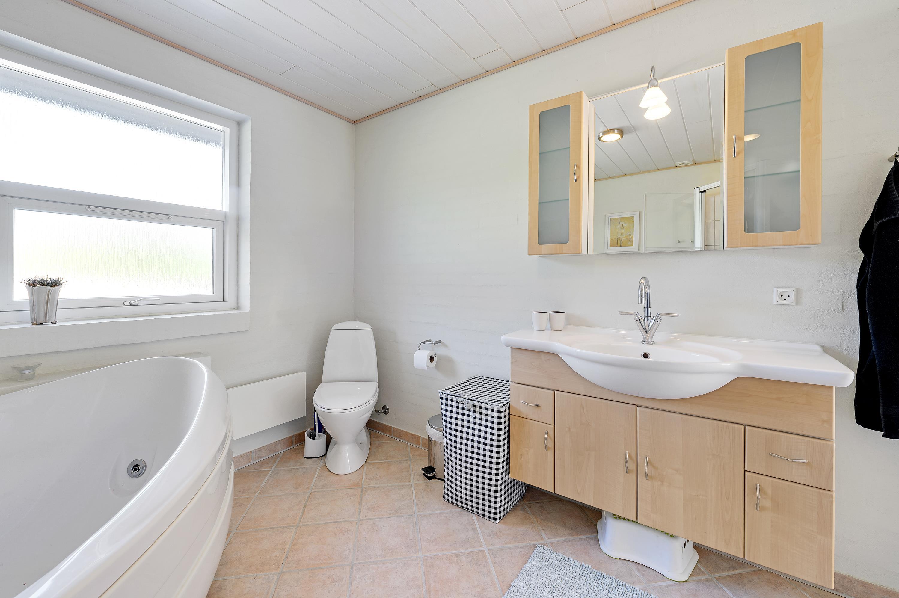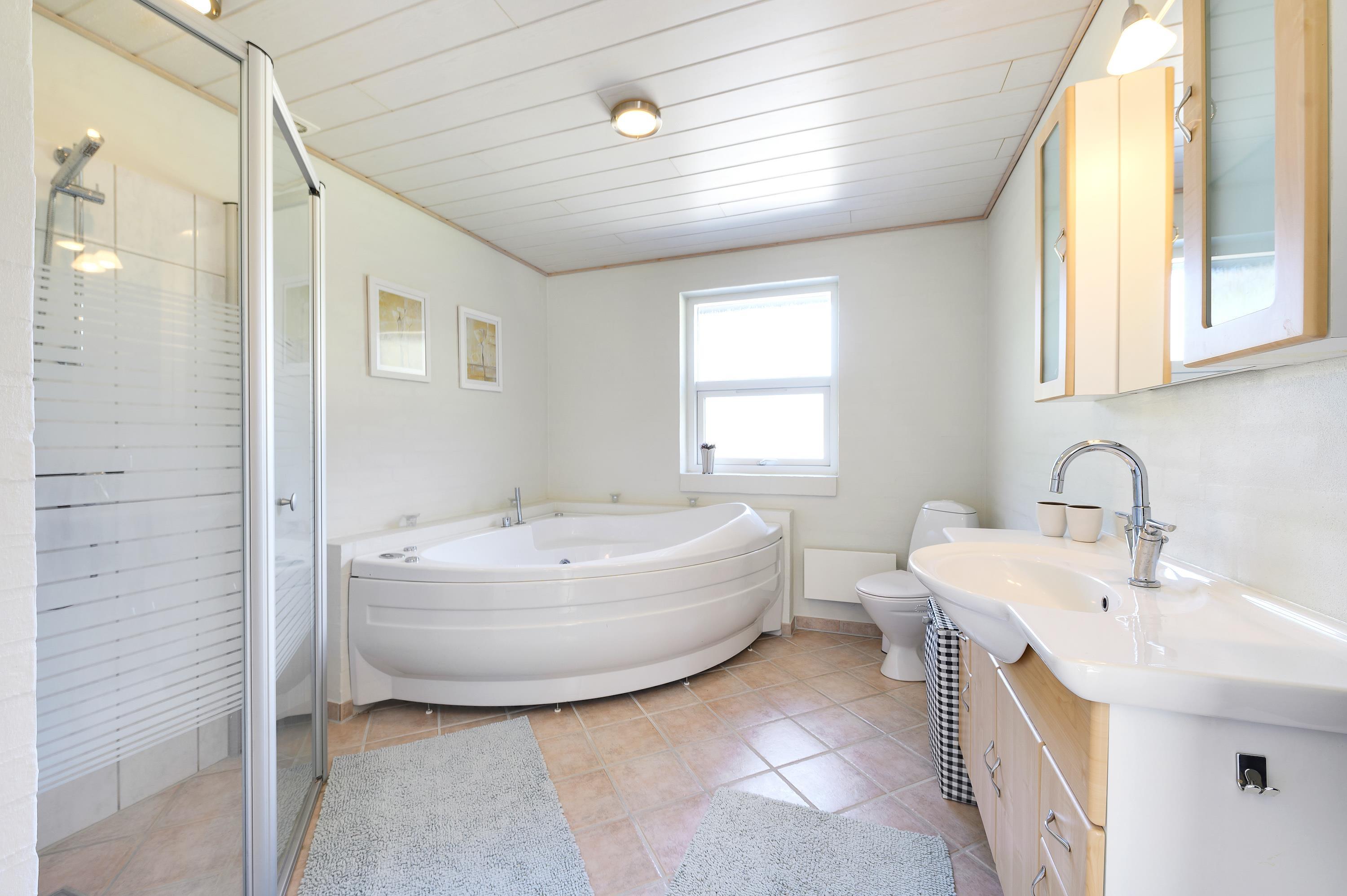 Sommerhuset har i alt 4 soveværelser og 2 moderne badeværelser, der samlet kan rumme op til 8 personer. Det største badeværelse er udstyret med komfortabel gulvvarme og en dejlig hjørnespa, hvor du kan nyde afslappende stunder helt for dig selv. Her kan du tage dig tid til ro og velvære uden andet end at slappe af og lade batterierne op.