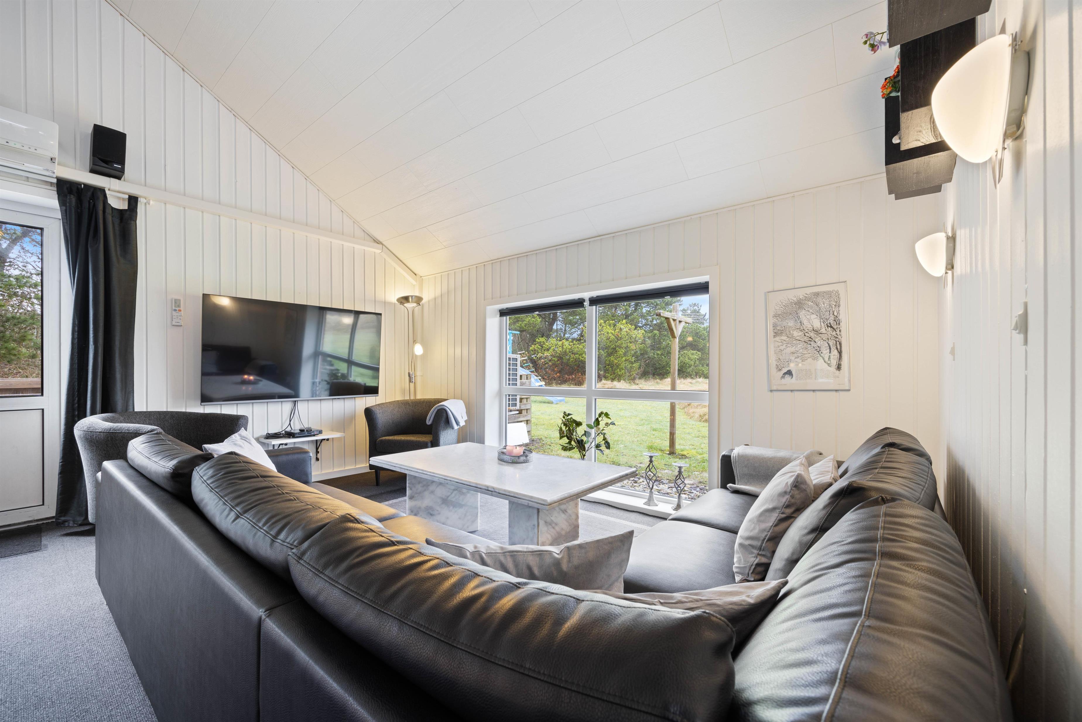 Når I træder ind i feriehuset, bliver I mødt af det store opholdsrum, som forbinder køkken, stue, spiseplads og aktivitetsrum. Her kan I lave mad sammen, planlægge jeres næste ferieaktiviteter eller se en film sammen. På regnvejrsdage byder feriehuset på masser af aktiviteter med et poolbord og et bordfodboldbord, så der er ingen chance for kedsomhed. Du kan krone billardmesteren, mens brændeovnen i baggrunden sørger for hyggelig varme og den typiske sommerhusstemning. Der er også installeret en energibesparende luft-til-luft varmepumpe, som spreder en behagelig varme i hele feriehuset.