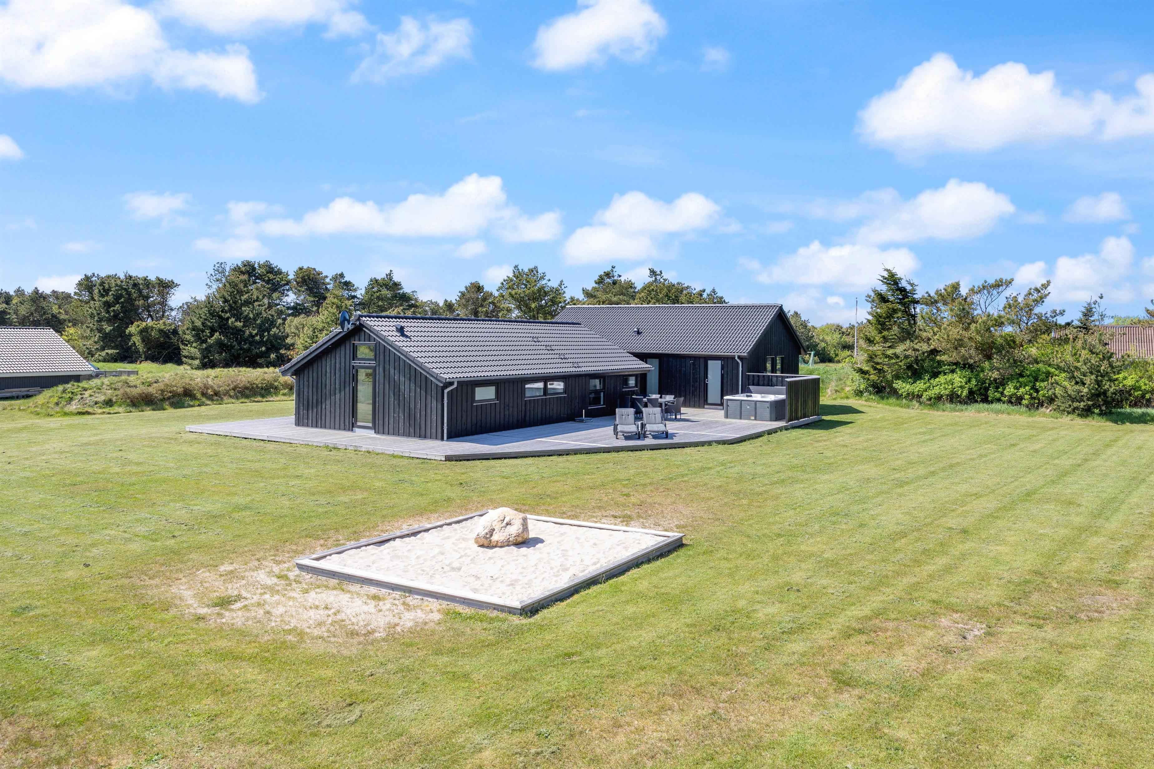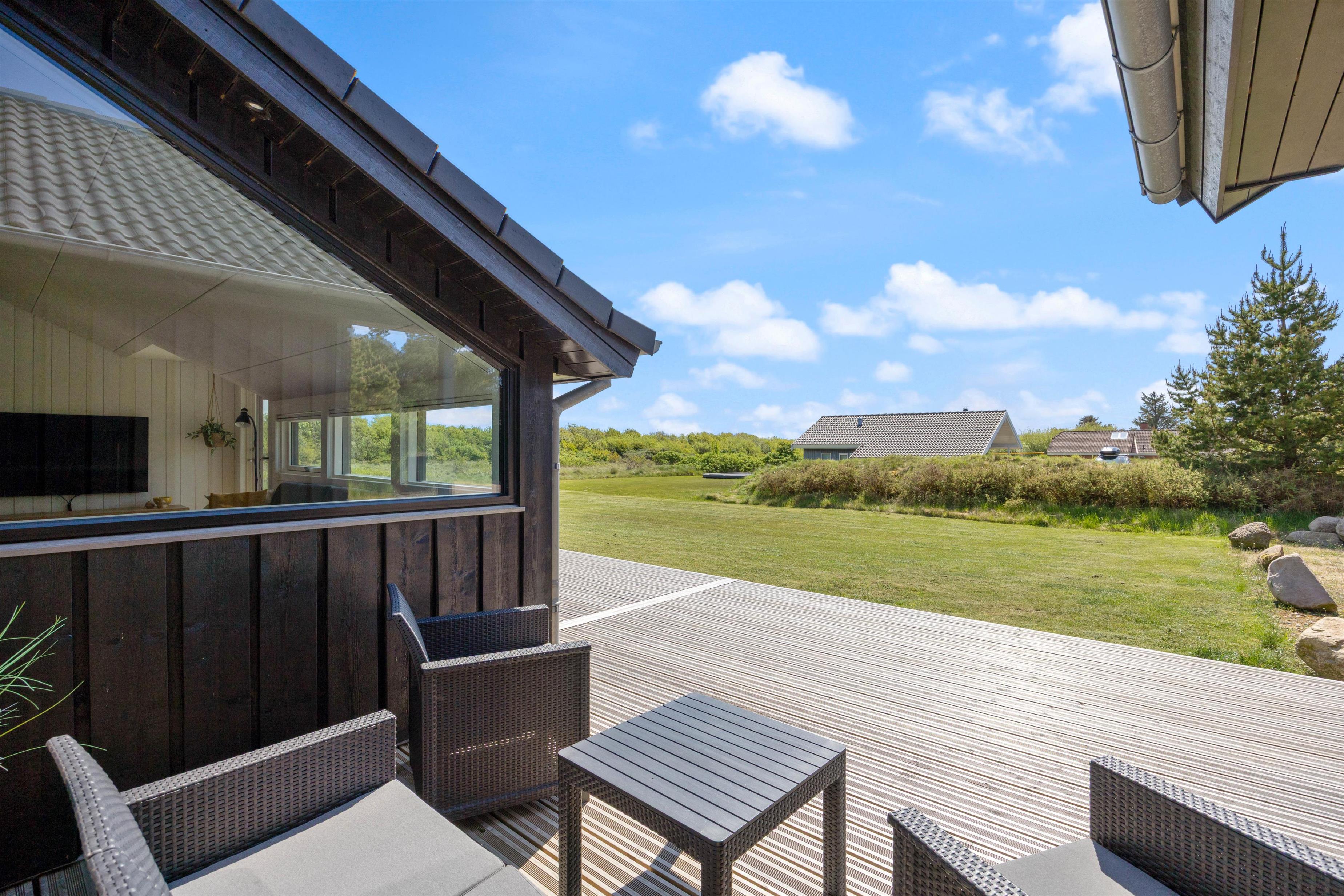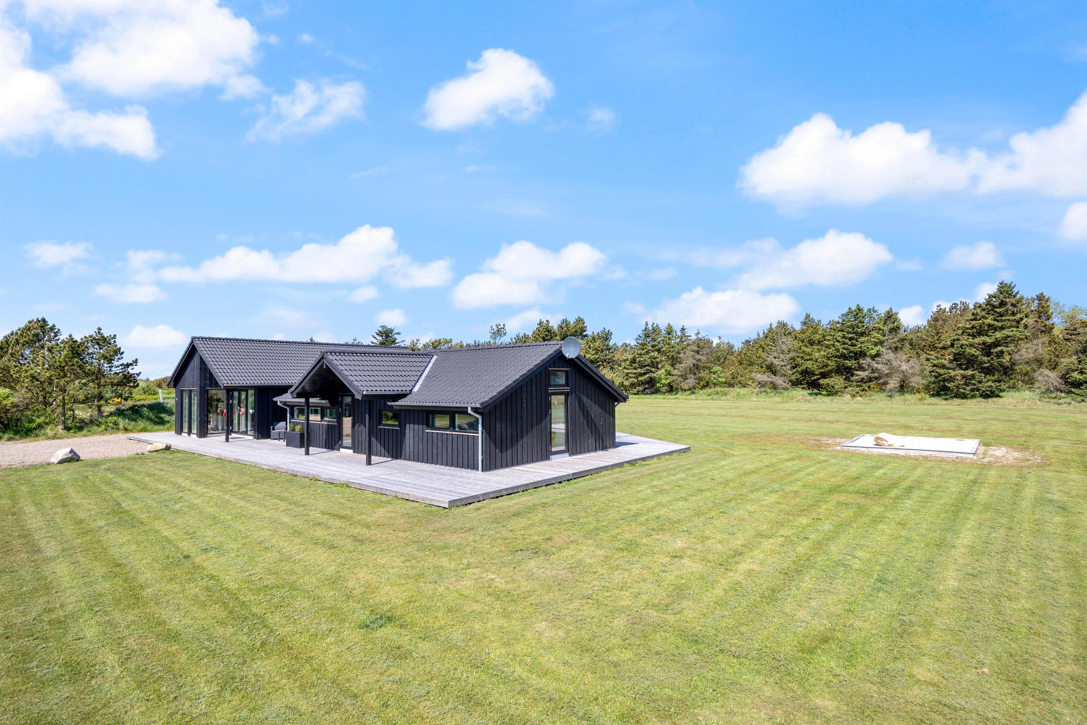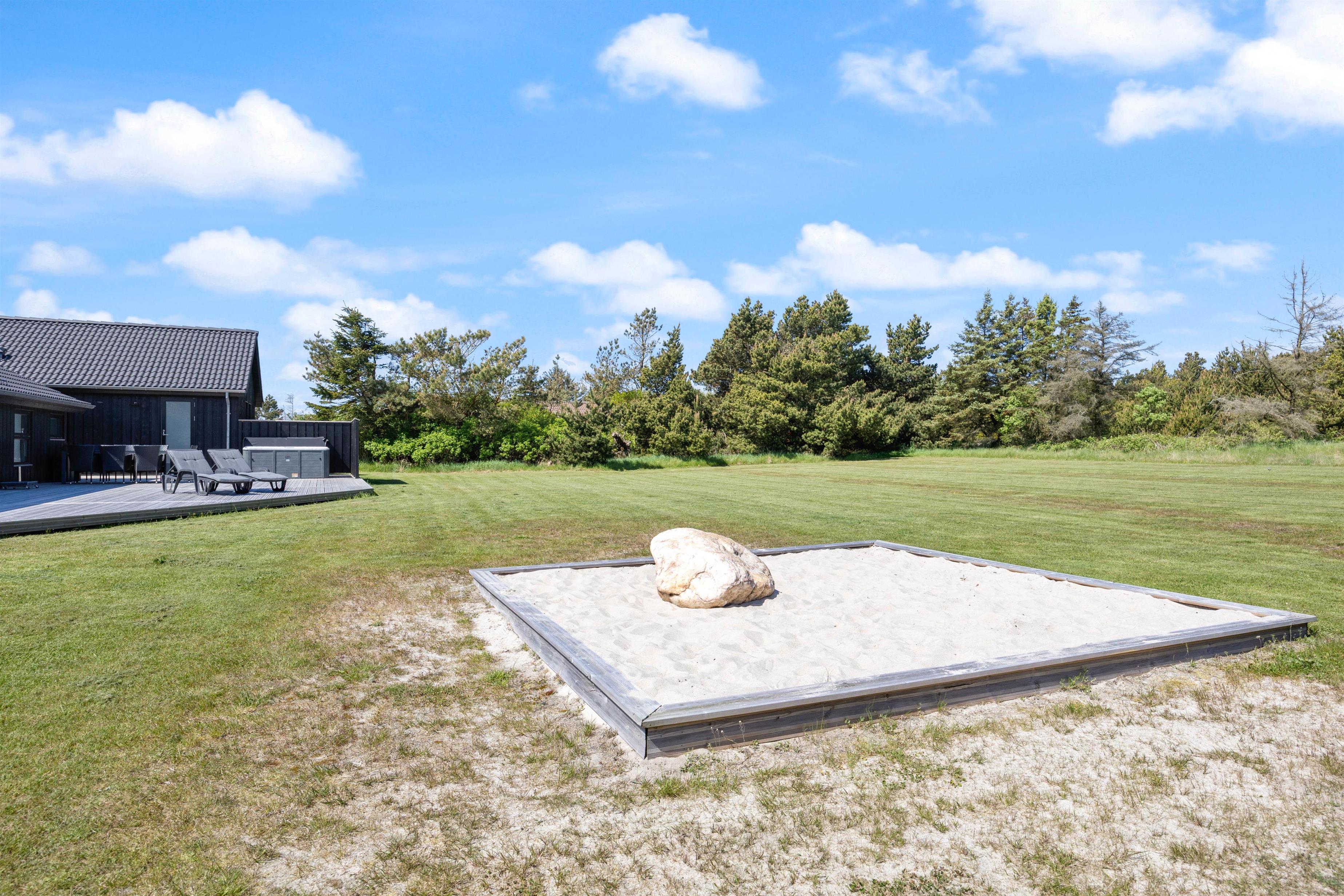 Feriehuset på Sivsangervej 25 på Lodbjerg Hede ligger på en plænegrund på ca. 2346 m2, som indbyder til sjov og leg for børn og hunde. Mens børnene spiller bold, kan I hygge jer på feriehusets store omkringliggende træterrasse med en kold drink. Feriehusets grill indbyder til afslappet grillhygge, på husets terrsasse om aftenen. I nærheden af feriehuset finder I desuden en nyrenoveret legeplads. De lidt større børn kan sagtens selv gå derhen, da der går en lille sti hen til legepladsen.