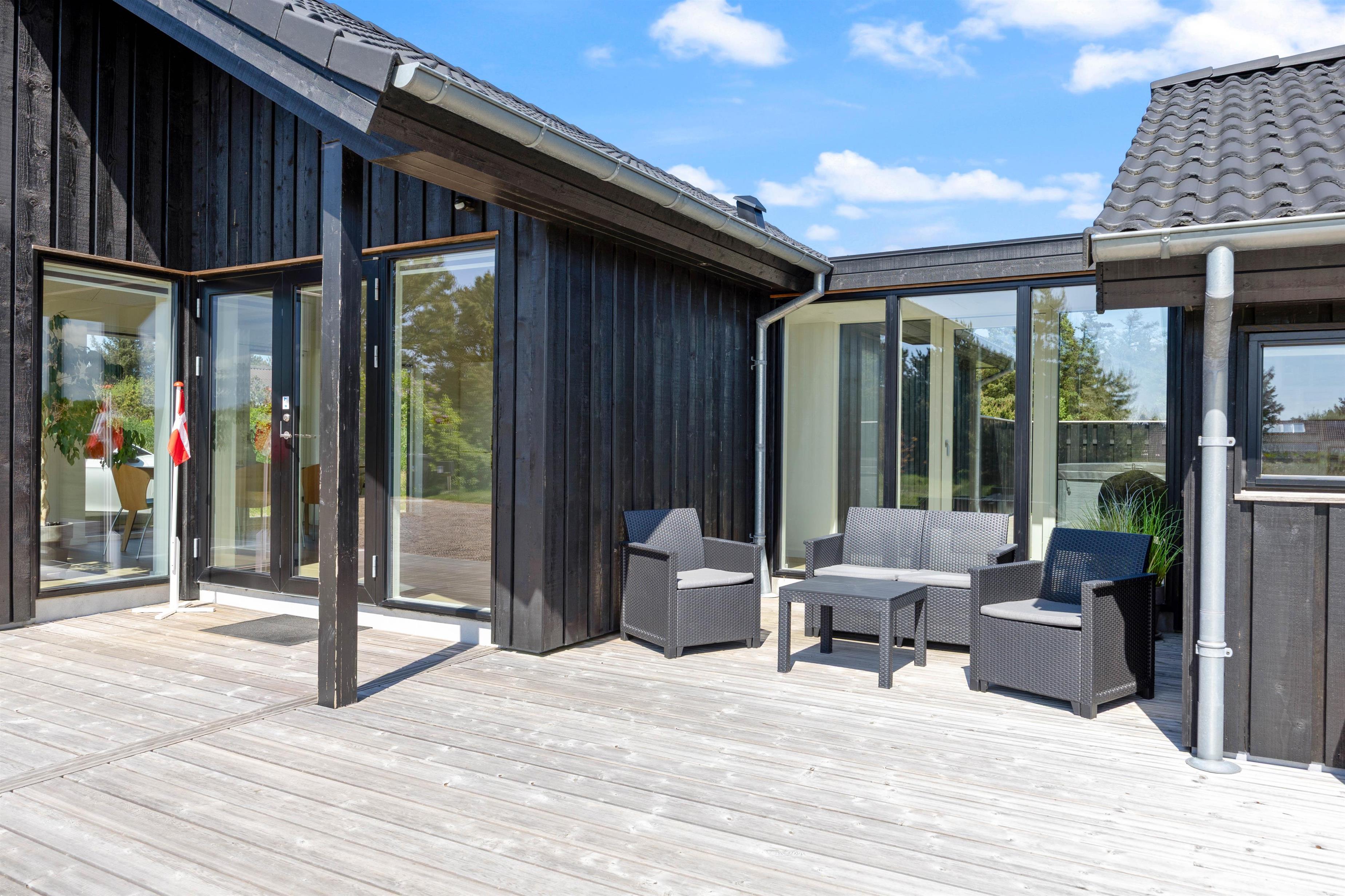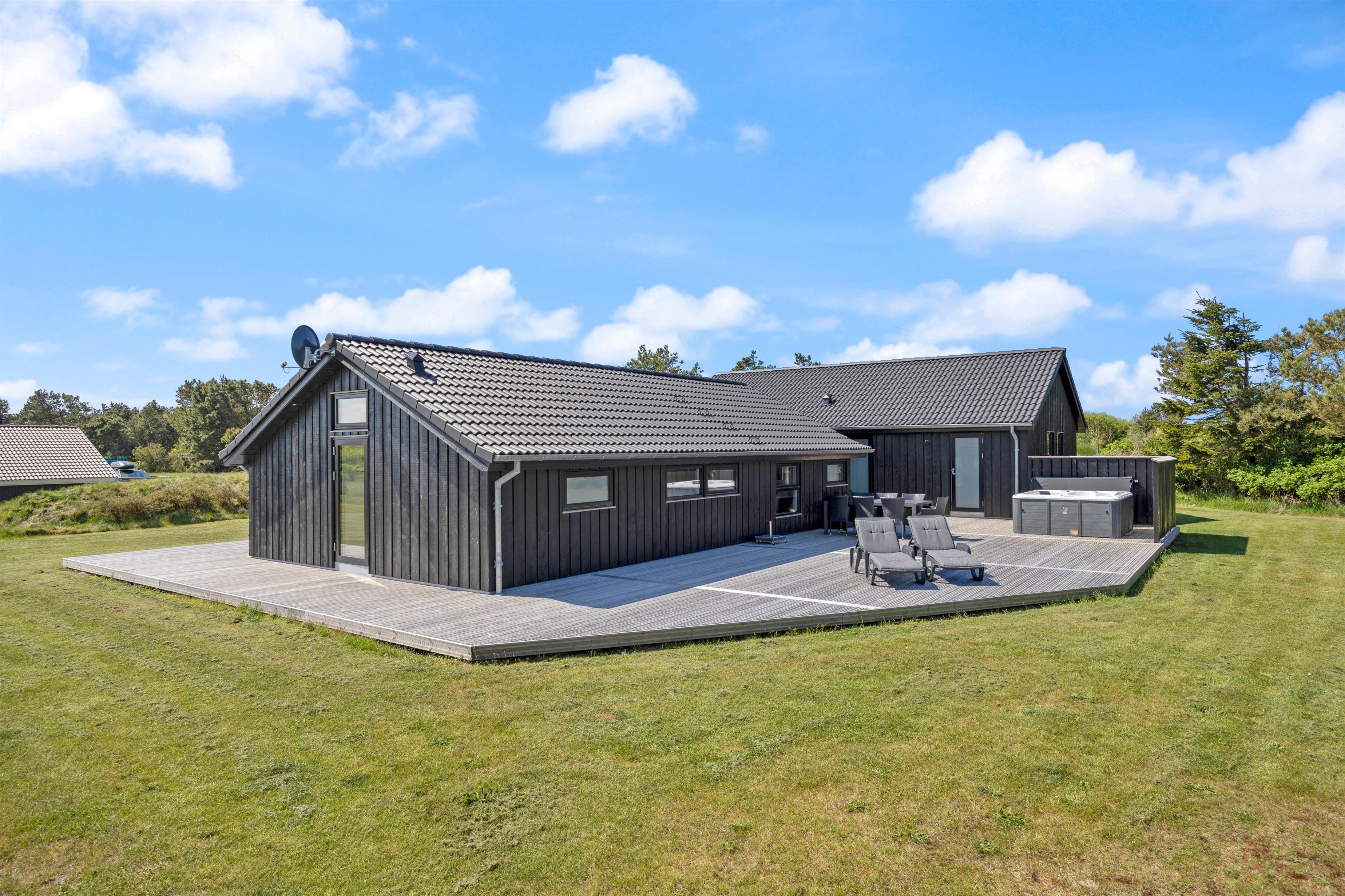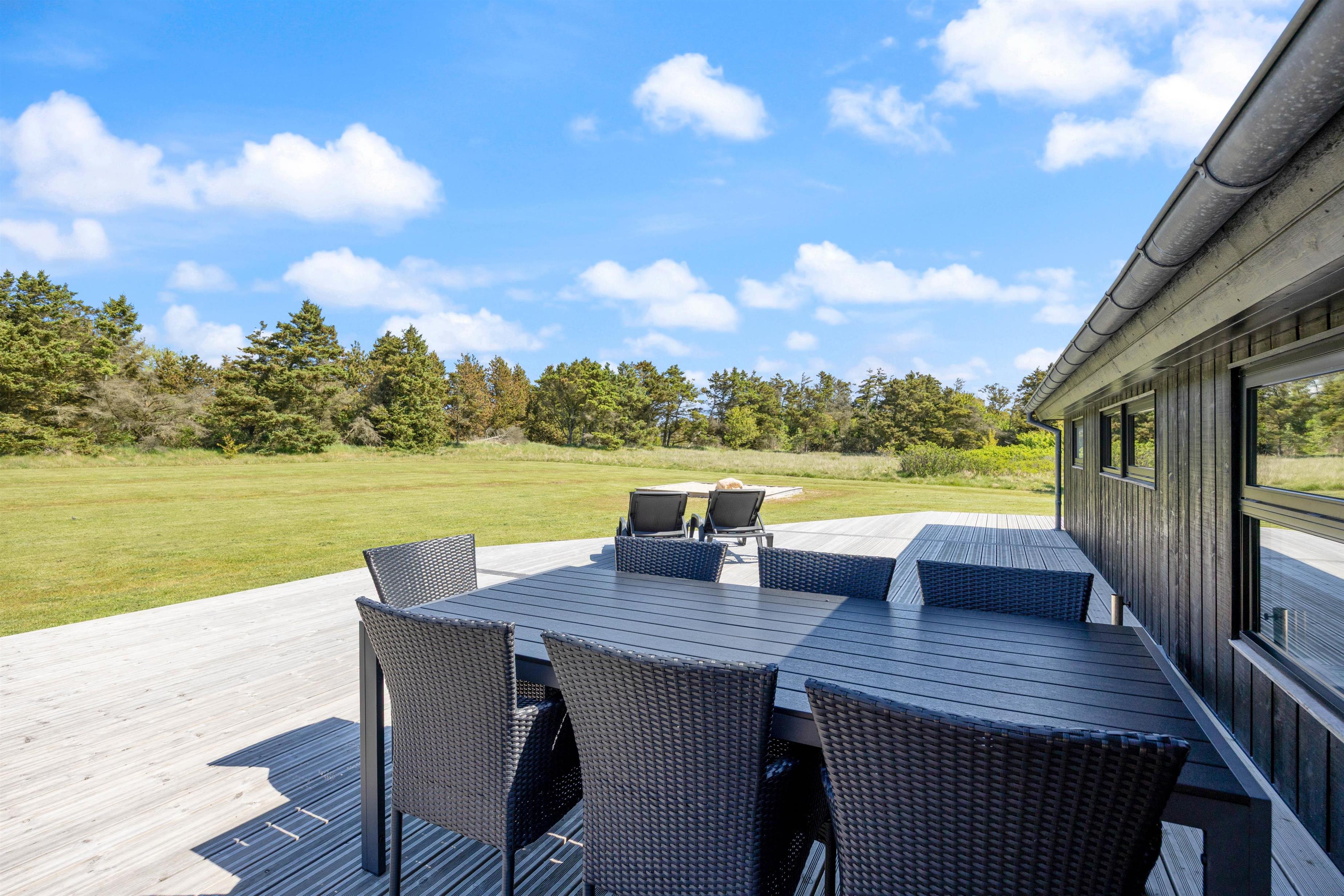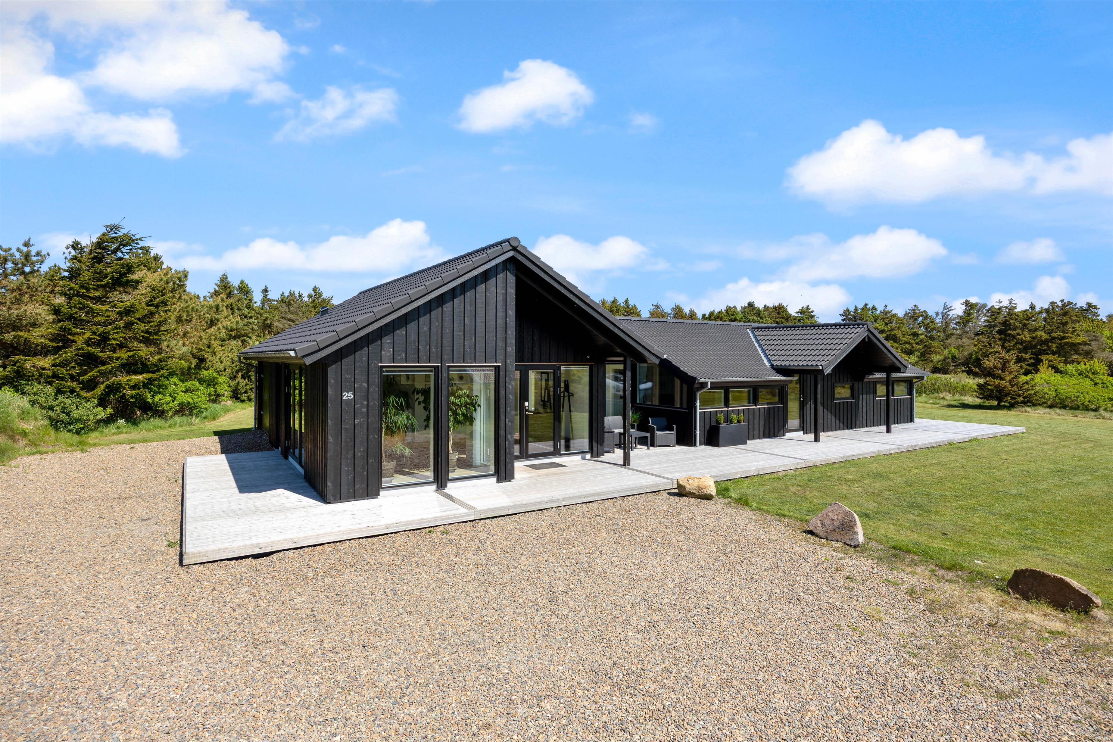Feriehuset på Sivsangervej 25 på Lodbjerg Hede ligger på en plænegrund på ca. 2346 m2, som indbyder til sjov og leg for børn og hunde. Mens børnene spiller bold, kan I hygge jer på feriehusets store omkringliggende træterrasse med en kold drink. Feriehusets grill indbyder til afslappet grillhygge, på husets terrsasse om aftenen. I nærheden af feriehuset finder I desuden en nyrenoveret legeplads. De lidt større børn kan sagtens selv gå derhen, da der går en lille sti hen til legepladsen.