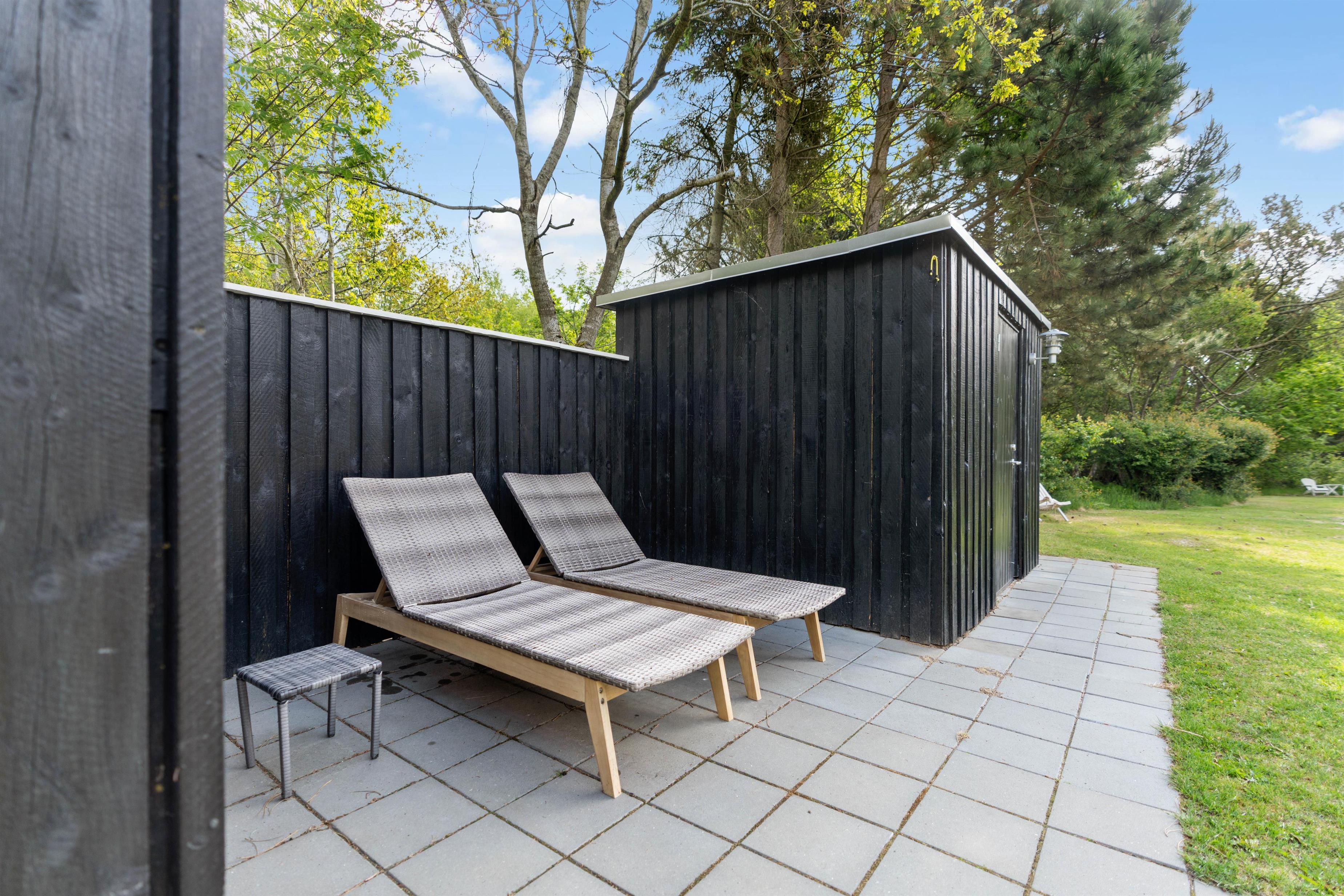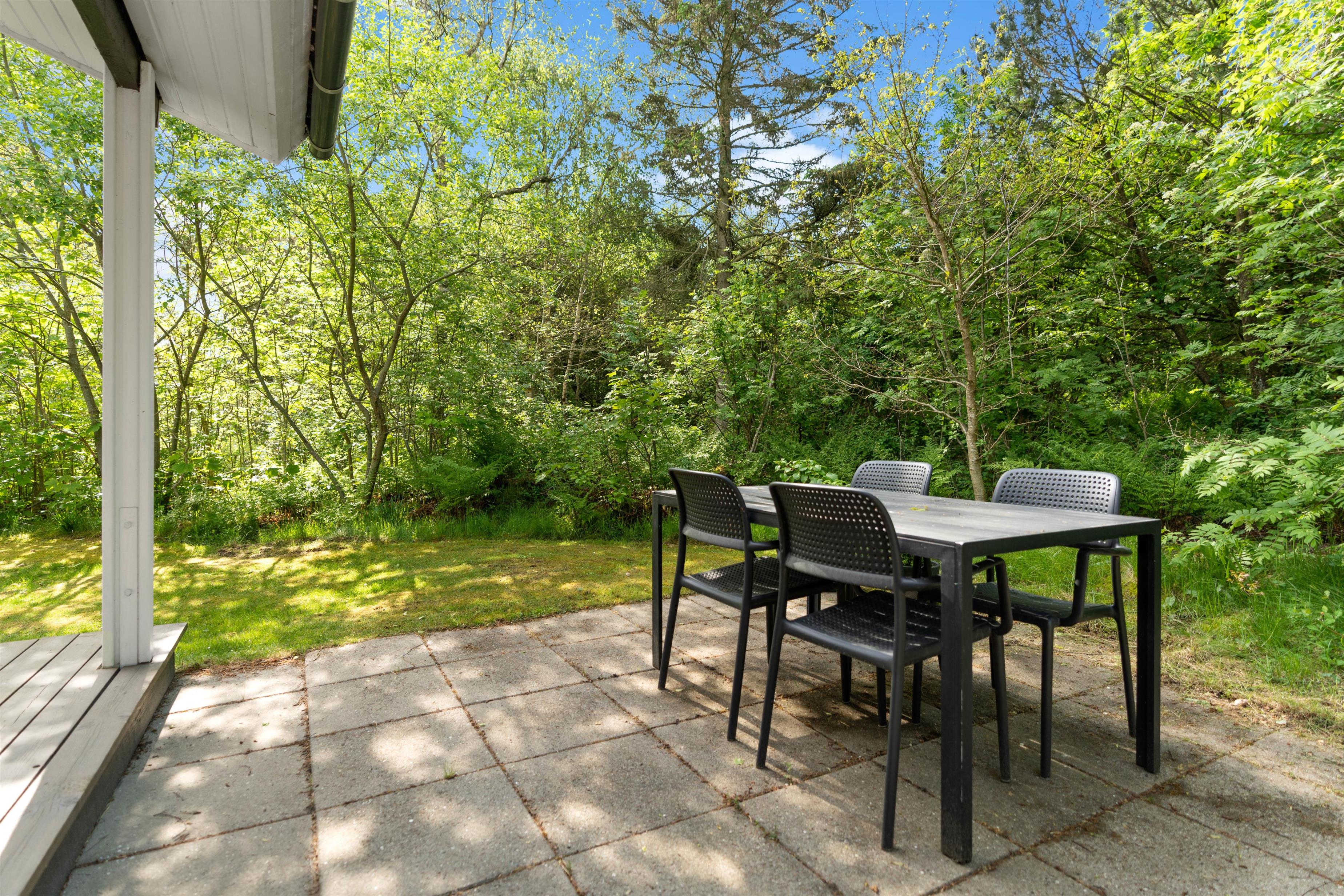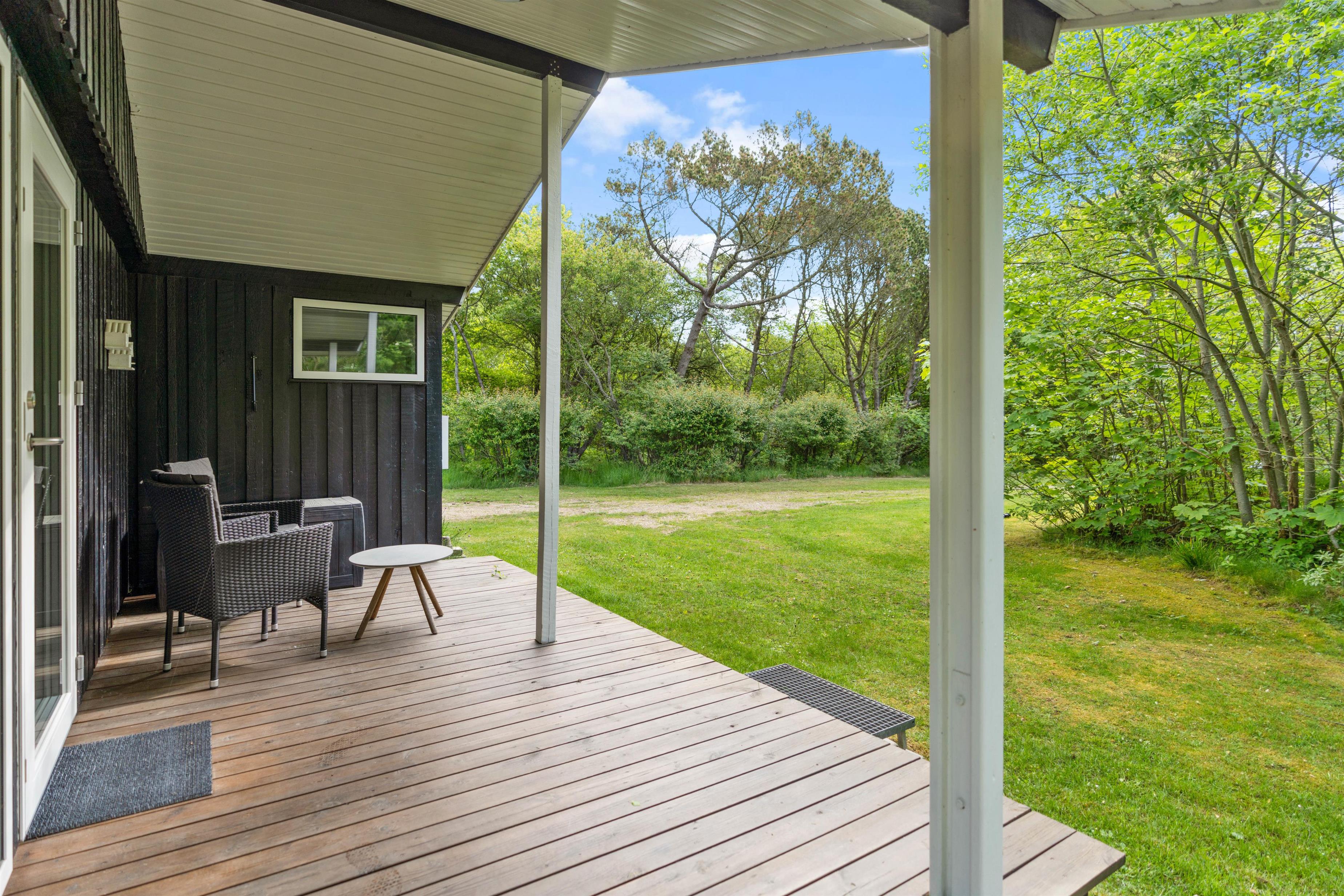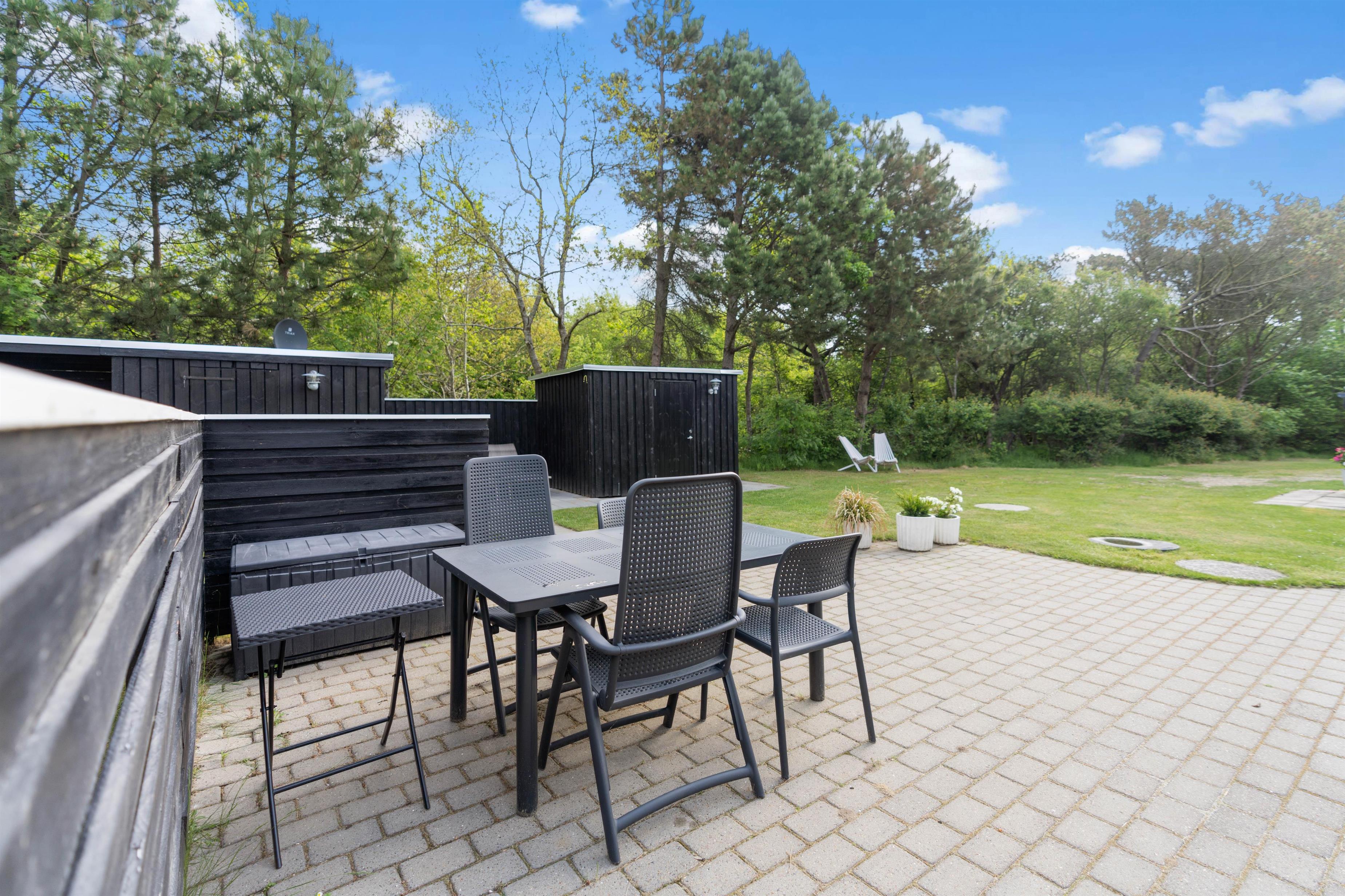 Der er flere lækre terrasser til huset på Lodbjerg Hede en delvist overdækket er placeret mod øst, mod syd og mod nord er terrassen åben og den nordlige er delvist afskærmet. Et perfekt tilholdssted for både børn og voksne, som ønsker sig masser af den friske luft og læ. Har man hund med på ferie, er den store grund skøn at opholde sig på, for hele familien. Er I til cykel– eller traveture, er områdets store stisystem lige uden for døren.