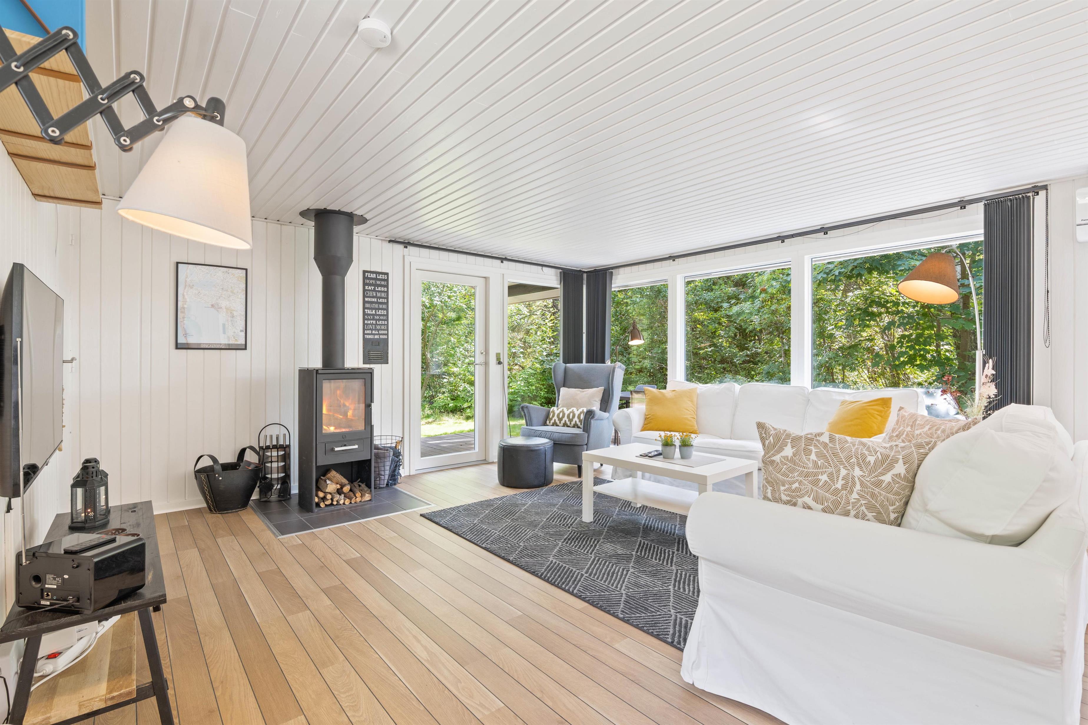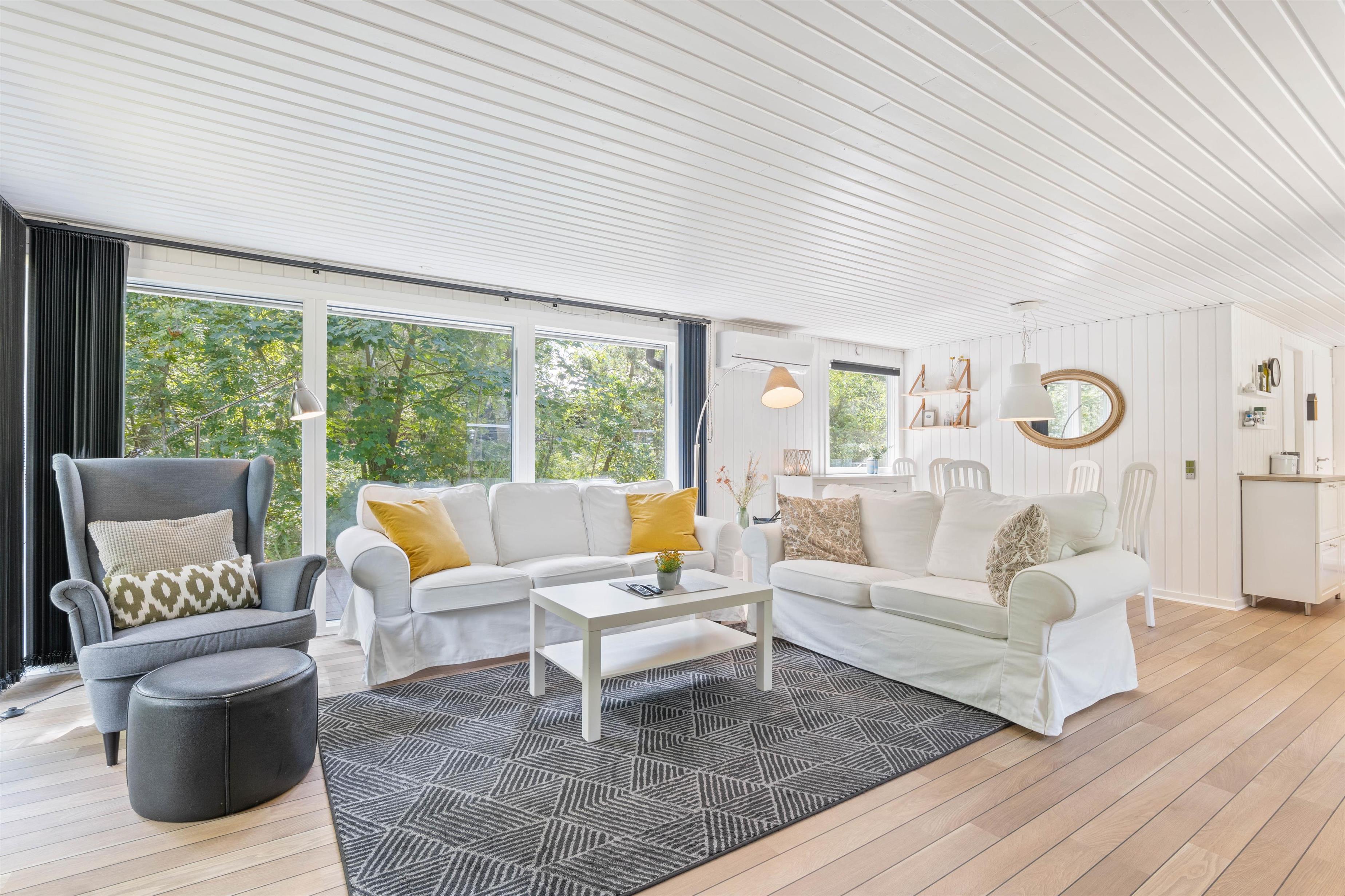 Her er virkelig lyst og indbydende, og der er skabt en skøn atmosfære, hvor I med sikkerhed vil føle jer veltilpas. Til at varme rummet op, har I udover brændeovnen også en effektiv luft-til-luft varmepumpe, der også kan sørge for en behagelige indetemperatur og indeklima. Grundet totalrenovering i 2020 står huset skarpt og moderne, og der er taget mange gode valg, der alt i alt er med til skabe en dejlig og hyggelig atmosfære.