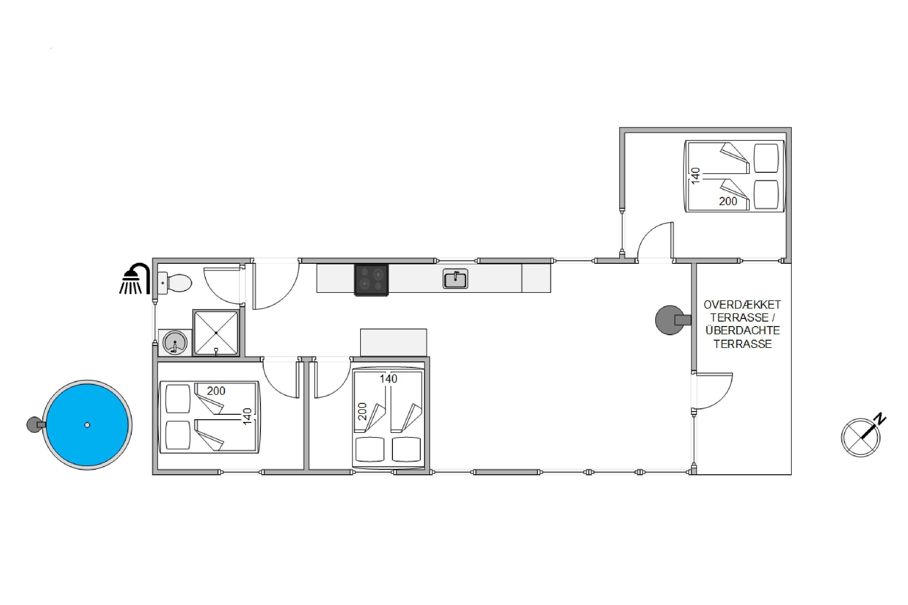 Når I skal til at sove, kan I fordele jer i husets 3 soveværelser. Dette betyder, at I snildt kan komme til huset op til 5 personer, og huset egner sig derfor godt til den mindre familie eller parret. Sommerhusets tillader også at I kan medbring 1 hund, der helt sikkert vil elske en tur til den danske vestkyst