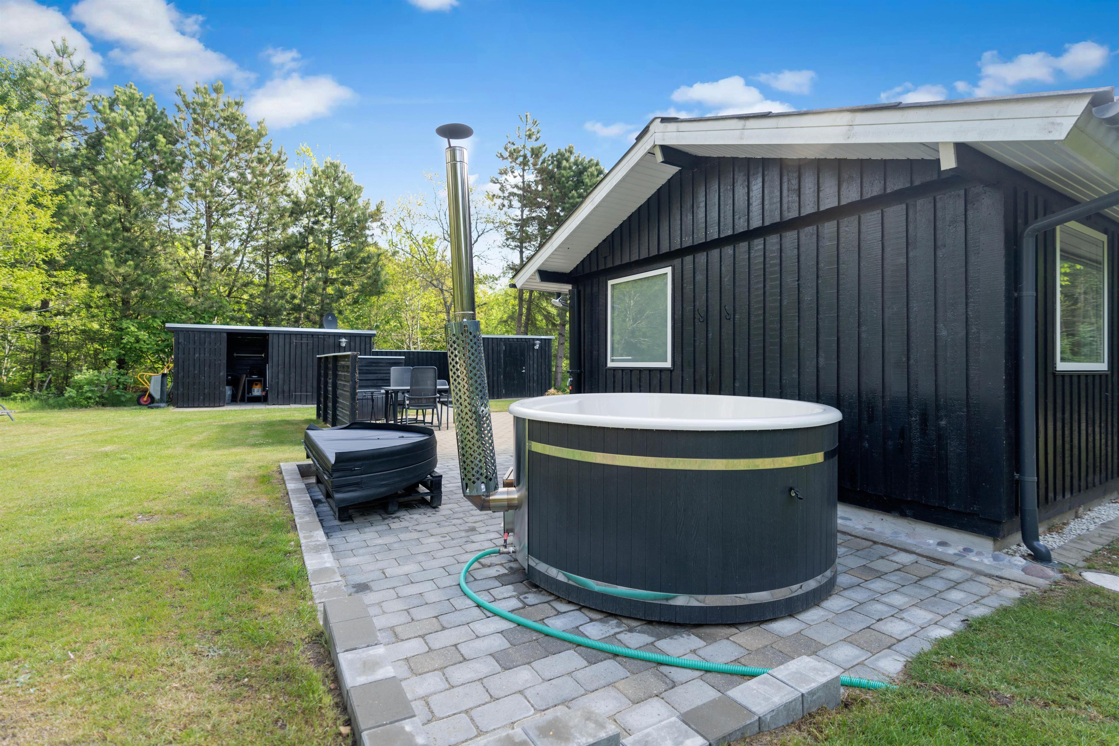 Det er også udenfor at I finder feriehusets vildmarksbad og udebruser, som bidrager til en ekstra god feriefølelse, hvor I bare kan slappe helt af.