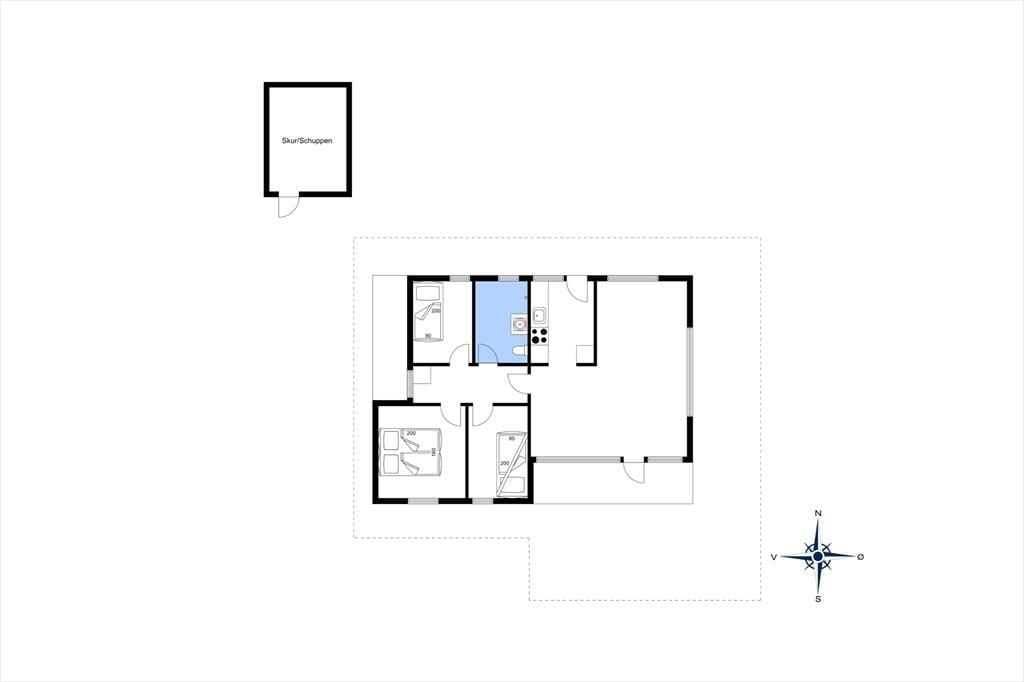 Det første, du lægger mærke til, når du træder ind, er det store vinduesparti i stuen, som lukker dagslyset ind og giver et skønt kig ud i den grønne natur. Sommerhusets indretning er enkel og indbydende – med lyse vægge, åbne rum og en rolig atmosfære, der gør det let at finde sig til rette. Stuen og køkkenet ligger i åben forbindelse, så I kan snakke og lave mad sammen, mens børnene leger eller nogen slapper af med en bog i hjørnet. De tre soveværelser er fordelt, så der både er plads til forældrene, børnene og en ekstra gæst – og med naturen lige udenfor døren er det oplagt at lade vinduerne stå på klem og falde i søvn til lyden af stilhed.