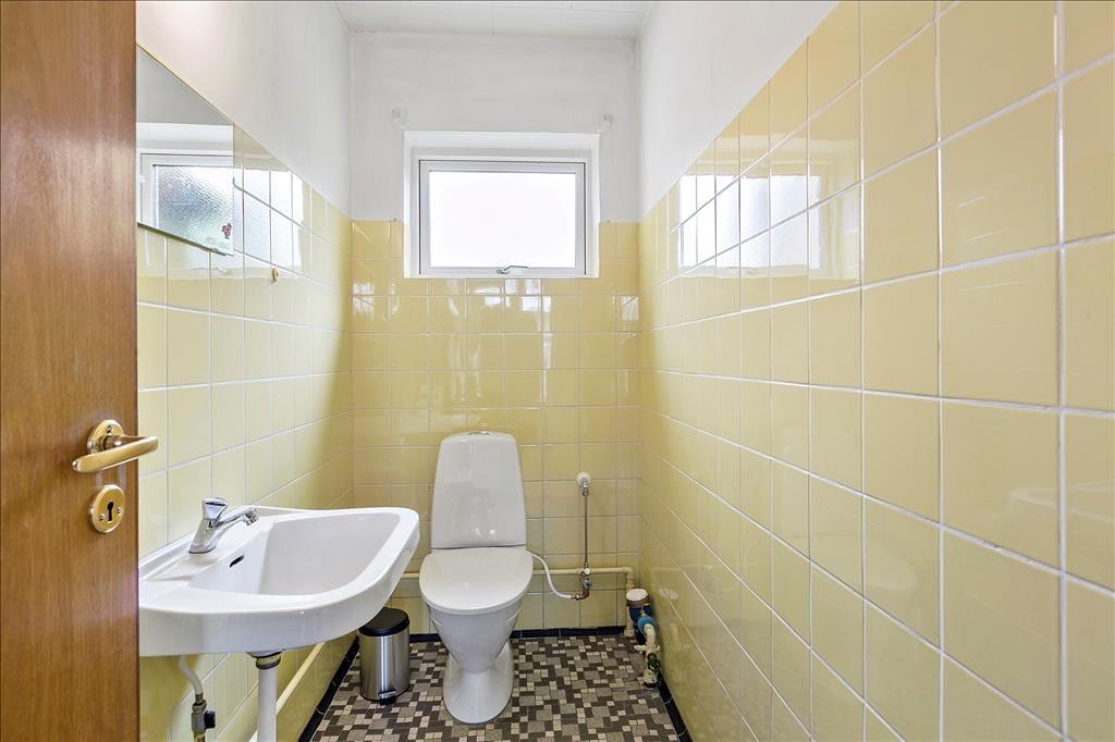 Fritidshuset indeholder: Entre, 3 soveværelser, 1 soveværelser i stueplan med dobbeltseng og 2 soveværelser på 1.sal, det ene med dobbeltseng og det andet med 2 enkeltmandssenge. Køkken med opvaskemaskine, køleskab med frys osv., bryggers med vaskemaskine, 2 badeværelser, det ene kun med WV og det andet med WC og bruser, stor stue med spiseafdeling og sofaområde.