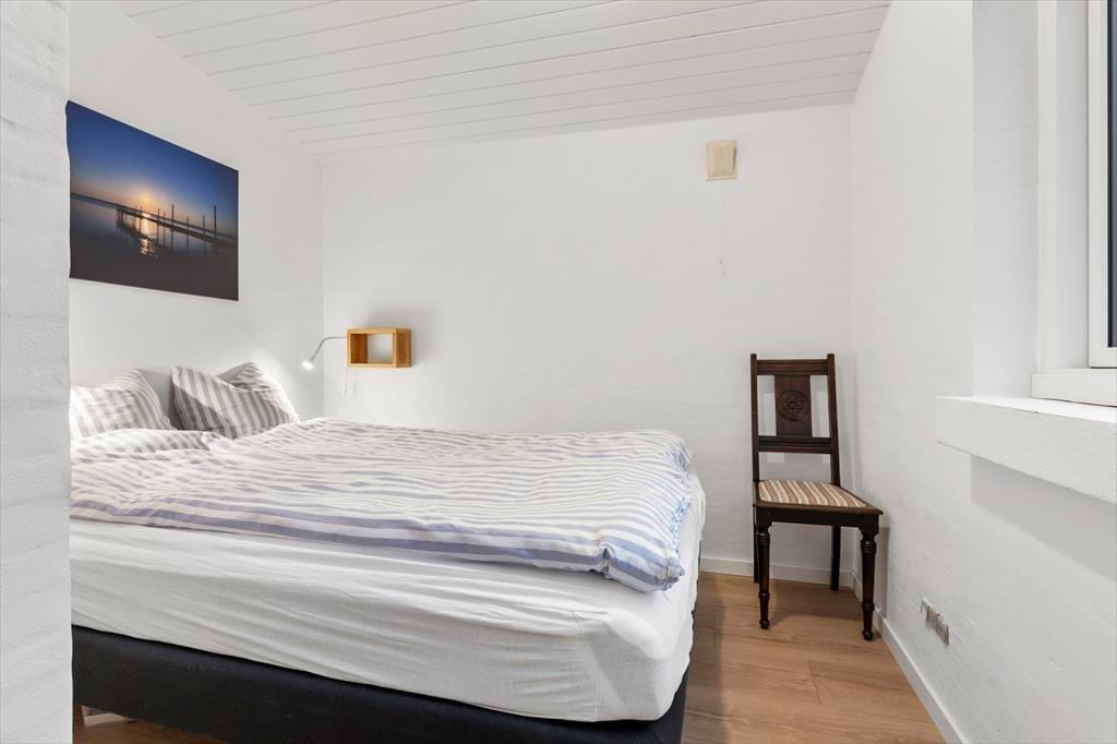 Indenfor mødes du af en lys, moderne og indbydende indretning, hvor rummene føles åbne og lette, og hvor dagslyset strømmer ind og fremhæver den afslappede feriestemning. Stuen er husets naturlige samlingspunkt, og her er det oplagt at slå sig ned med en kop kaffe, mens blikket glider ud over Limfjordens skiftende farver. Panoramaudsigten giver en særlig ro, som gør det let at koble helt af fra hverdagens tempo. Køkken og opholdsrum ligger i åben forbindelse, så samtalerne kan flyde frit, uanset om der bliver dækket op til fælles måltider eller spillet brætspil ved spisebordet. Når dagen går på hæld, kan du trække dig tilbage og nyde stilheden, der kun brydes af vindens susen og de dæmpede lyde fra naturen omkring huset.