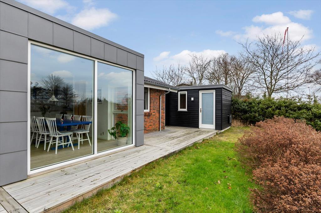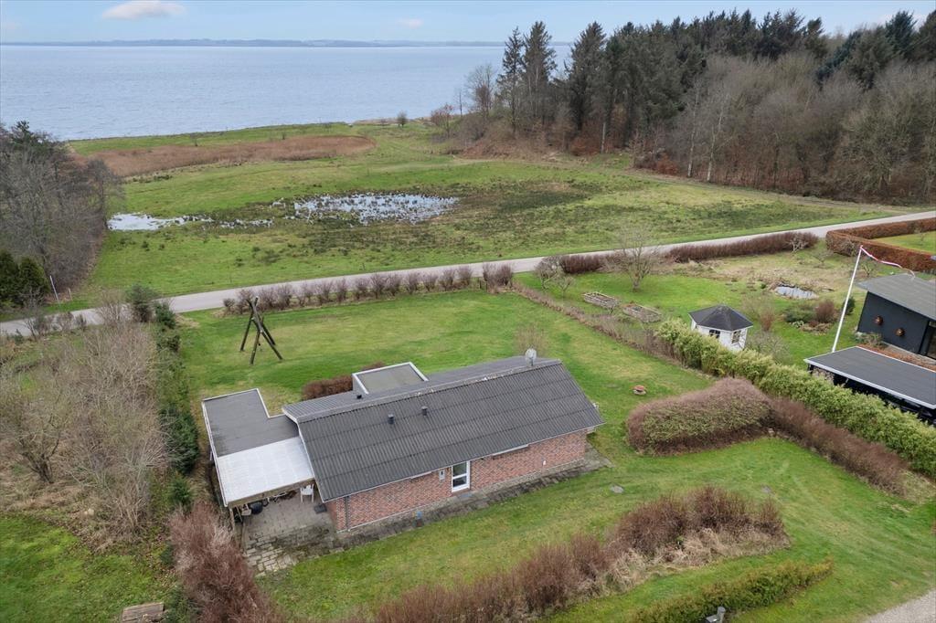 Sommerhusets terrasse og have indbyder til lange, dovne feriedage under åben himmel. Her kan du starte morgenen med morgenkaffen i solen, mens du nyder fjordudsigten og den friske luft, eller slutte dagen med et godt måltid, når solen langsomt går ned over vandet. Terrassen giver rig mulighed for både afslapning og samvær, og haven er et dejligt sted at lade børnene lege, mens de voksne læner sig tilbage og nyder feriestemningen. Uanset om du foretrækker solrige eftermiddage med en bog i hånden eller hyggelige aftener med snak og latter, danner uderummet en naturlig forlængelse af sommerhuset. Fjorden ligger så tæt på, at udsigten næsten bliver en del af terrassen, og det giver en helt særlig fornemmelse af nærhed til naturen.