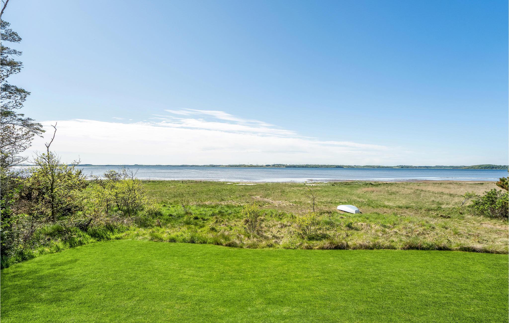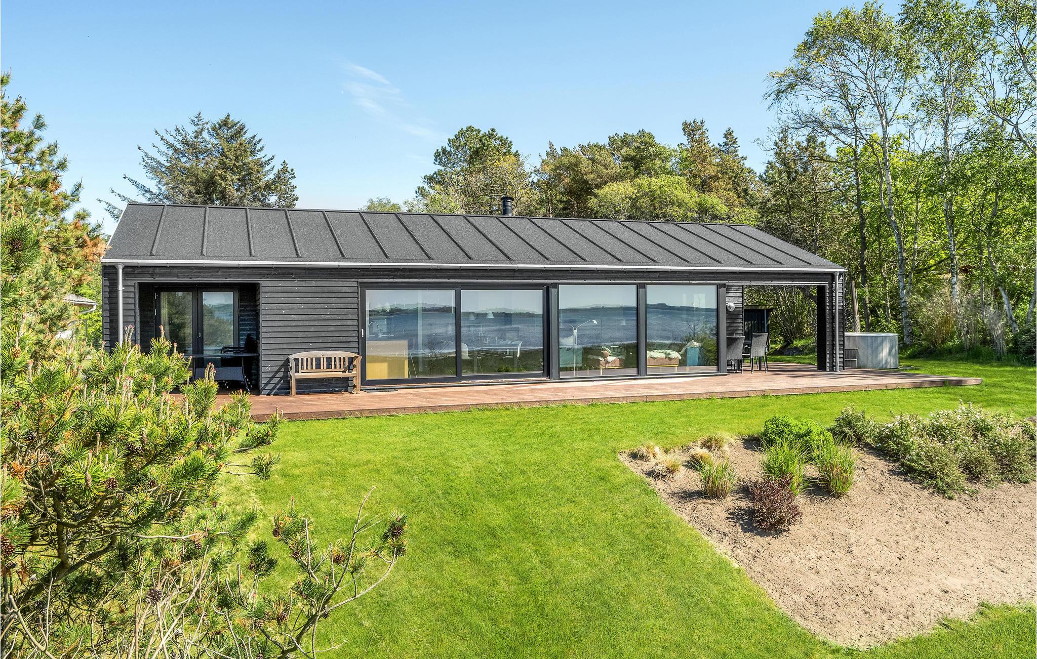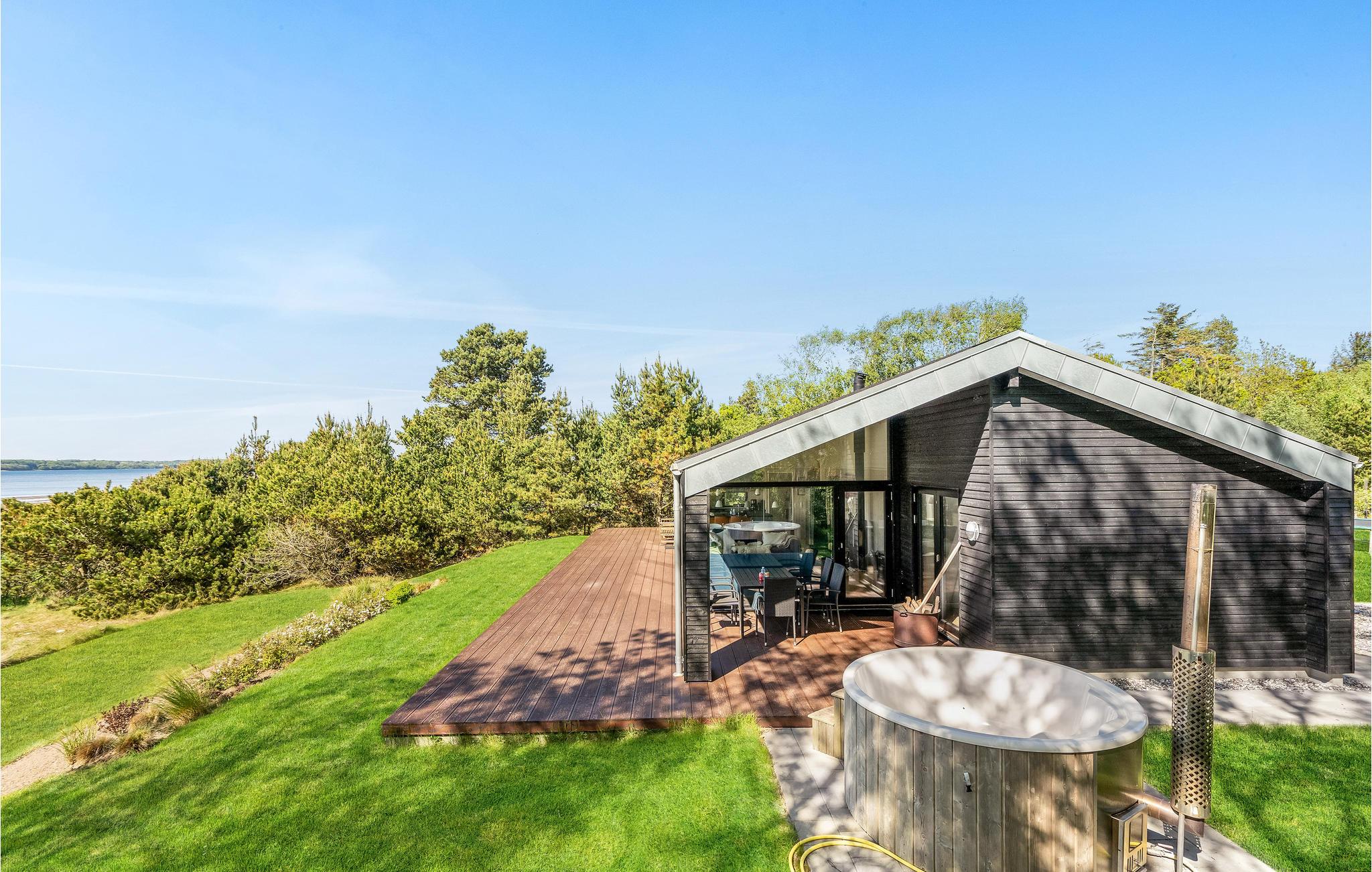 Moderne sommerhus fra 2019 med panoramaudsigt og egen grund ved vandkanten på Lundø halvø.