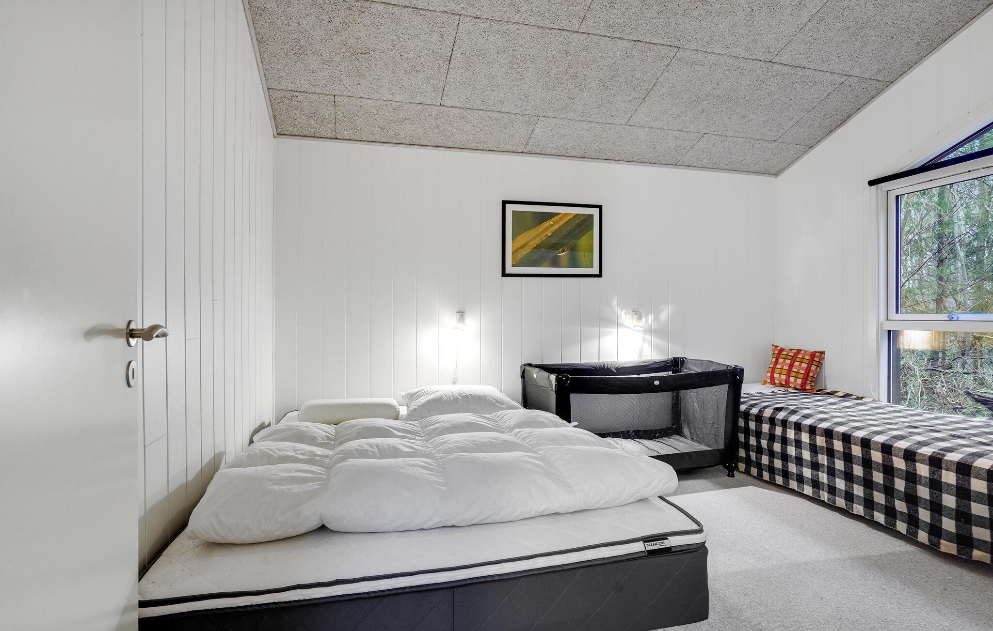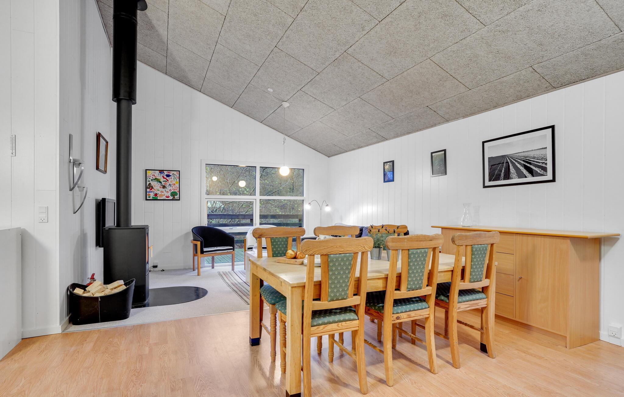 Inde i huset finder du moderne møbler holdt i en indbydende stil med stort køkken, to værelser og en hems. Badeværelset er handicapvenligt. Saml familie eller venner i den store, åbne stue, og nyd selskabet med hinanden over hyggelige måltider eller spilaftener.