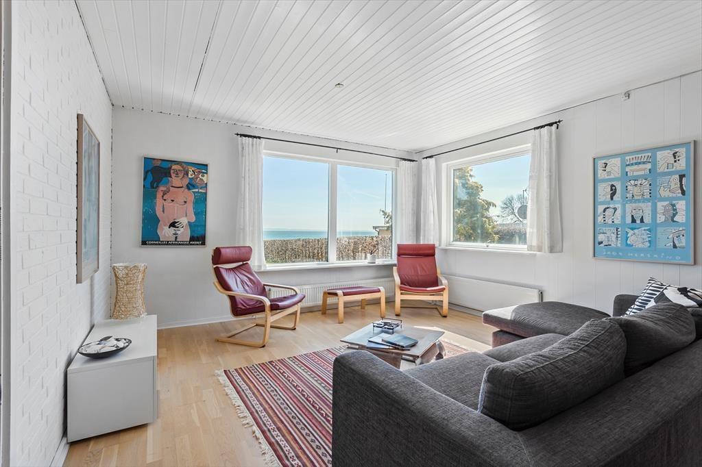 Spændende sommerhus på en naturgrund med panoramaudsigt over Storebælt og med grund direkte til egen sandstrand i Lundeborg 14 km nord for Svendborg. Huset har opholdsstue med dobbelt sovesofa og nedsænket spisestue med brændeovn, hvorfra der er udgang til en lukket gårdhave med udekøkken, 2 badeværelser, 3 soverum, separat køkken, aktivitetsrum med billardbord. Dejlig terrasse med panoramaudsigt.