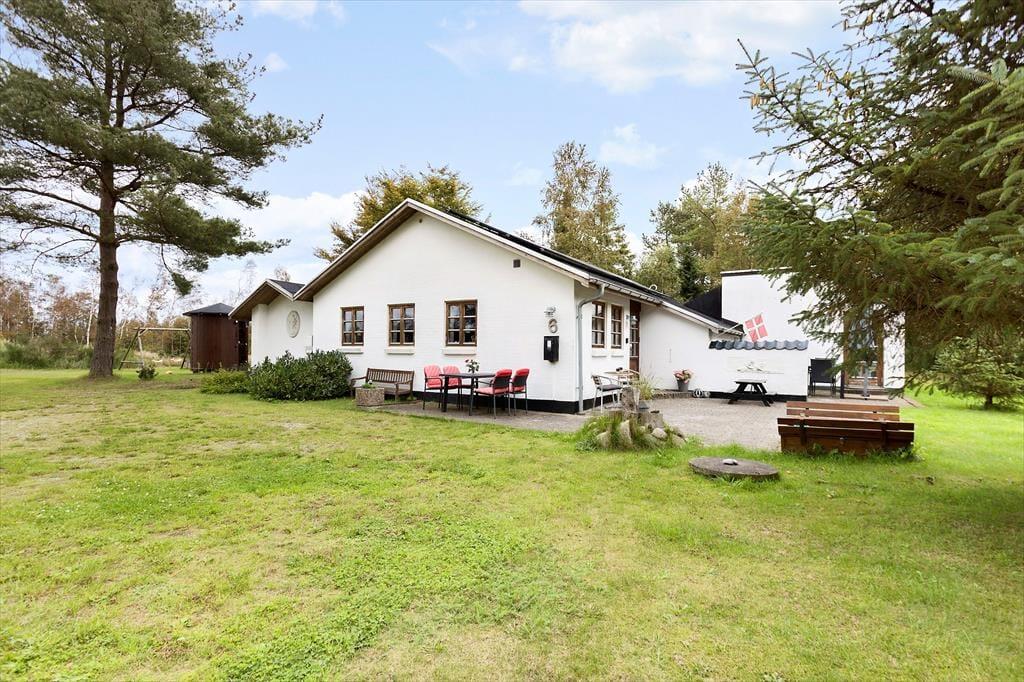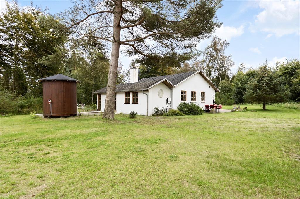Sommerhusets udeområder er intet mindre end fantastiske; en 5000m2 stor naturgrund omringet af høje træer, så I kan opholde jer udendørs uden at blive generet af forbipasserende eller tætliggende naboer. På grunden er flere terrasser bl.a. en med direkte udgang fra spabad til udendørs sauna. Husets mange vinkler giver flere små læ fyldte kroge. Om aftenen kan I hygge med snobrød ved bålstedet, som om dagen også fungerer som en god solplads med liggestole.