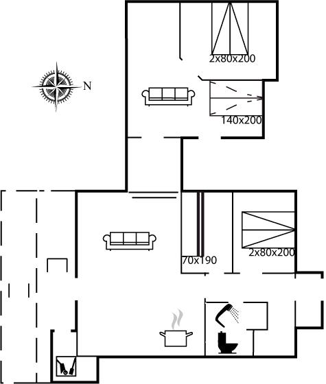 Der er i alt 3 soveværelser. Sovepladserne fordeler sig på: 4 sovepladser i dobbeltsenge. 2 sovepladser i køjeseng. 2 sovepladser i sovesofa (dobbelt). Derudover er der 1 stk. barneseng.