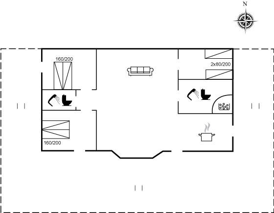 Bemærk: Udover de 3 soveværelser findes der 4 sovepladser på madrasser, som fordeler sig på 2 hemse.