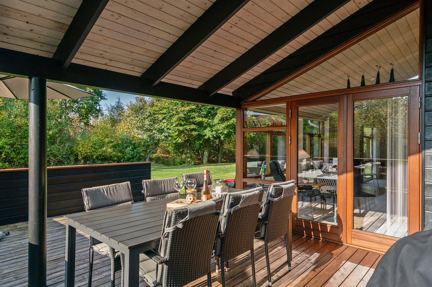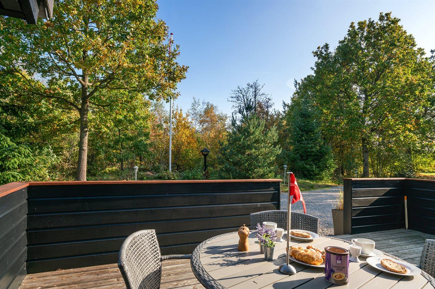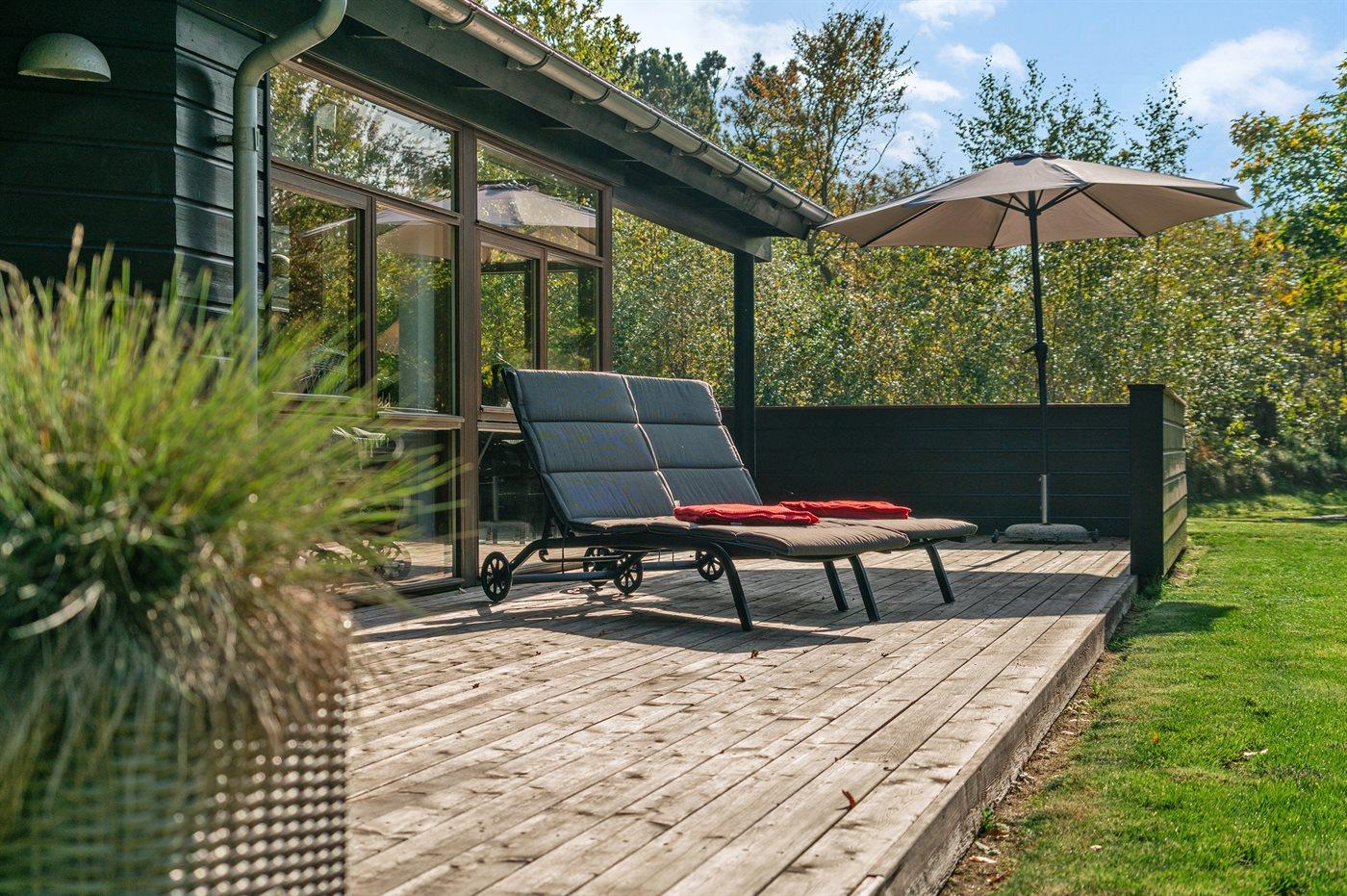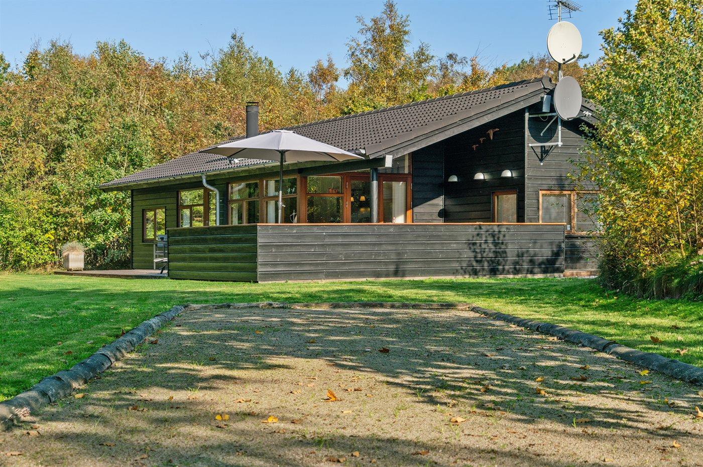 Ferieboligen er beliggende på en 5141 m² stor naturgrund. Der er 1200 m til havet. Nærmeste forretning er beliggende i en afstand af 6000 m. Der er en golfbane i en afstand af 12000 m. Til ferieboligen hører 70 m² terrasseareal. Desuden er der 12 m² overdækket terrasse. Der er redskabsrum. Gynge. Trampolin er kun til rådighed i sommermånederne. Petanque. Grill til rådighed. Der er carport til rådighed. Parkering ved ferieboligen.