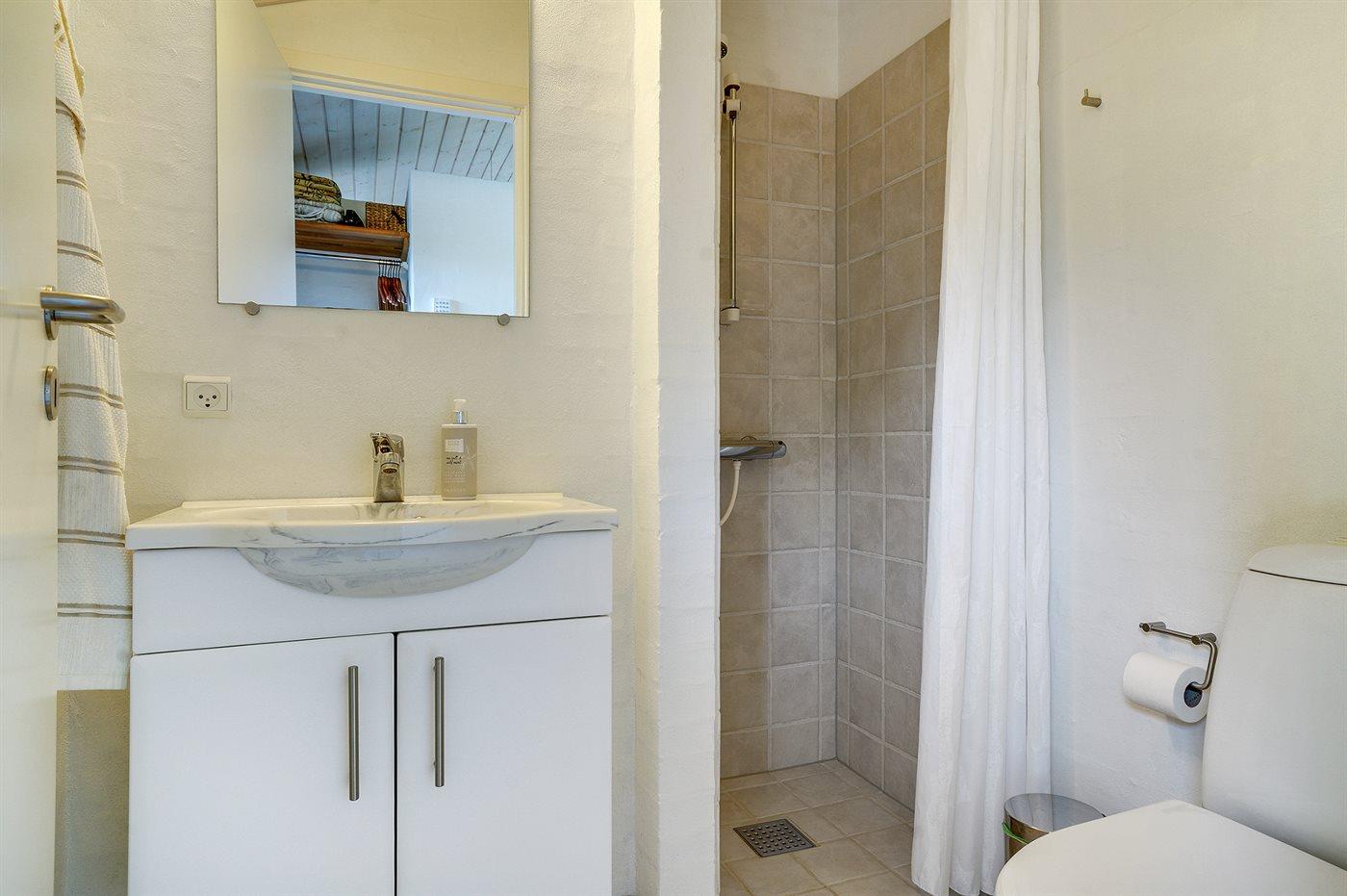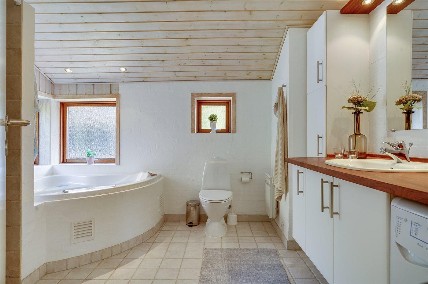 Der er 2 badeværelser med bruseniche og 2 toiletter. Der er gulvvarme på 2 badeværelser. I saunaen er der mulighed for afslapning.