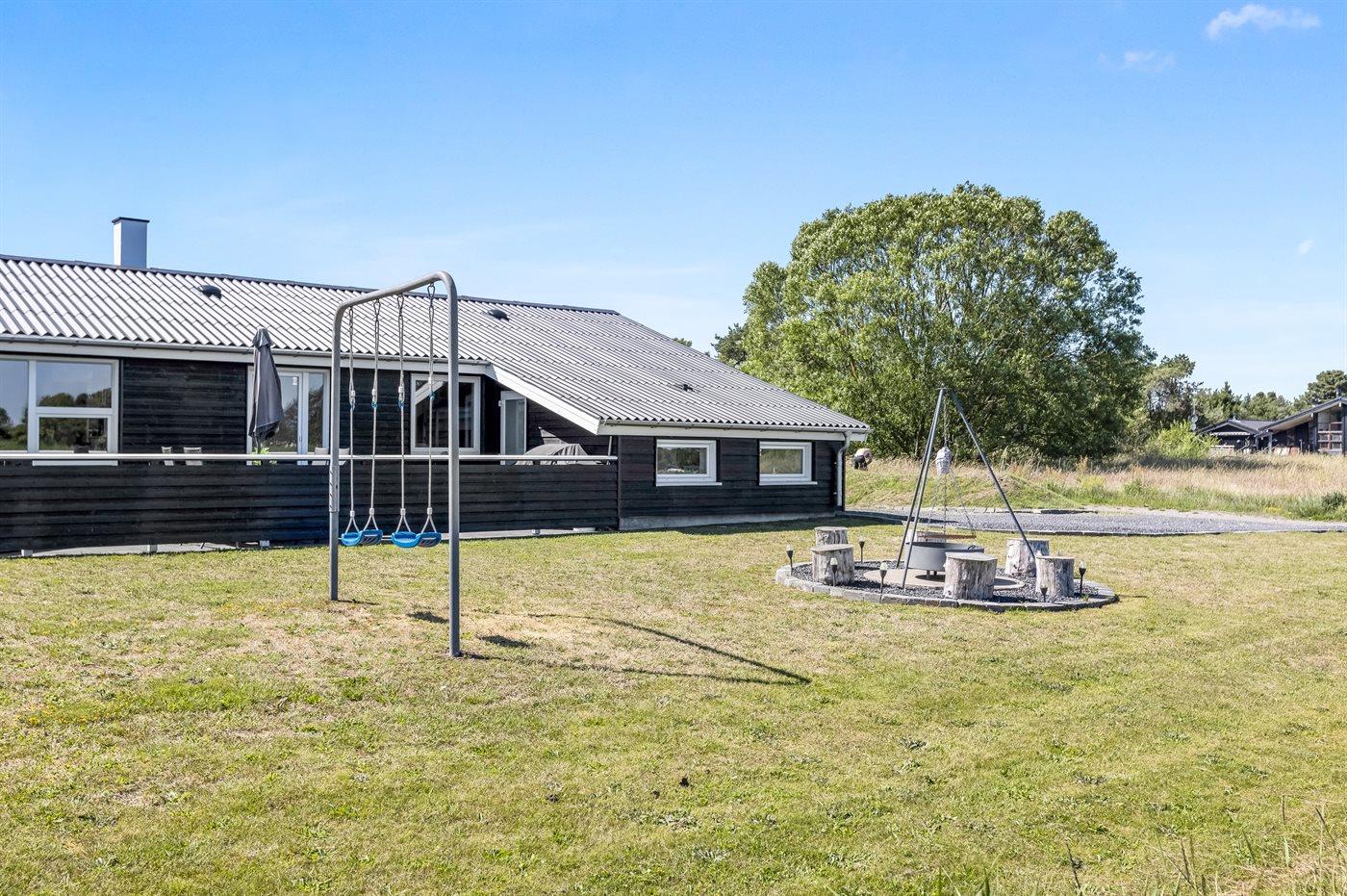 Ferieboligen er beliggende på en 1270 m² stor havegrund. Der er 400 m til havet. Nærmeste forretning er beliggende i en afstand af 3000 m. Til ferieboligen hører 48 m² terrasseareal. Desuden er der 24 m² overdækket terrasse. Gynge. Bålsted. Grill til rådighed. Der er carport til rådighed. Parkering ved ferieboligen.