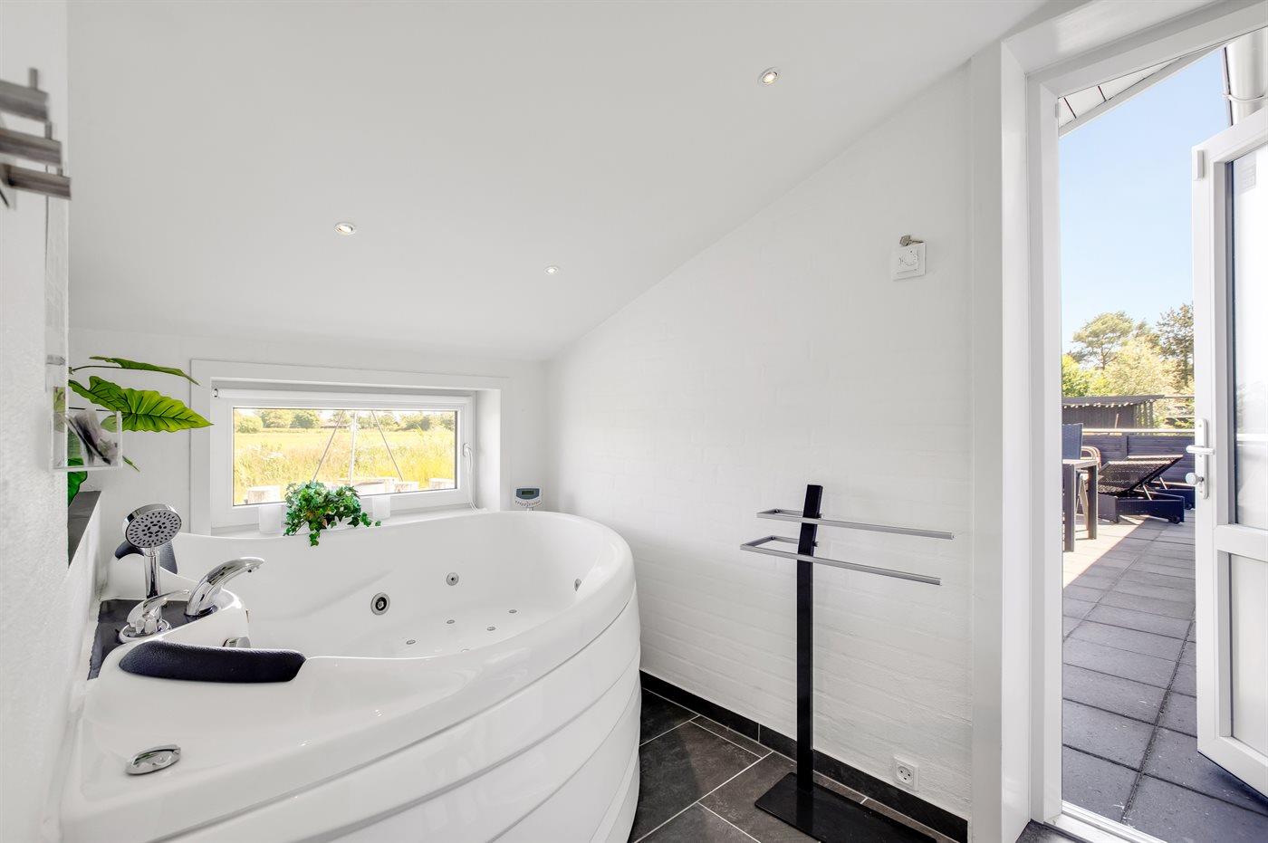 Der er 2 badeværelser med bruseniche og 2 toiletter. Der er gulvvarme på 2 badeværelser.