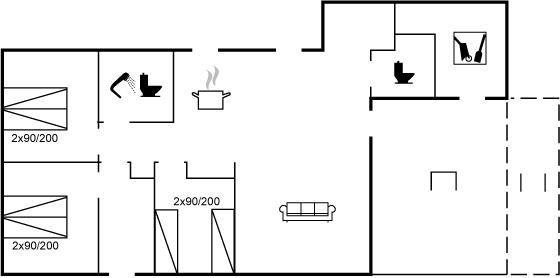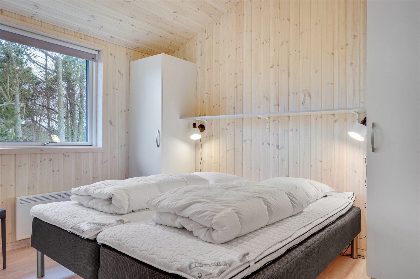 Der er i alt 3 soveværelser. Sovepladserne fordeler sig på: 4 sovepladser i dobbeltsenge. 2 sovepladser i enkeltsenge. Derudover er der 1 stk. barneseng.