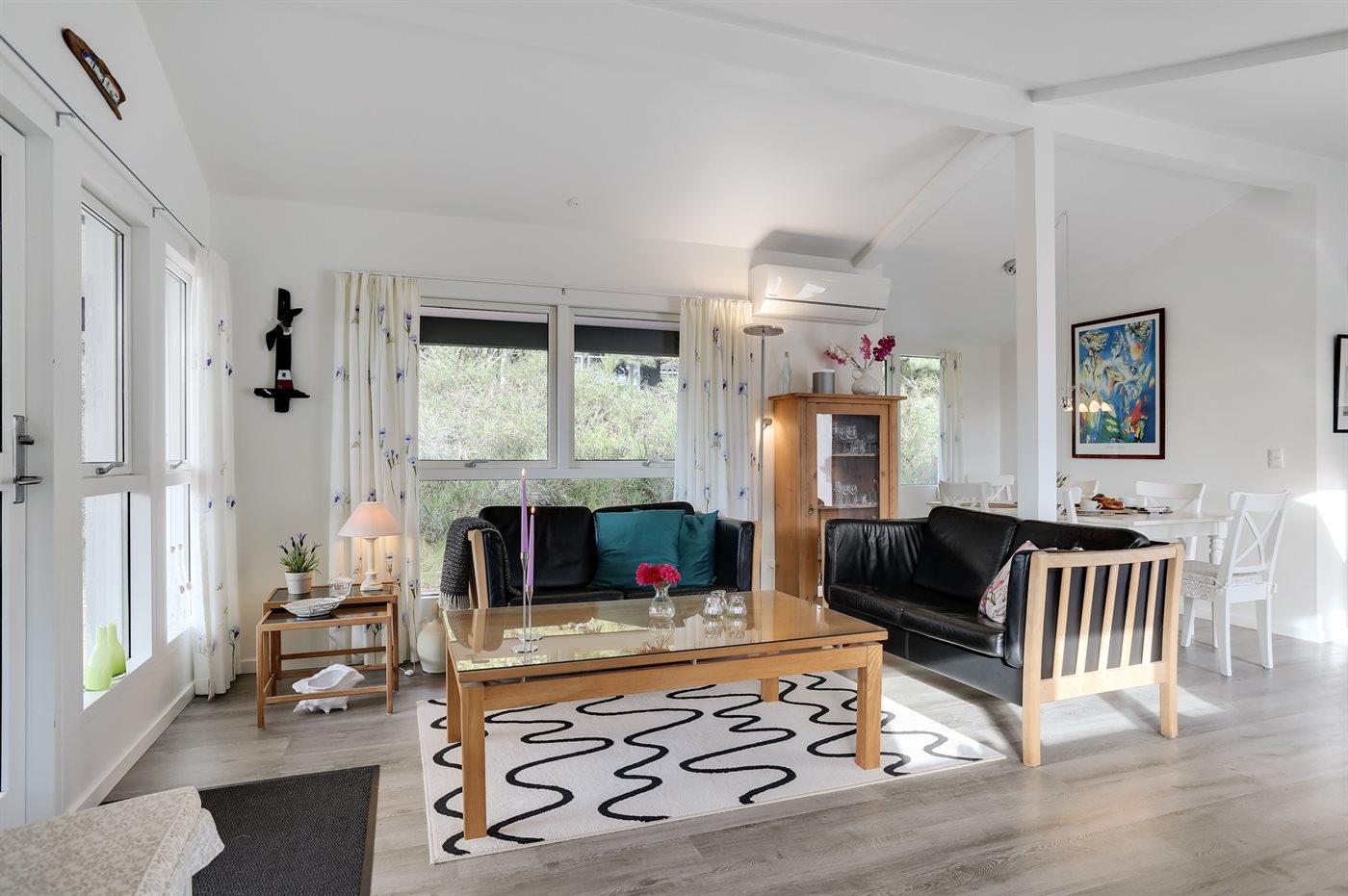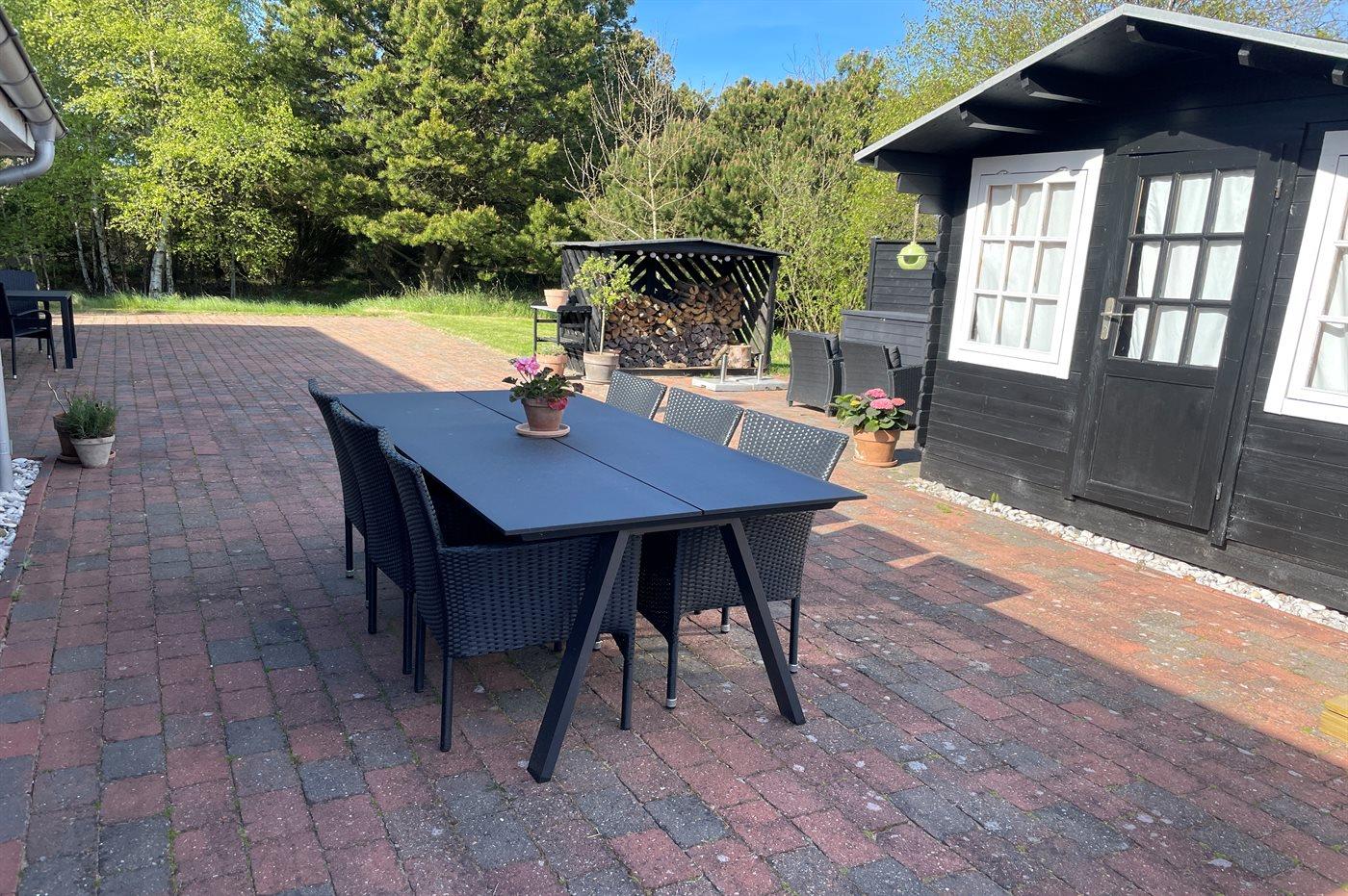 Ferieboligen er beliggende på en 1000 m² stor havegrund. Der er 100 m til havet. Nærmeste forretning er beliggende i en afstand af 8000 m. Der er en golfbane i en afstand af 9100 m. Til ferieboligen hører åbent terrasseareal. Desuden er der overdækket terrasse. Grill til rådighed. Der er installeret stik til opladning af elbil. Parkering ved ferieboligen.