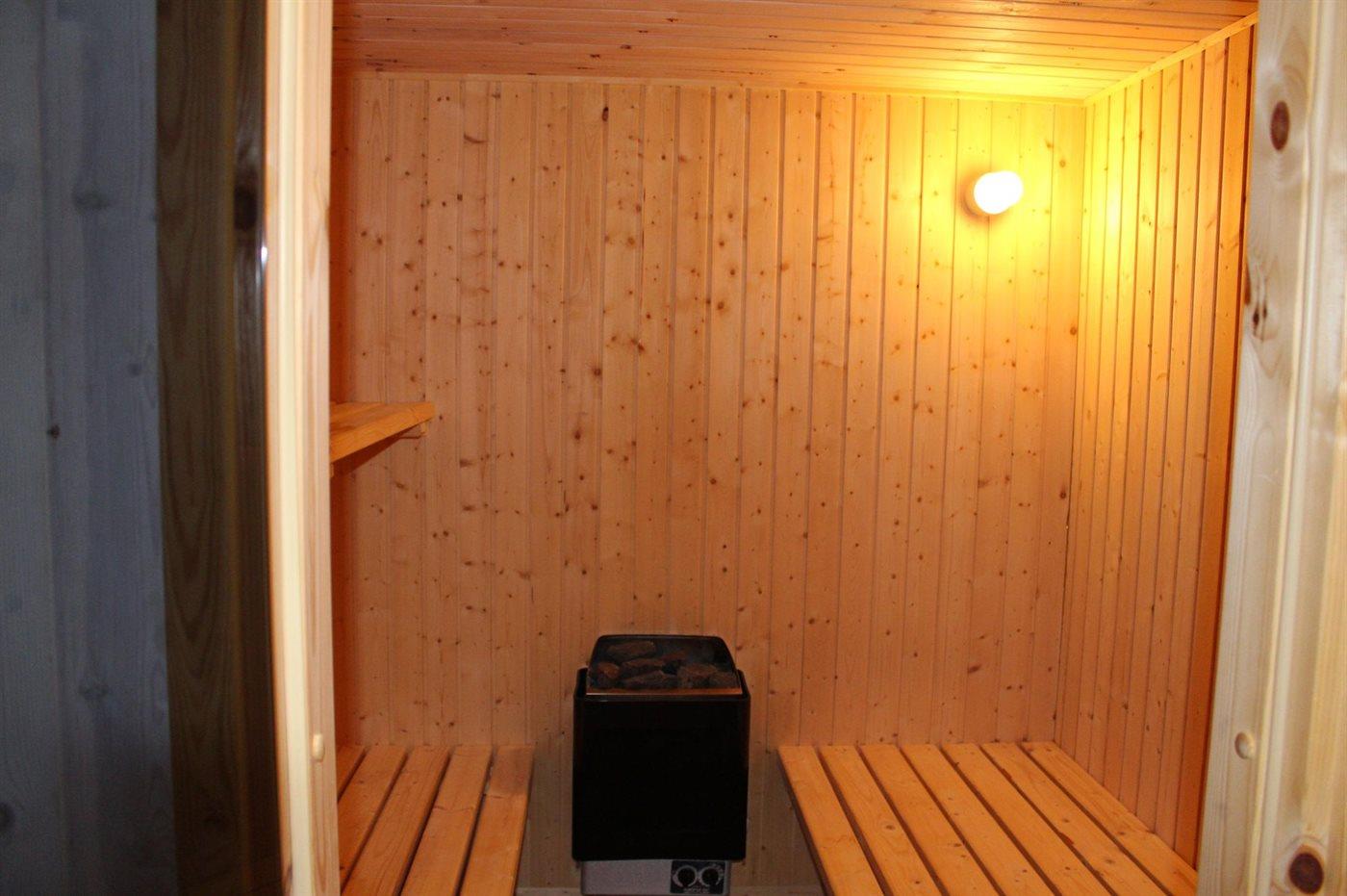 Der er 1 badeværelse med bruseniche og 2 toiletter, heraf 1 gæstetoilet. Der er gulvvarme på 1 badeværelse. Der er gulvvarme på gæstetoilettet. I saunaen er der mulighed for afslapning.