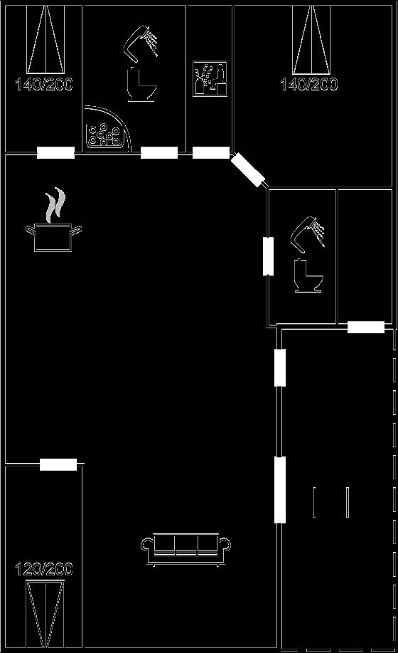 Der er i alt 3 soveværelser. Sovepladserne fordeler sig på: 6 sovepladser i dobbeltsenge. 2 sovepladser i enkeltsenge. 2 af disse sovepladser befinder sig på husets hems. Derudover er der 1 stk. barneseng.