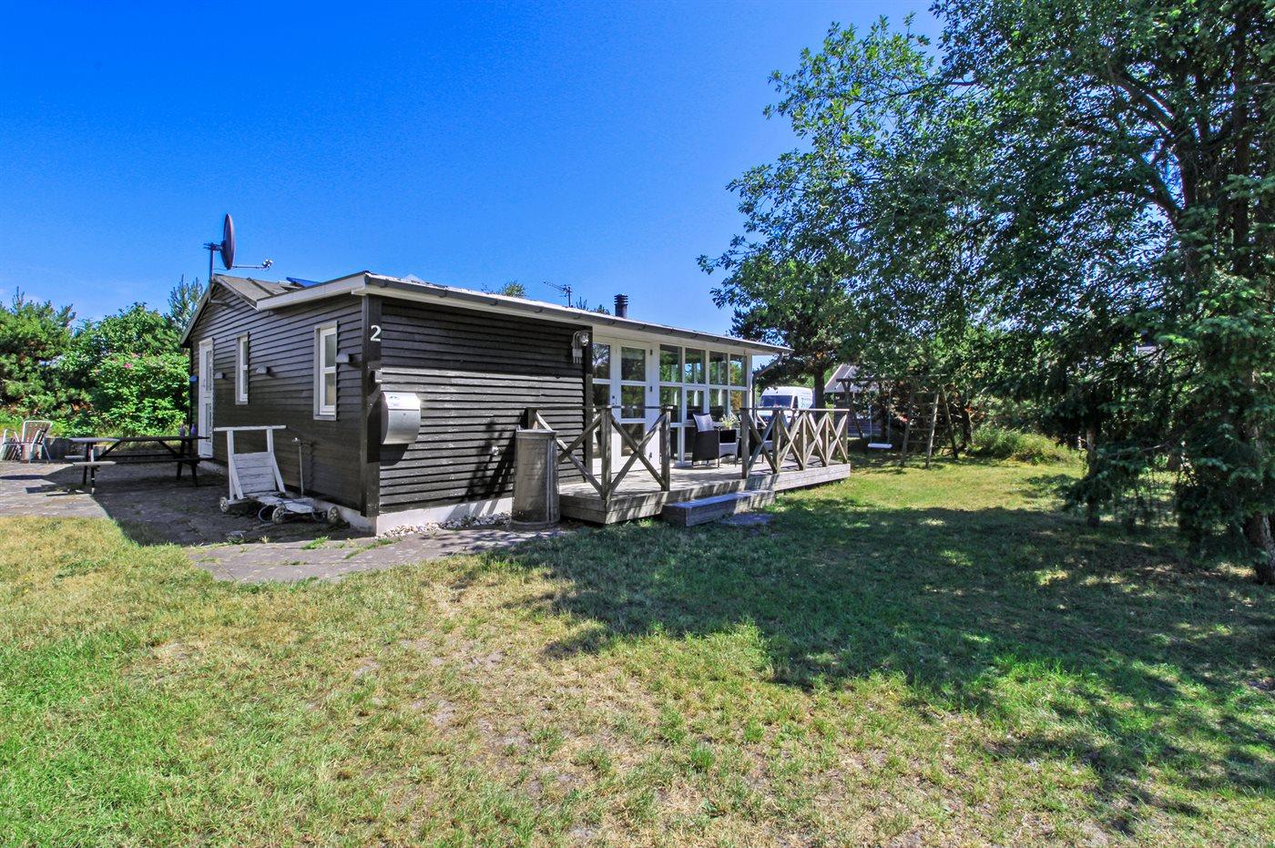 Ferieboligen er beliggende på en 500 m² stor naturgrund. Der er 100 m til havet. Nærmeste forretning er beliggende i en afstand af 8000 m. Til ferieboligen hører 70 m² terrasseareal. Grill til rådighed. Der er installeret stik til opladning af elbil. Parkering ved ferieboligen.