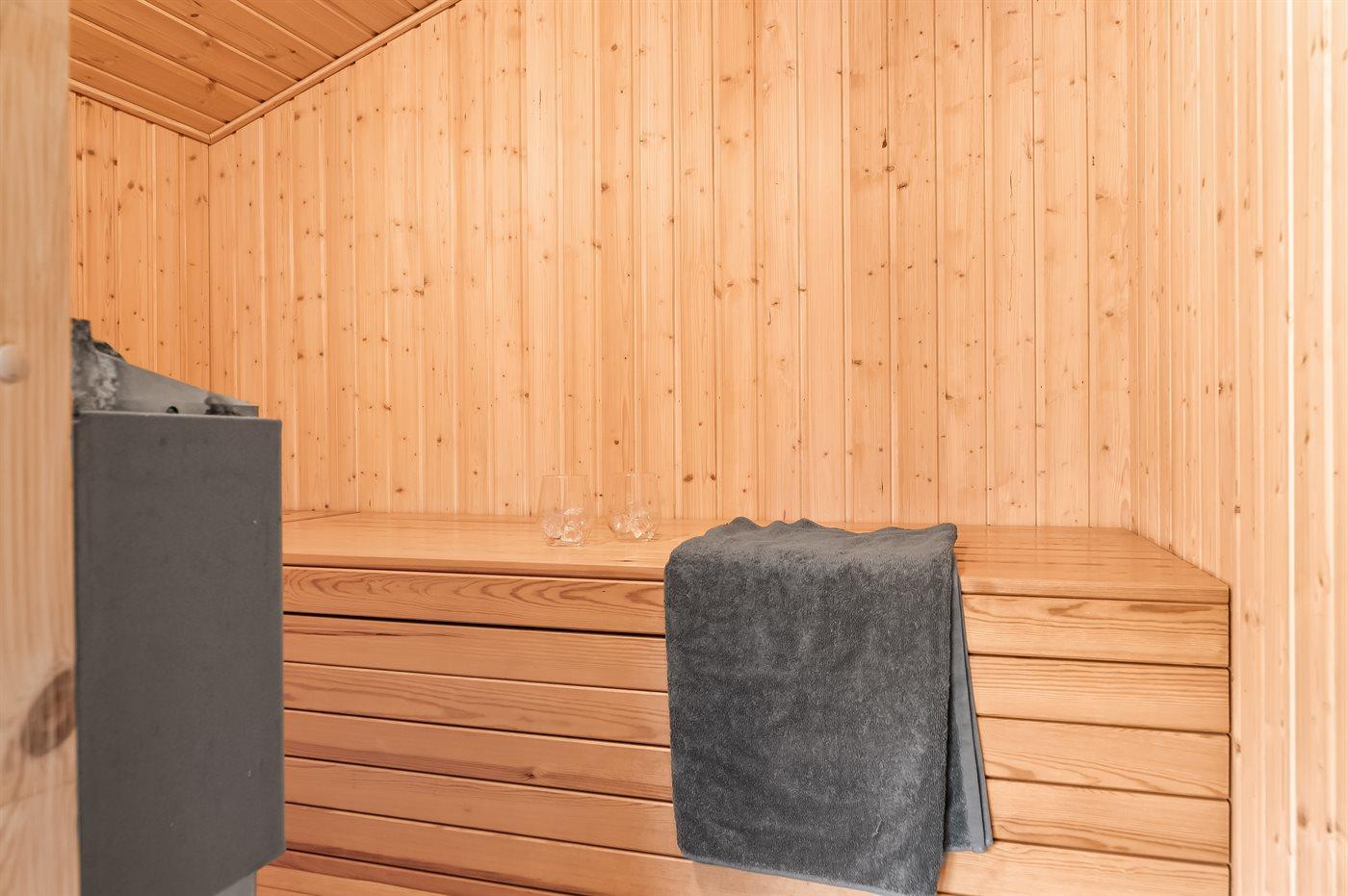 Der er 1 badeværelse med bruseniche og 2 toiletter, heraf 1 gæstetoilet. Der er gulvvarme på 1 badeværelse. Der er gulvvarme på gæstetoilettet. I saunaen er der mulighed for afslapning.