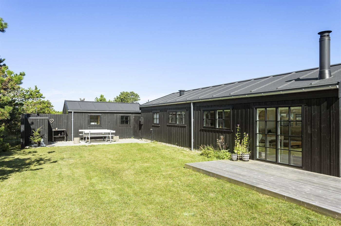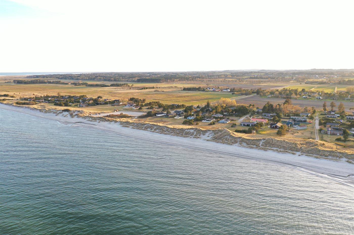 Ferieboligen er beliggende på en 850 m² stor Grunden er indhegnet. Der er 150 m til havet. Nærmeste forretning er beliggende i en afstand af 8000 m. Til ferieboligen hører 125 m² terrasseareal. Heraf i alt 12 m² lukket terrasse. Fat boy hængekøje. Gynge. Udendørs bruser. Grill til rådighed. Der er installeret stik til opladning af elbil. (Tesla Generation 3). Parkering ved ferieboligen.