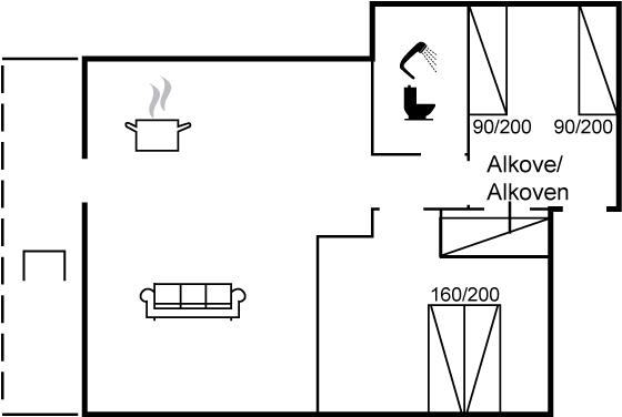 Der er i alt 2 soveværelser. Sovepladserne fordeler sig på: 2 sovepladser i dobbeltseng. 3 sovepladser i enkeltsenge. Derudover er der 1 stk. barneseng.