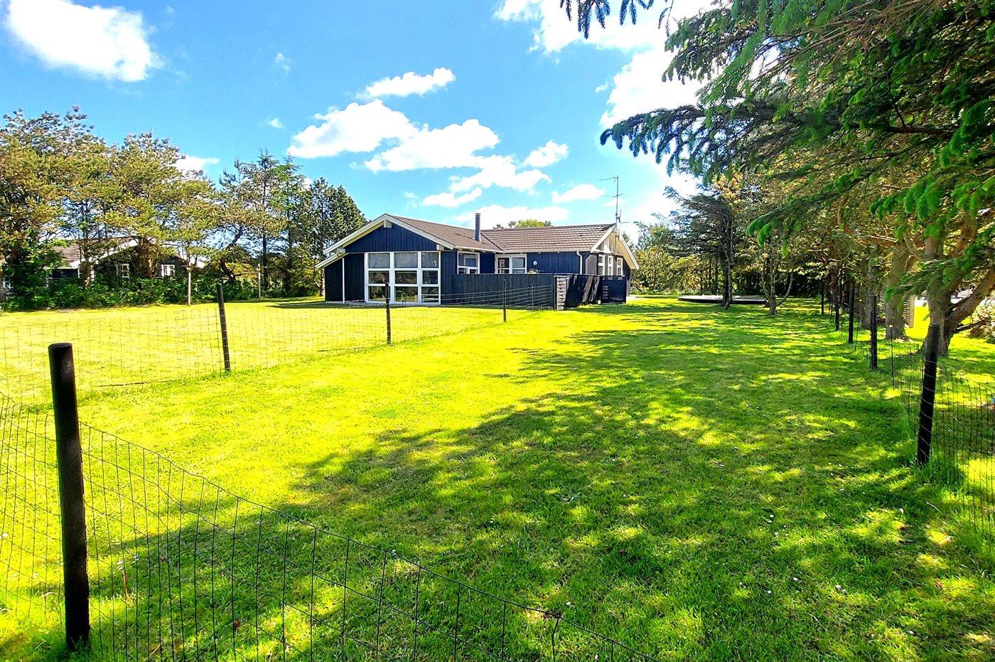 Ferieboligen er beliggende på en 1503 m² stor naturgrund. Grunden er indhegnet. Der er 100 m til havet. Nærmeste forretning er beliggende i en afstand af 7000 m. Til ferieboligen hører 50 m² terrasseareal. Der er redskabsrum. Trampolin. Grill til rådighed. Parkering ved ferieboligen.