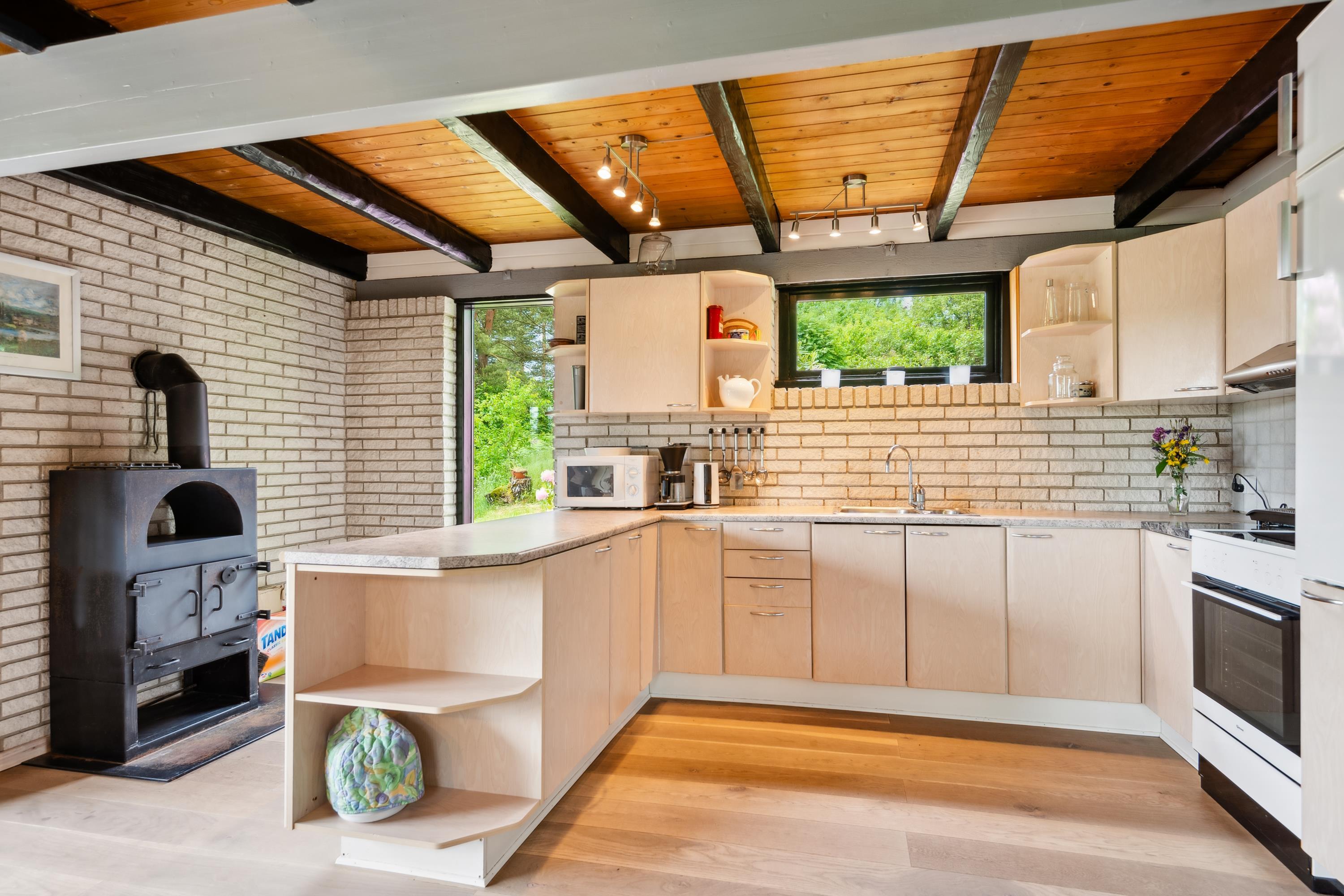 Ikke langt fra Lyngsbæk strand finder man dette ældre, men hyggelige feriehus i to plan, beliggende i naturskønne omgivelser med udsigt til grønne områder.I stueplan finder man en hyggelig spisestue med brændeovn og varmepumpe og med udgang til stor terrasse med havemøbler. I forbindelse med stuen finder man et godt køkken med b.la. vaskemaskine. Derudover finder man husets badeværelse med bruseniche samt et værelse med en dobbelt sovesofa. Fra stueplan er der en god trappe til 1 salen, hvor man finder en lys og hyggelig indretttet stue med udgang til en lille altan, hvorfra man kan nyde udsigten over det flotte landskab. Her finder man også et stort soveværelse med dobbeltseng samt en enkeltseng. Huset er beliggende i området Nationalpark Mols Bjerge og ca.et kvarters kørsel fra Ebeltoft.