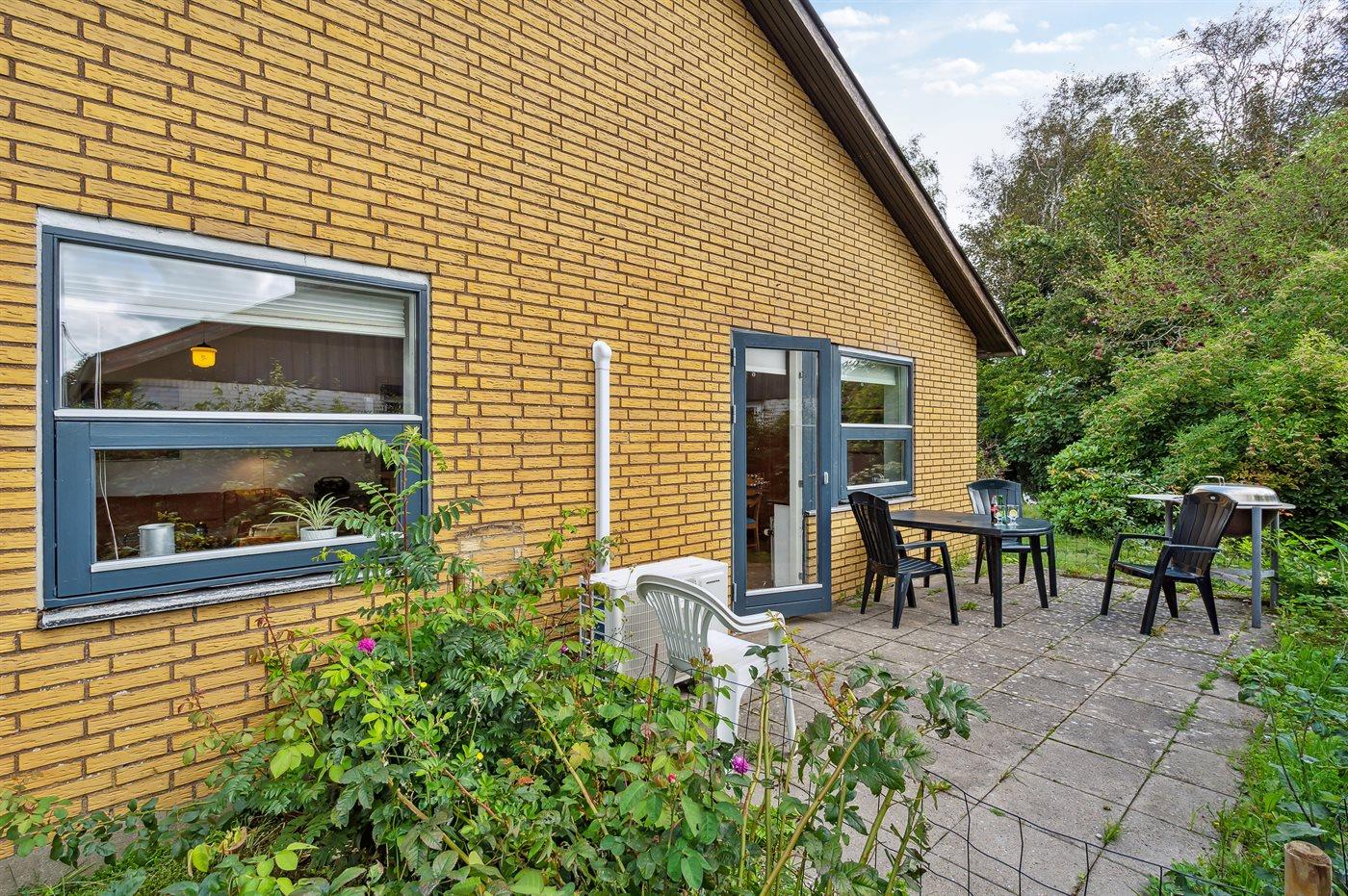 Ferieboligen er beliggende på en 600 m² stor naturgrund. Grunden er indhegnet. Der er 9800 m til havet. Nærmeste forretning er beliggende i en afstand af 100 m. Til ferieboligen hører åbent terrasseareal. Der er installeret stik til opladning af elbil. Type 2 stik. Parkering ved ferieboligen.