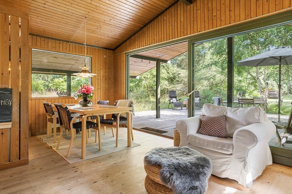 I kan roligt glæde jer til en dejlig ferie i dette sommerhus, som oser af hygge. Samtidig er beliggenheden fantastisk i skoven og med en dejlig badestrand kun 100 meter fra huset.