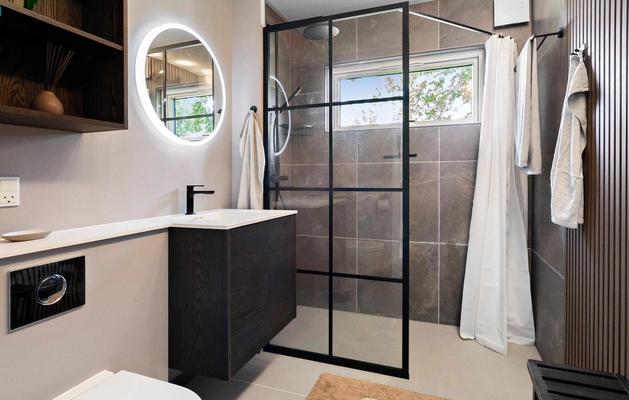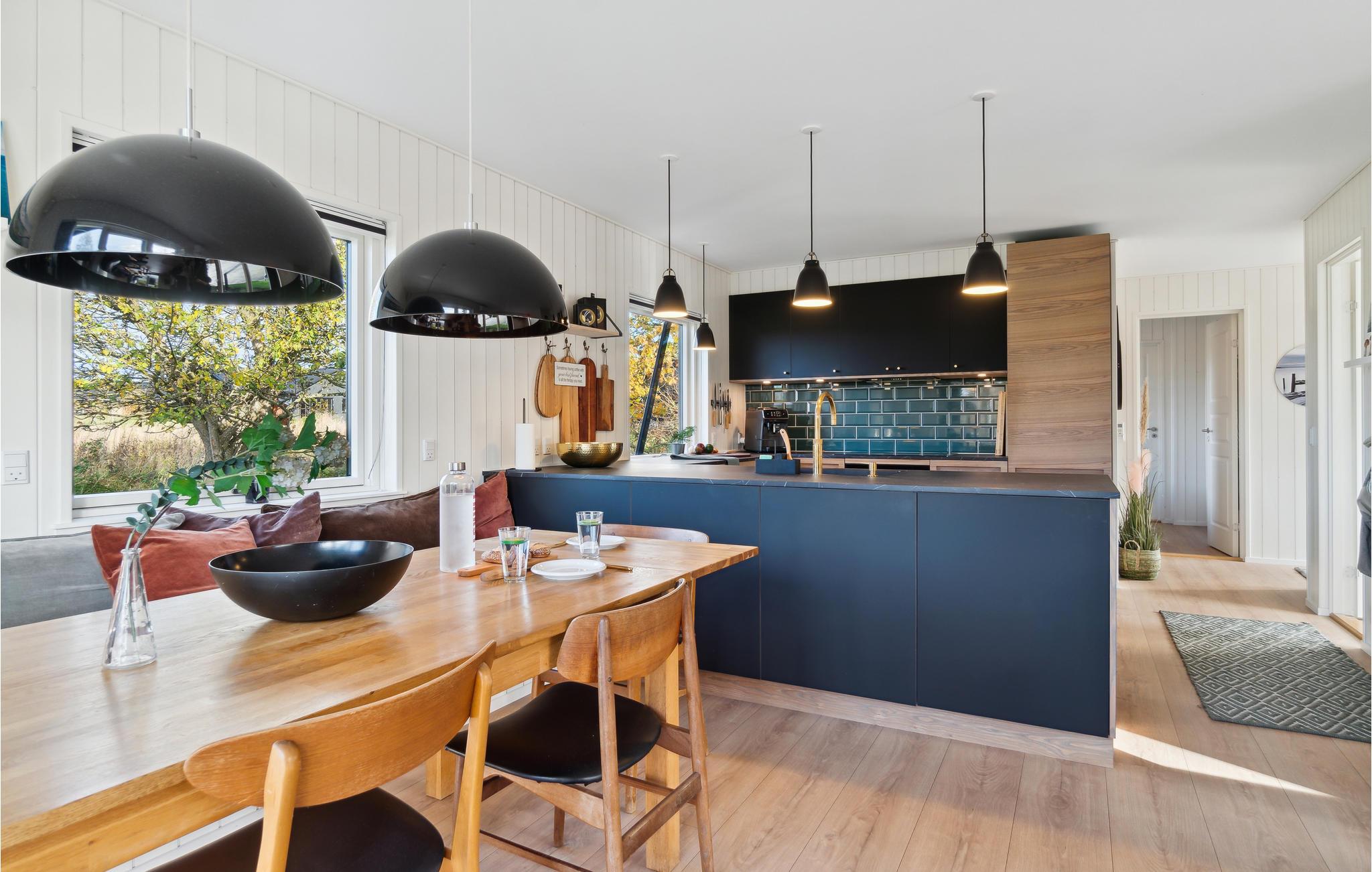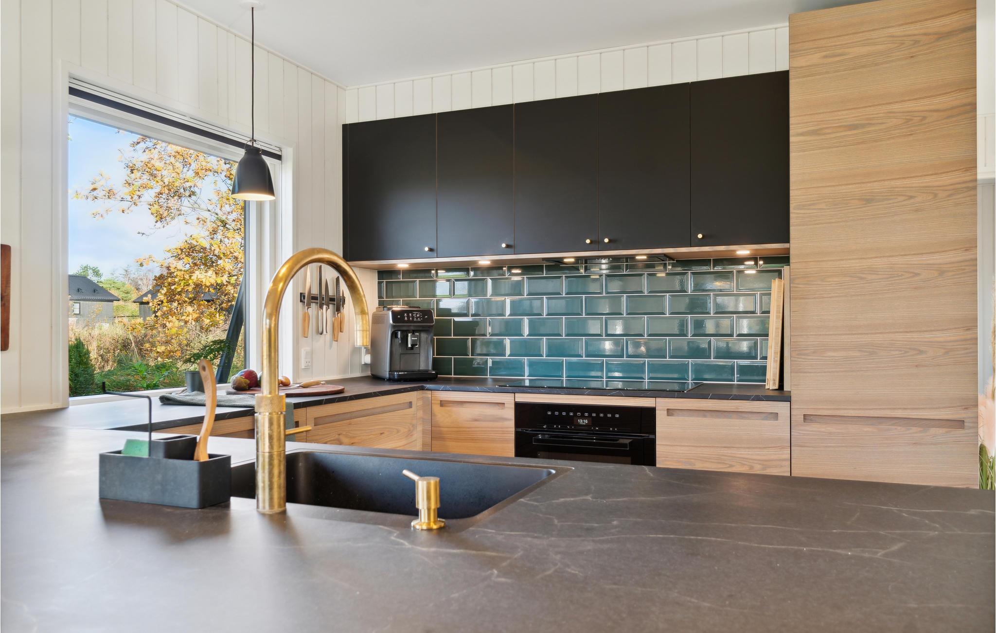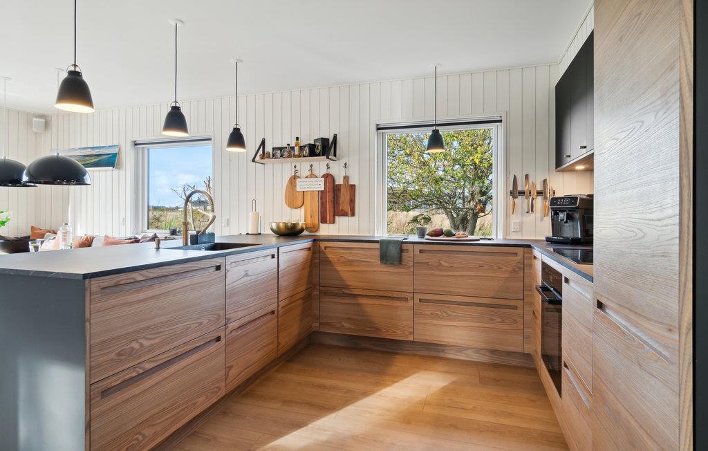 Hele familien kan godt begynde at glæde sig til dette familievenlige hus, som emmer af lys, komfort og kvalitetsløsninger. Giv jer god tid til madlavningen i det moderne køkken og dæk op til dagens måltider på terrassen, når solen er fremme. Træterrassen omkranser husets to sider, så I har mulighed for at følge solen hele dagen. Børnene kan boltre sig i den store have, og imens kan I lægge en plan for det næste, I vil ud at se.