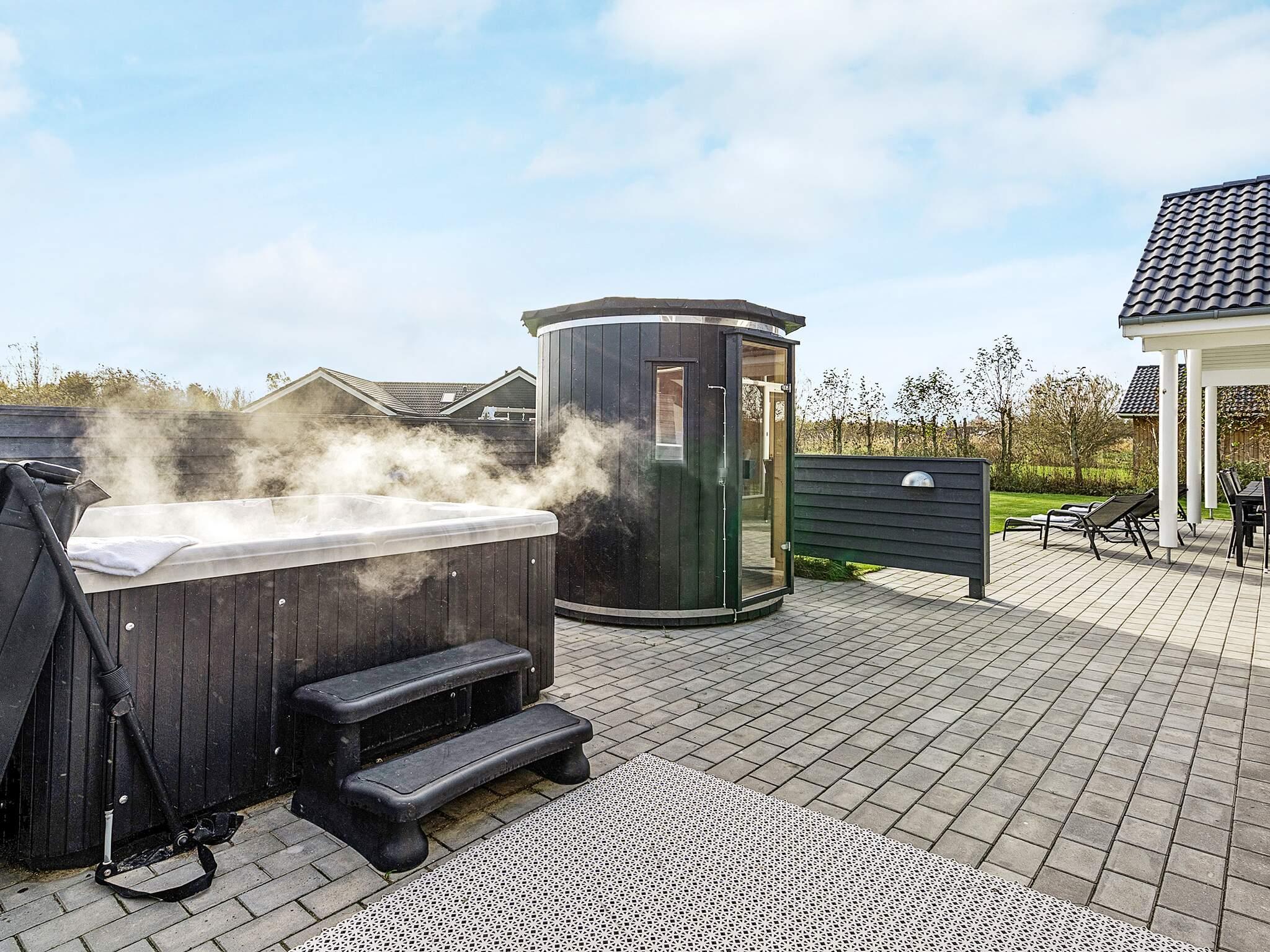Dette sommerhus i Marielyst tilbyder 15 m² swimmingpool med svømmetræner, så hele ugen kan I forbedre konditionen med daglige svømmetag kombineret med ren afslapning i spabadet og saunaen, som befinder sig udendørs på terrassen.