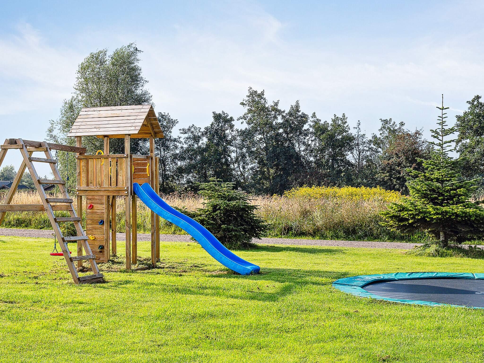Grunden er på 3000 m², så der er rigelig plads til at udfolde sig med boldspil eller lignende. Desuden er der 200 m² terrasse til grill og solbadning samt afslapning og 24 m² overdækket terrasse, perfekt til en hyggelig grillaften med familie og venner. Til børnene er der legetårn og trampolin (benyttes på eget ansvar/forsikring).