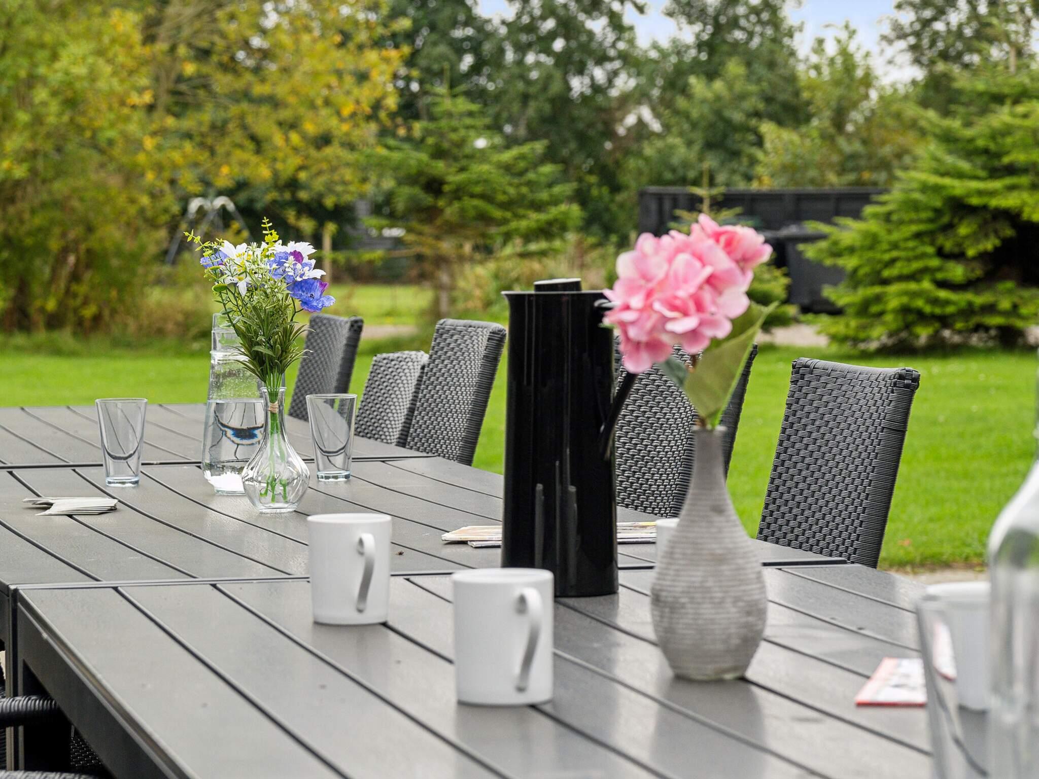 De små feriegæster er der også tænkt på – huset har 2 barnesenge, 2 højstole, og udenfor finder I gyner, sandkasse og legestativ.