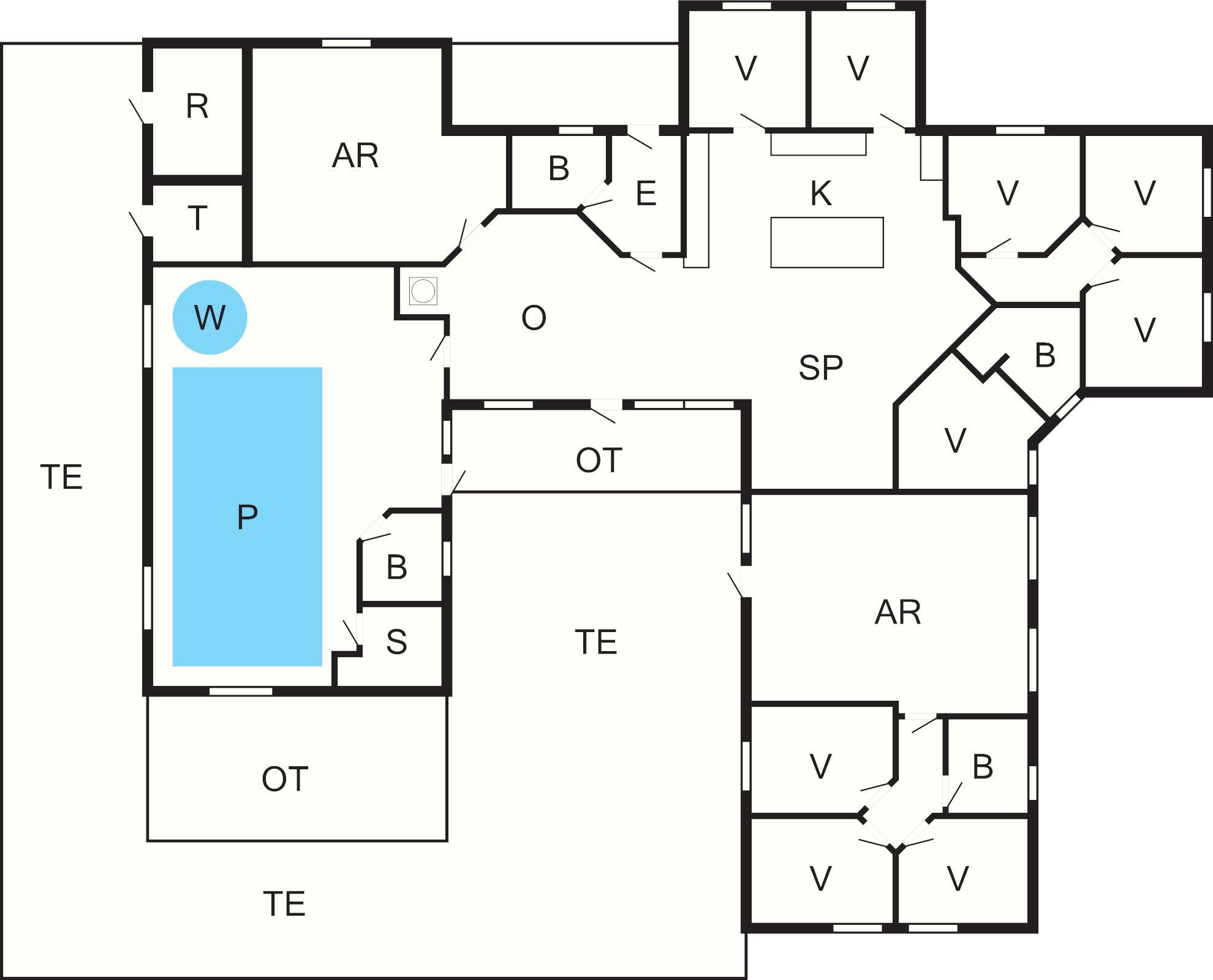 Sommerhuset har fire badeværelser, alle med gulvvarme. Ét af dem er udstyret med et 4–6 personers spabad og adgang til sauna – ideelt til afslapning efter en dag på stranden eller ved poolen.
